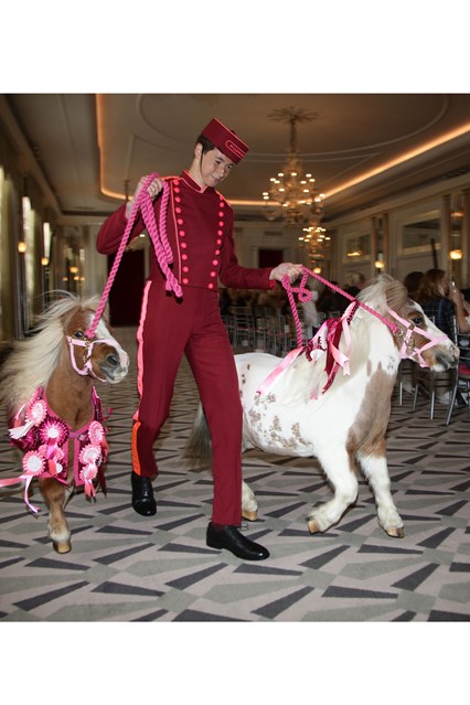 Un défilé qui a repeint de rose tous les comptes Instagram. Pour son show de lancement, la marque- crée par l’ancienne directrice artistique de Mulberry- a rassemblé rédactrices et célébrités autour de biscuits, milkshakes, brioches et smoothies roses. Le clou du spectacle : les deux mini-shetlands tenus en laisse par un jeune homme un uniforme : même Anna Wintour aurait souri.