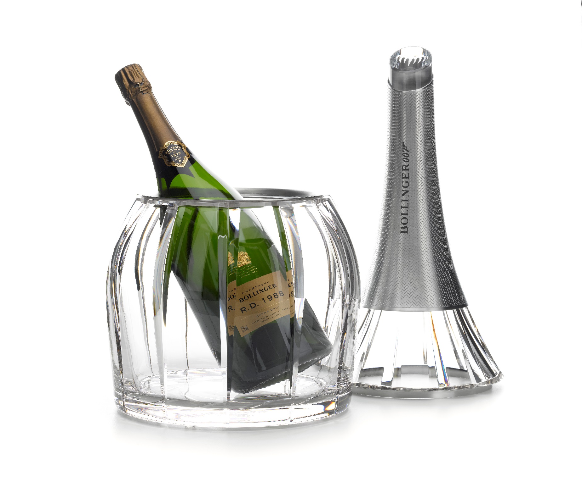 L’édition limitée contient une cuvée Bollinger unique, un millésime 2009, exclusivement consacré à la célébration de ce partenariat. Le flacon est lové dans un coffret réfrigéré en édition limitée, dessiné par Carré Basset, qui conserve la bouteille fraîche pendant 2 heures après réfrigération préalable. Ce coffret au design innovant a été conçu entièrement en métal par la société Virojanglor. Le lancement de l’édition limitée marque la continuité d’un partenariat durable entre EON Productions, producteur de la franchise Bond, et la Maison Bollinger. Bollinger est apparu dans 14 films de James Bond. Il est le champagne exclusif depuis Moonraker en 1979.