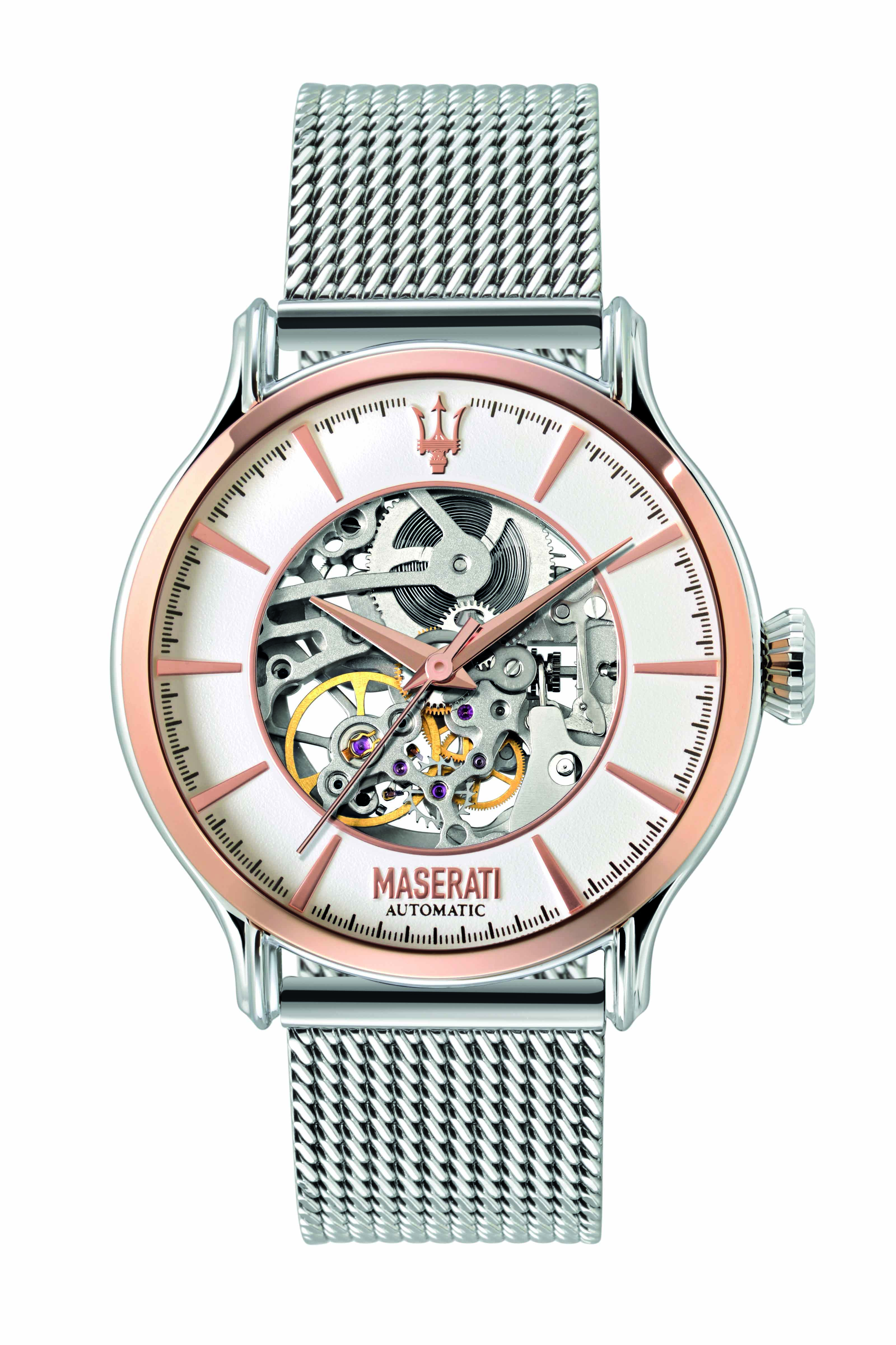 La mécanique s’allie à l’élégance dans la nouvelle montre squelette automatique de la collection Epoca de Maserati, la marque italienne icône du secteur des voitures sportives de luxe.