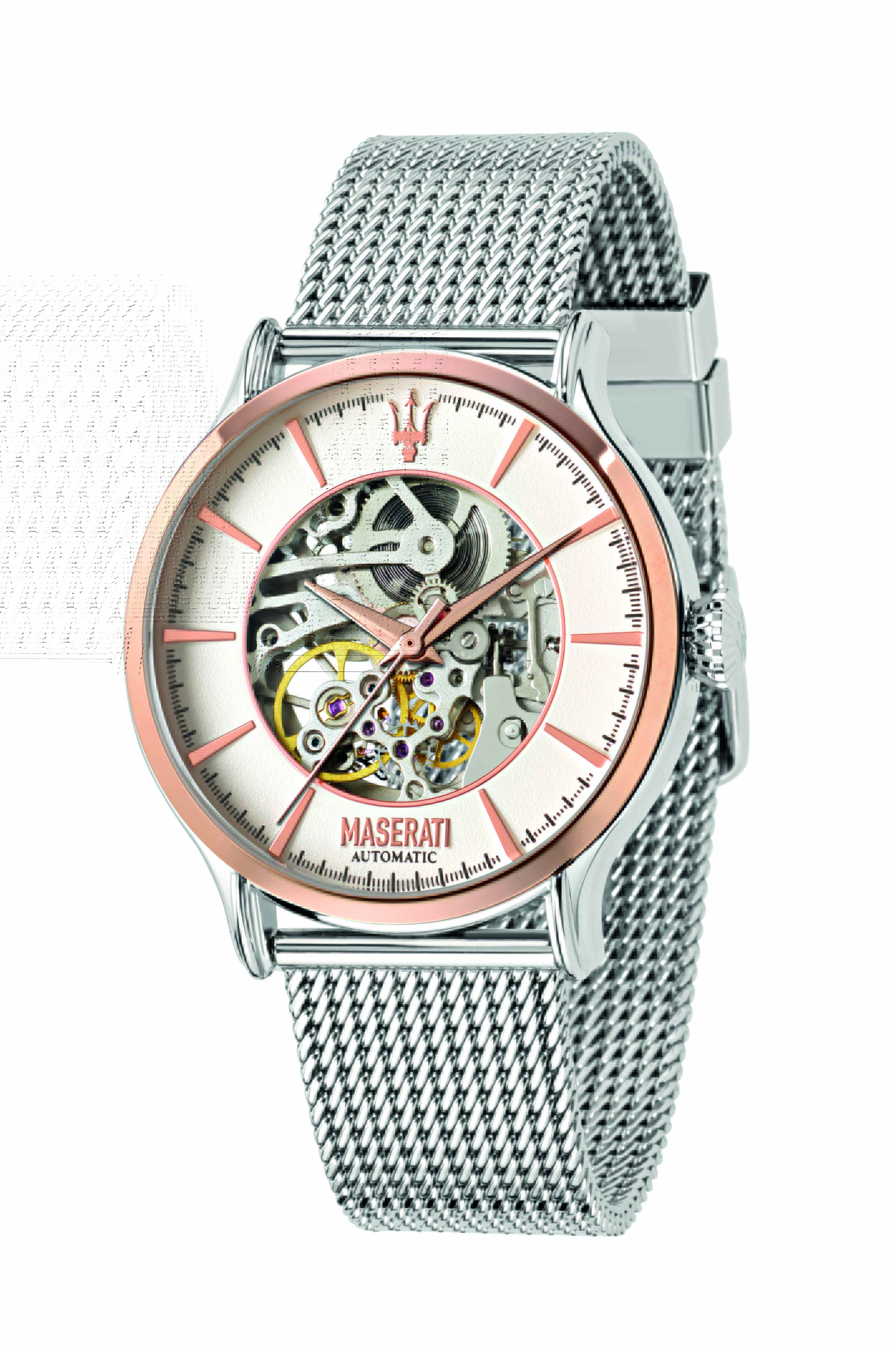 La mécanique s’allie à l’élégance dans la nouvelle montre squelette automatique de la collection Epoca de Maserati, la marque italienne icône du secteur des voitures sportives de luxe.