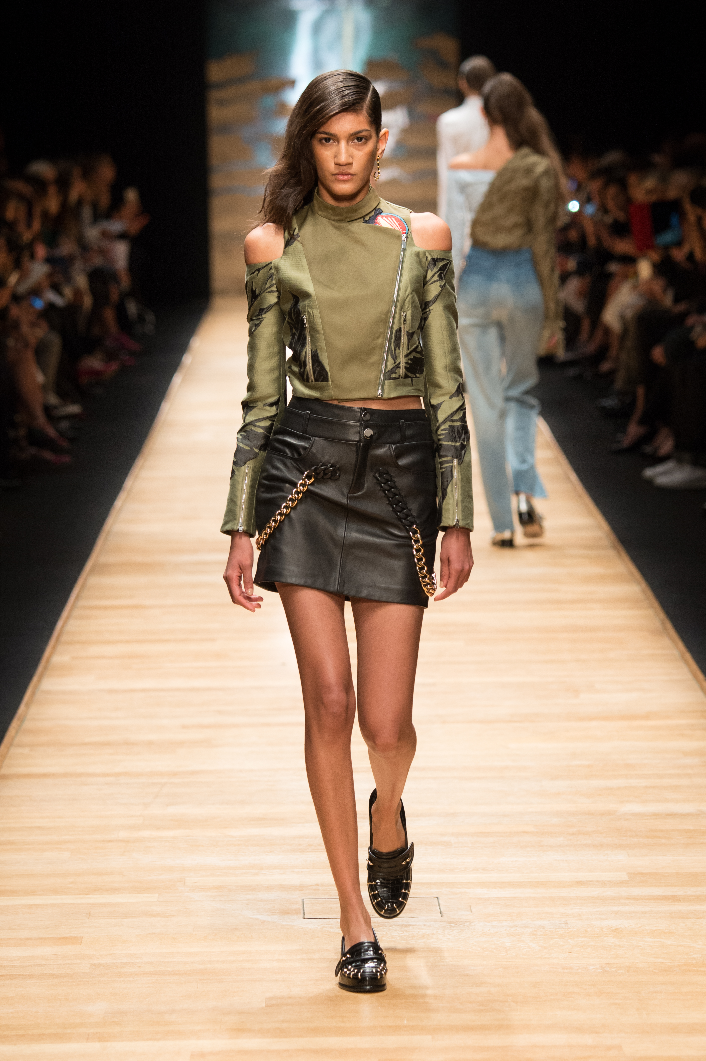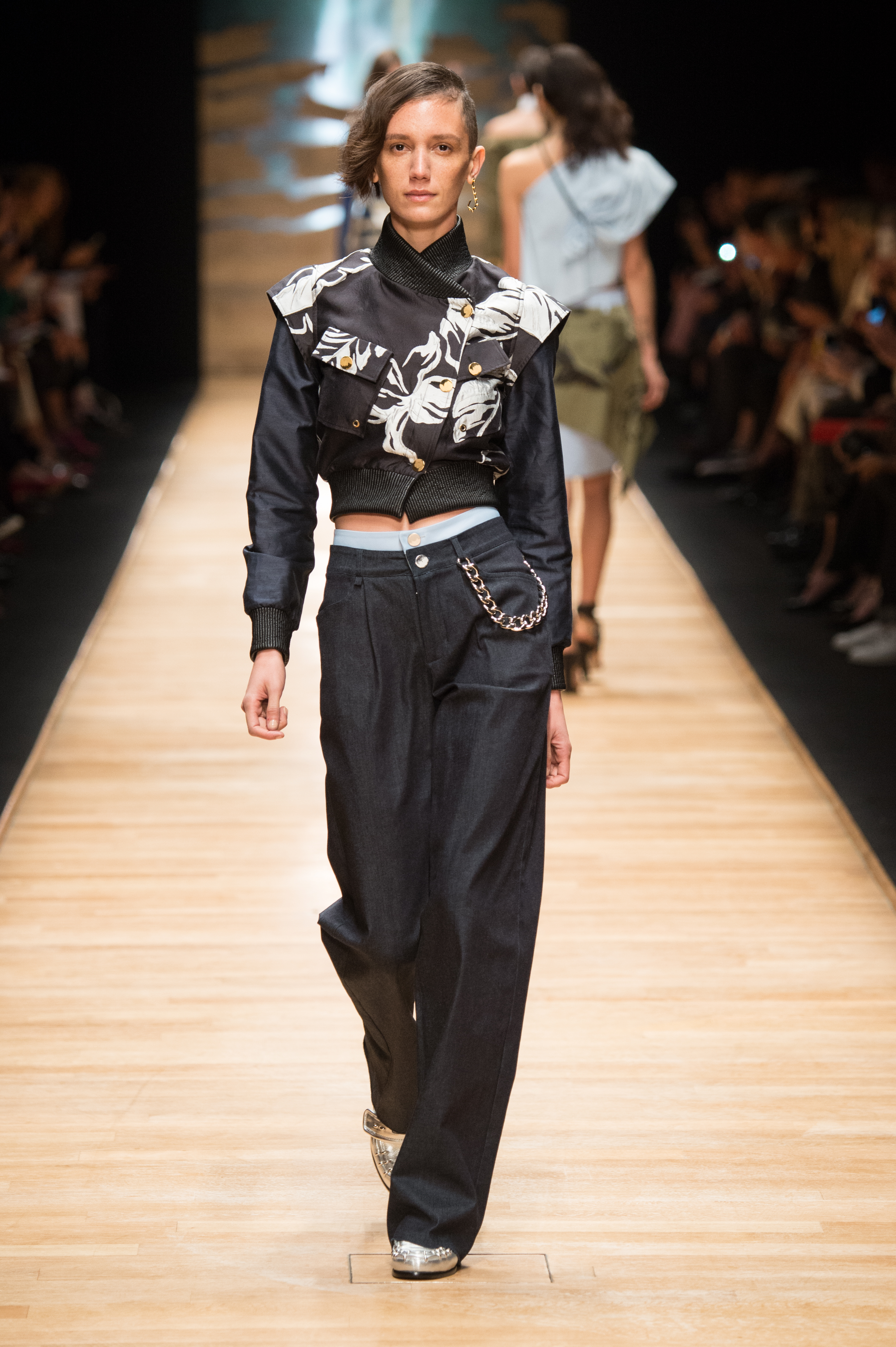 A ces lignes ‘boyish’ viennent se glisser des détails sensuels là où on ne les attend pas : des découpes sur le dos ou sur une clavicule illuminent un blouson opaque d’un carré de peau –remettant à jour l’ADN masculin-féminin de la maison.