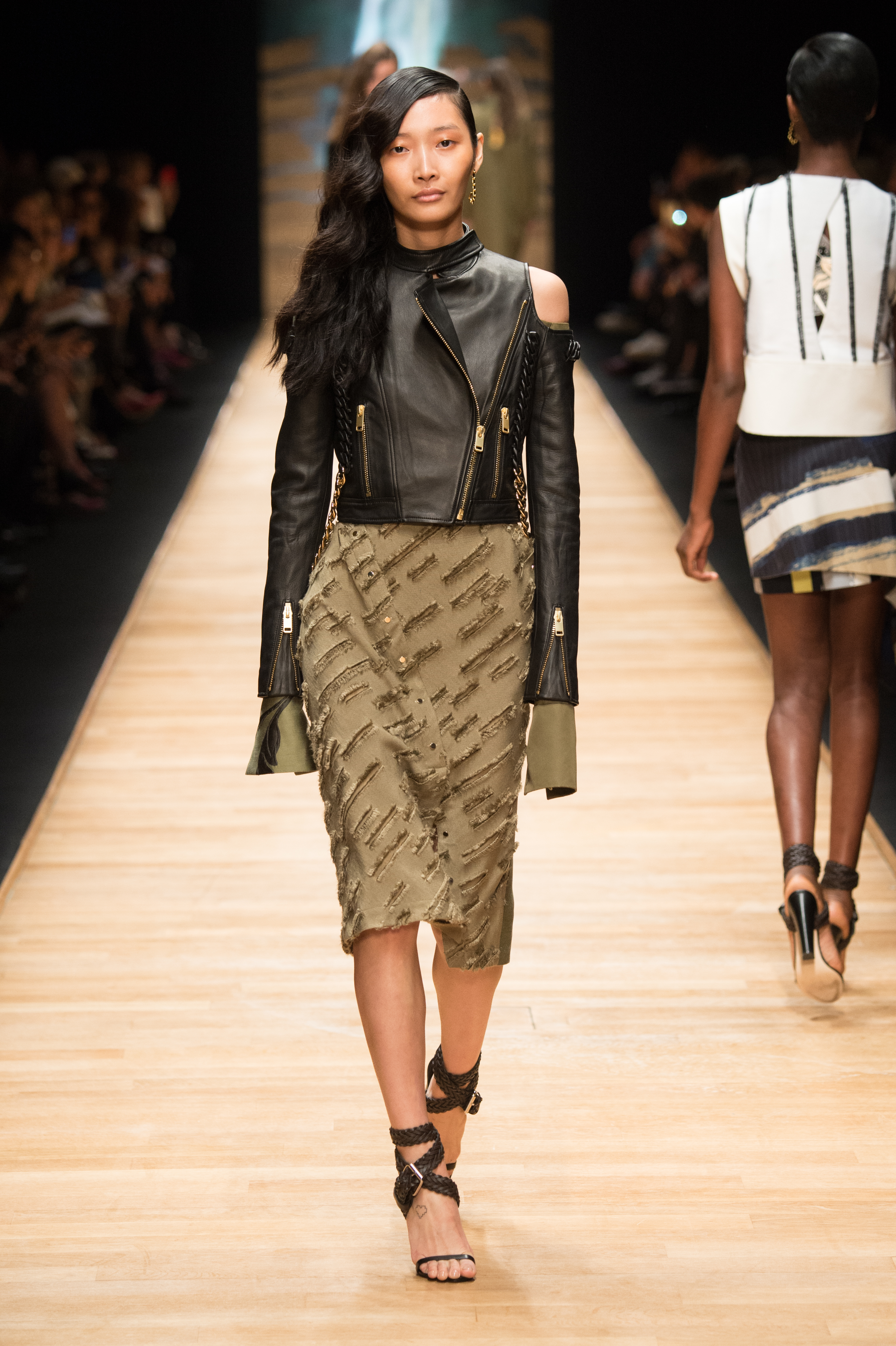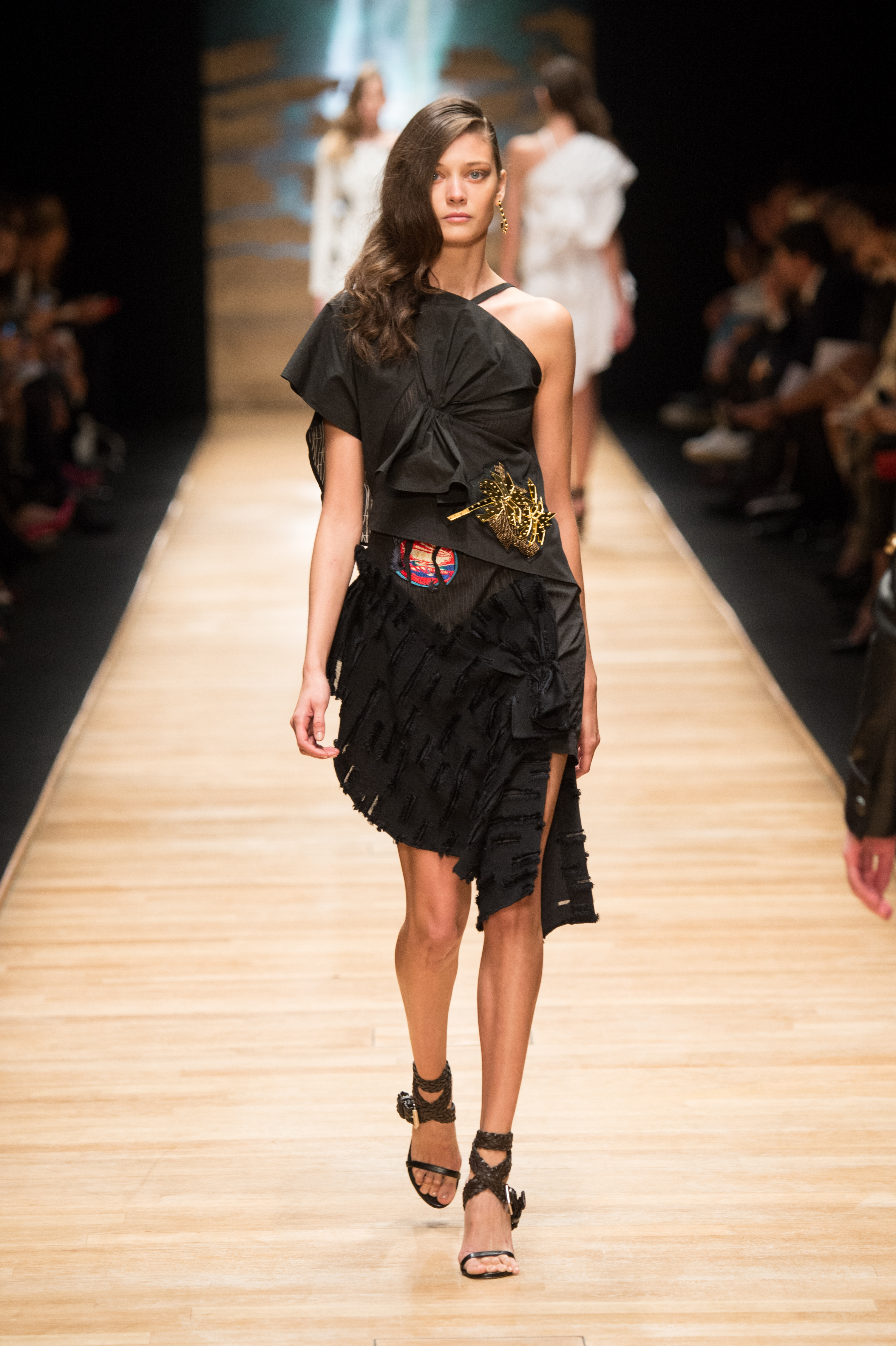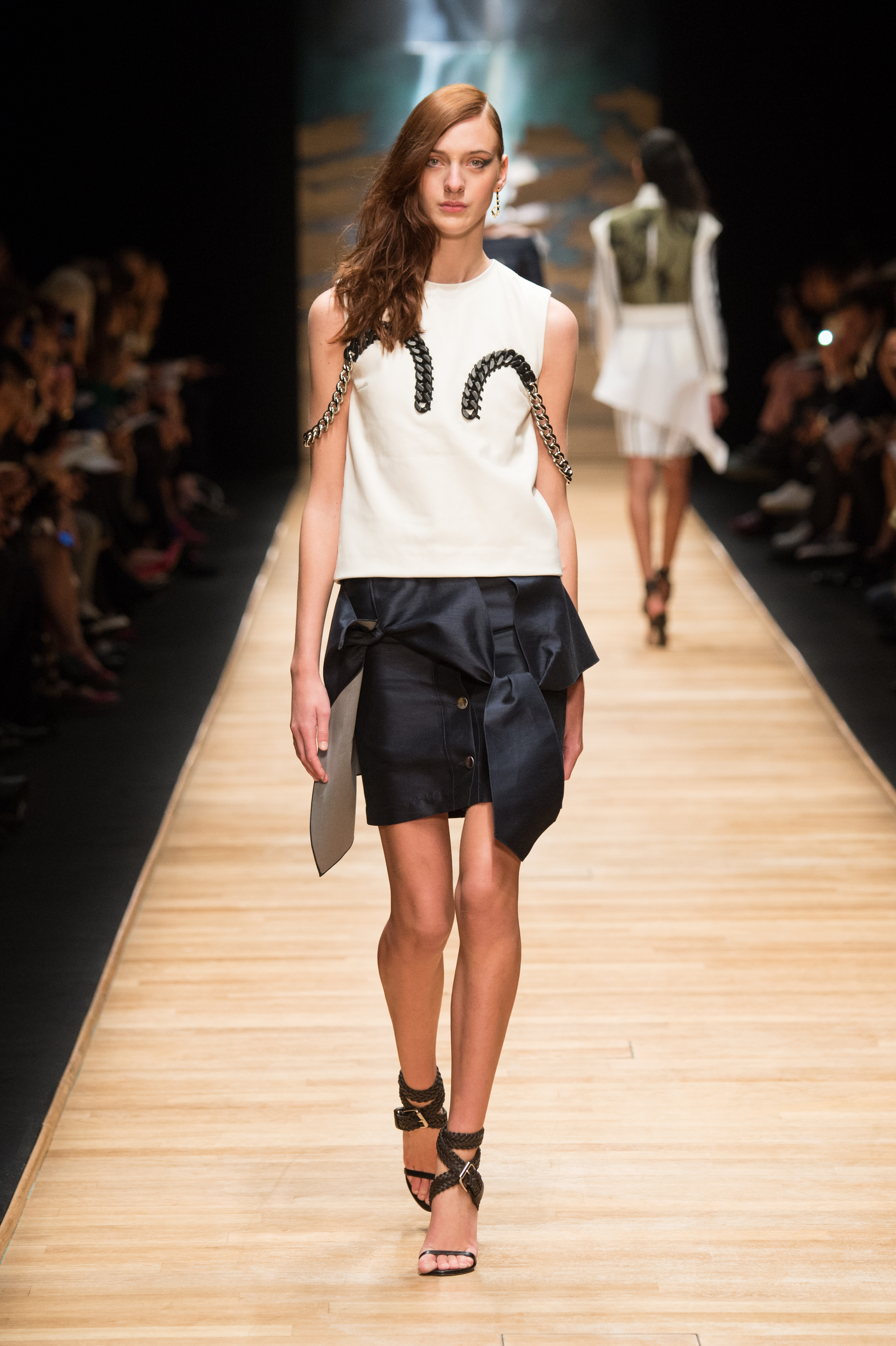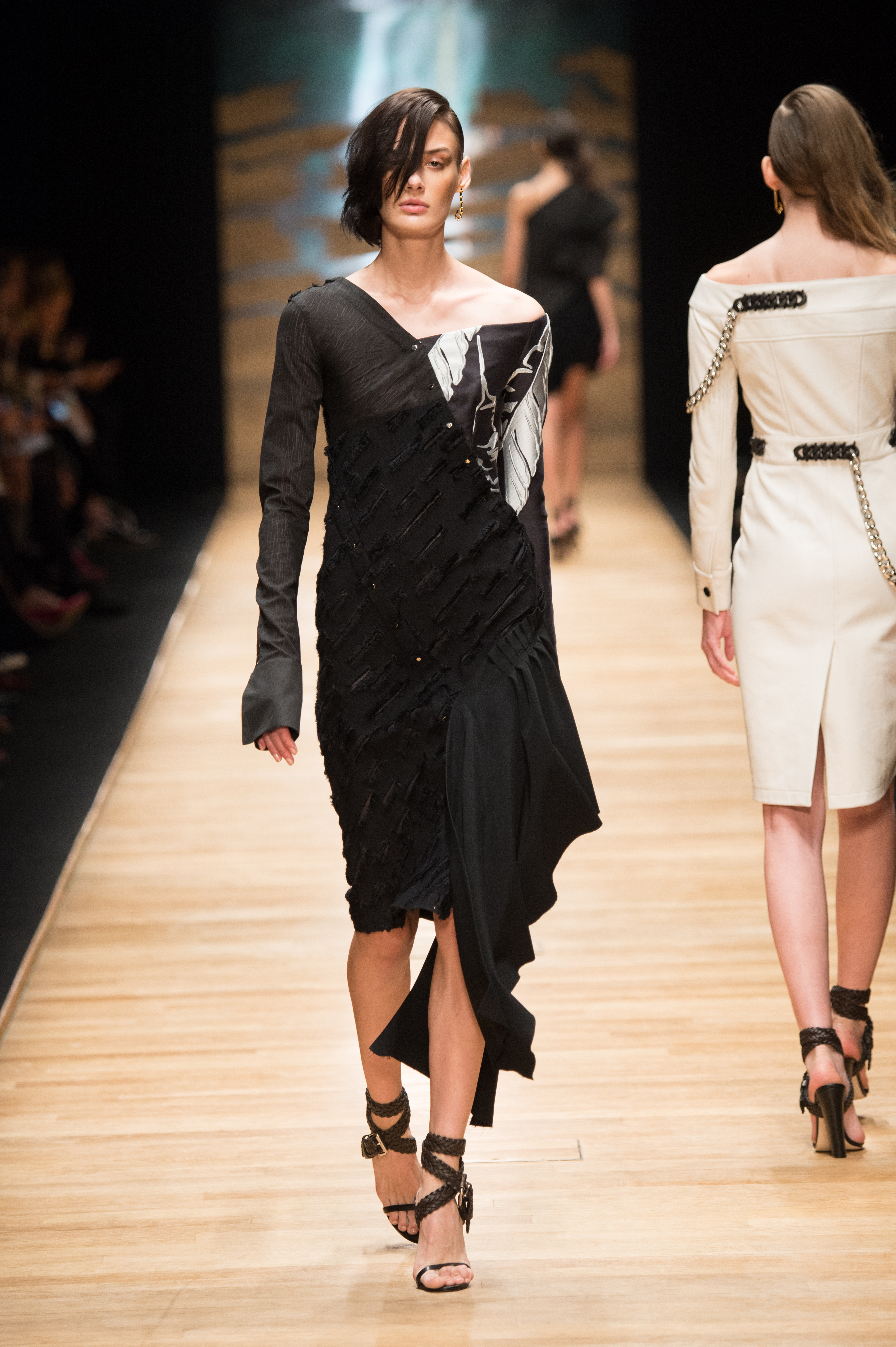 De la soie lacérée ou dévorée, des longueurs asymétriques et des détails industriels proposent une relecture urbaine et profondément contemporaine d’une élégance aussi intemporelle que ‘Laroche’.