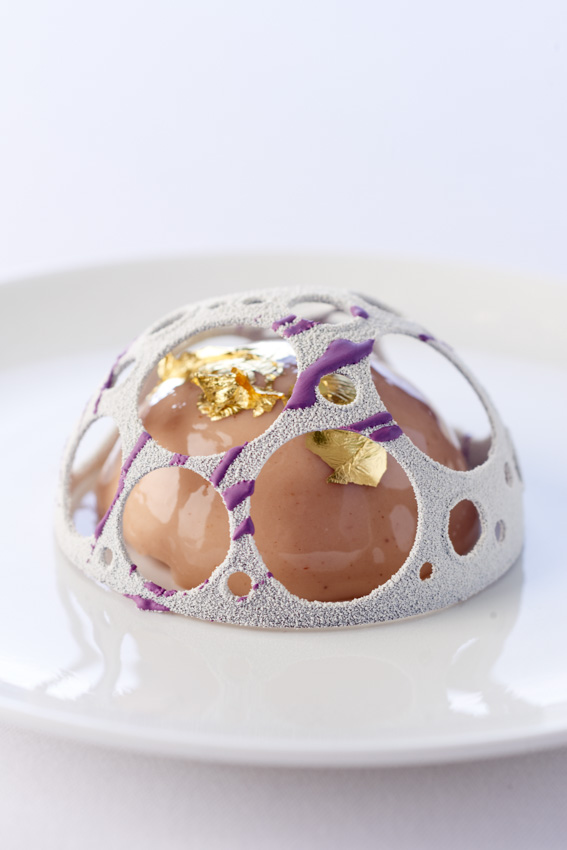 A l’heure des envies de chacun de retrouver le chemin d’une alimentation plus saine et raisonnée, le Shangri-La Hotel, Paris affine en toute logique sa démarche « en direct des producteurs ». Travaillant la pâtisserie comme la cuisine – « le produit d’abord » – Michaël Bartocetti s’inspire avant tout des produits de saisons. D’un même élan, les deux Chefs ont eu à coeur de dénaturer le moins possible le fruit et les saveurs : avec l’emploi de protéines végétales – plus discrètes, digestes, moins allergènes – et en utilisant notamment des sucres non raffinés, comme la fleur de coco, la panela (Rapadura), le sirop d’érable… Les fruits et saveurs naturels ont alors repris toute leur place au coeur de chaque gourmandise. Le résultat est surprenant tant les textures imitent ou remplacent parfois à l’avantage certains produits non vegan. Le gras ayant disparu, on découvre une délicatesse et des expressions gustatives auxquelles nous ne sommes pas habitués.