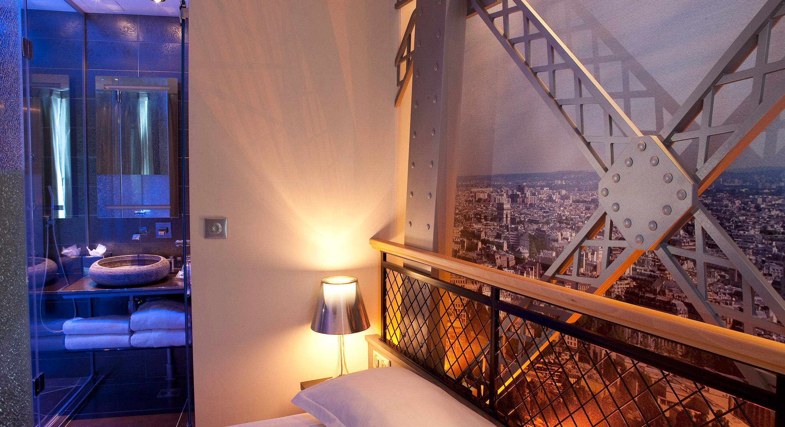 En effet chaque chambre rend hommage à un monument de paris, un Paris rêvé : Tour Eiffel, Moulin Rouge, Trocadero, Musée d’Orsay ou atelier d’artiste. Loins des excès souvent habituels dans les boutique hôtels qui surenchérissent d’effet décoration, on trouve ici une déco soignée et authentique. Les chambres sont une invitation à un voyage typiquement parisien. Les chambres sont cosy et bien équipées, idéal pour un séjour dans la capitale.