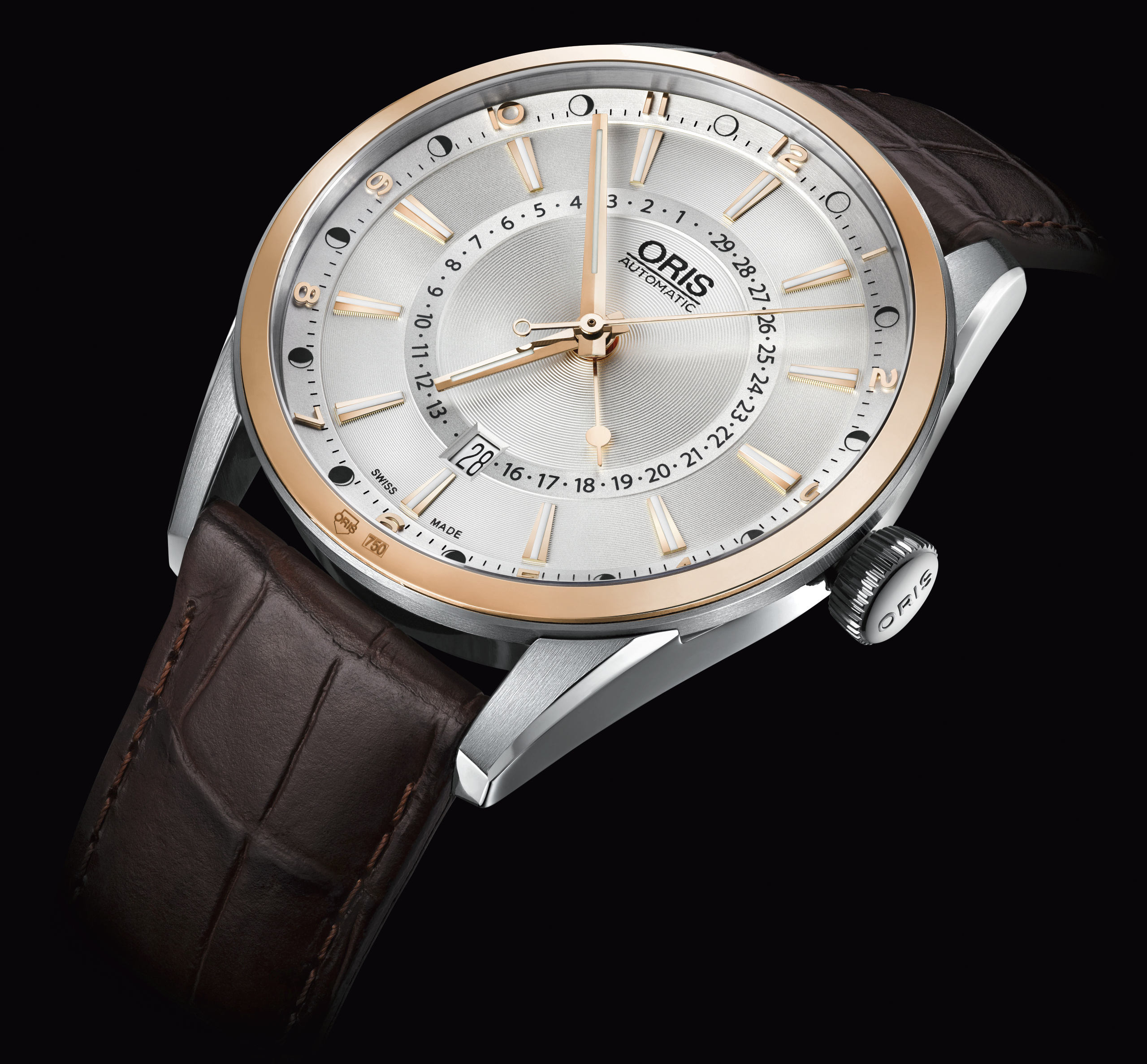 Sortie en 2014, la montre Artix Pointer Moon, Date est aujourd’hui proposée dans une séduisante déclinaison contrastée d’or rose. Comme la première version en acier, l’Artix Pointer Moon, Date Bicolore affiche avec précision les phases de la lune au moyen d’une aiguille centrale qui pointe l’âge et les différents visages de notre satellite.