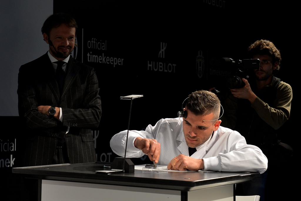 La présentation officielle du nouveau Big Bang Unico Bi-Retrograde Juventus s’est déroulée dans un décor d’exception, le prestigieux Club Gianni e Umberto Agnelli au Juventus Stadium de Turin, en présence d’Augusto Capitanucci, Directeur de marque chez Hublot Italie, de David Trezeguet, le Président des Légendes de la Juventus, et de Giorgio Ricci, Responsable des partenariats internationaux et des revenus d’entreprise de la Juventus, ainsi que de deux joueurs de la première équipe, Stefano Sturaro et Andrea Barzagli.
