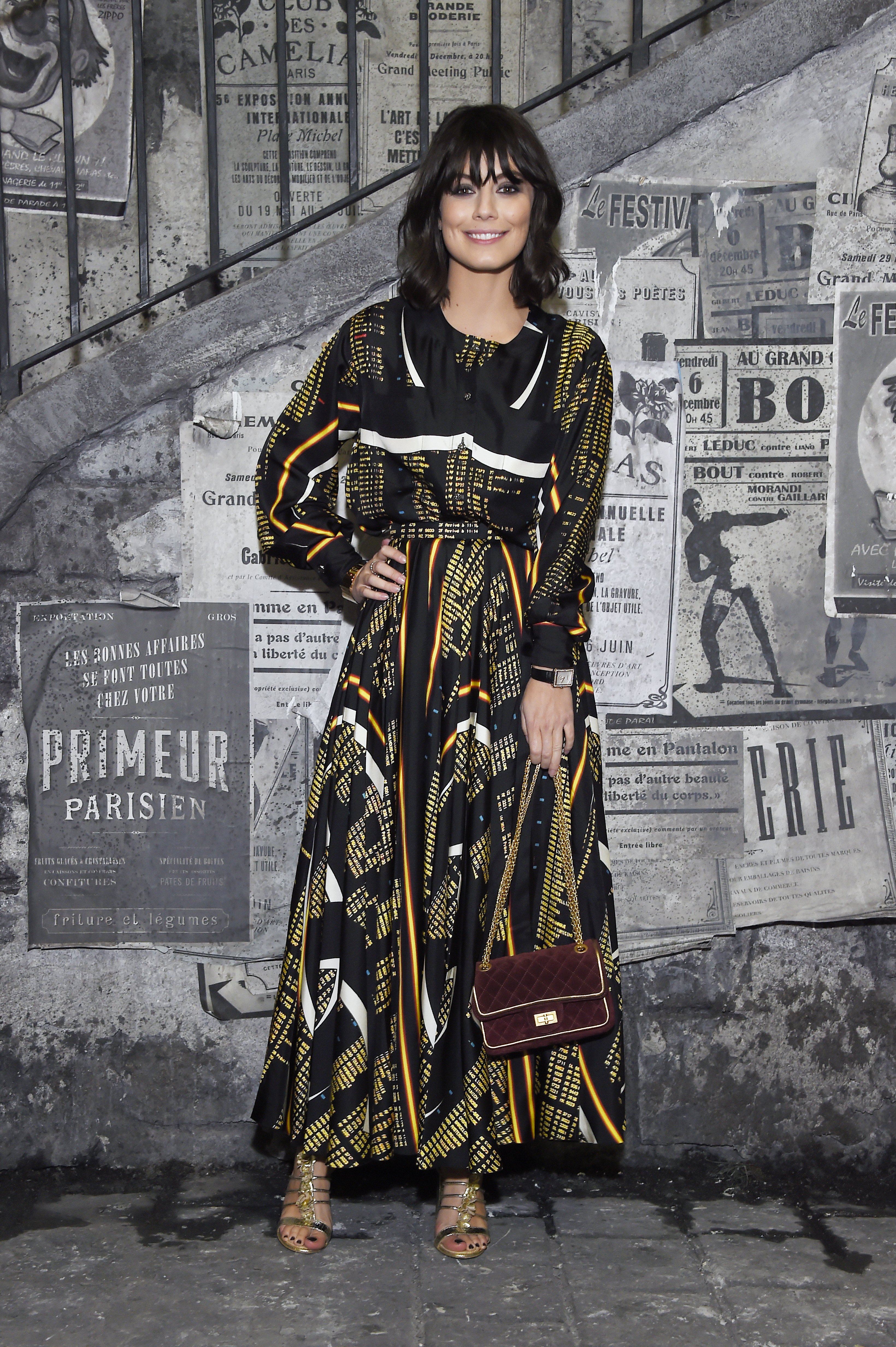 Elle portait une robe CHANEL de la collection Haute Couture Automne-Hiver 2015/16. Chaussures et sac CHANEL.