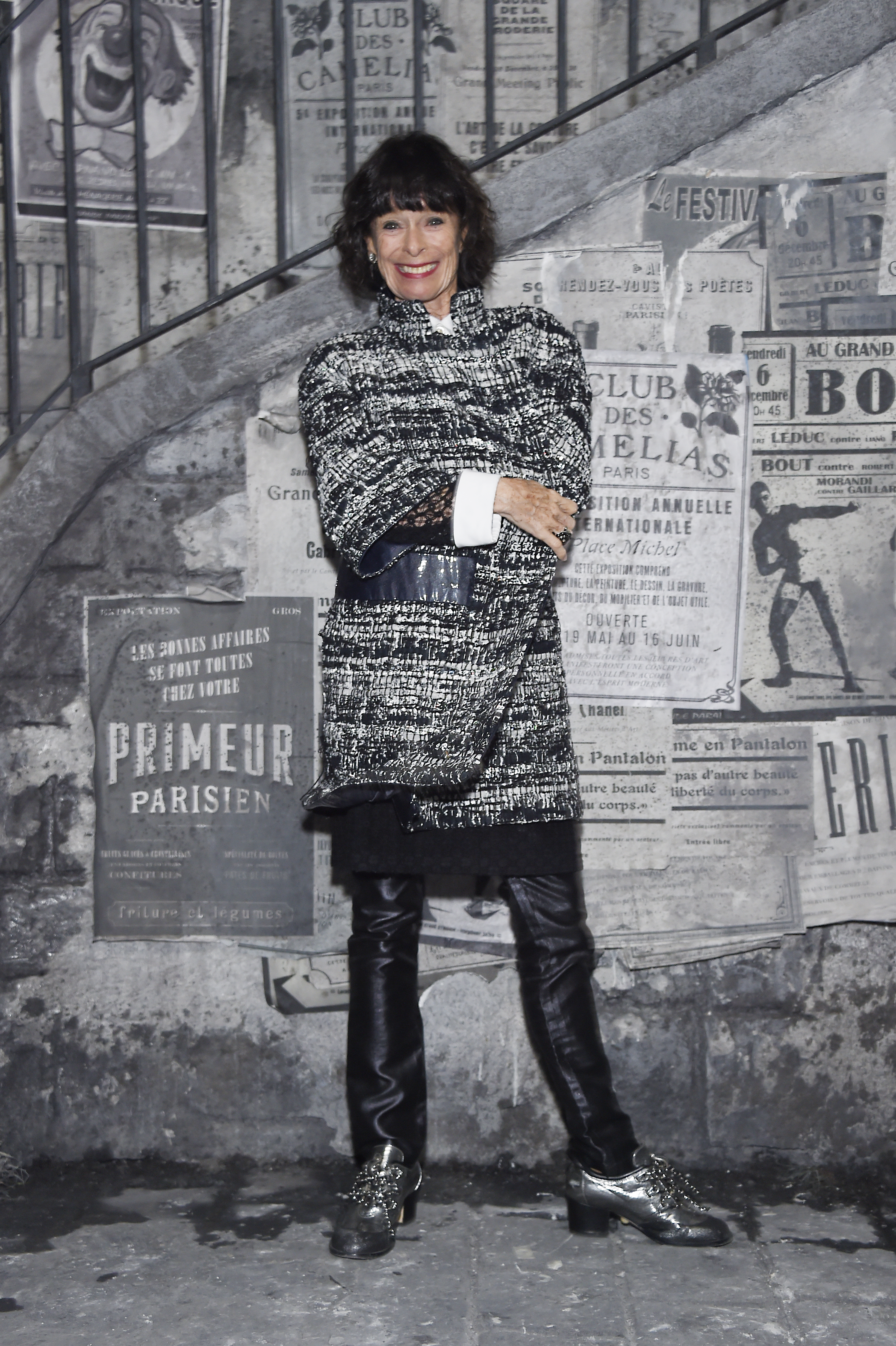 Elle portait un manteau CHANEL de la collection Prêt-à-Porter Printemps-Eté 2016 Acte 1 et une jupe CHANEL. Chaussures CHANEL.