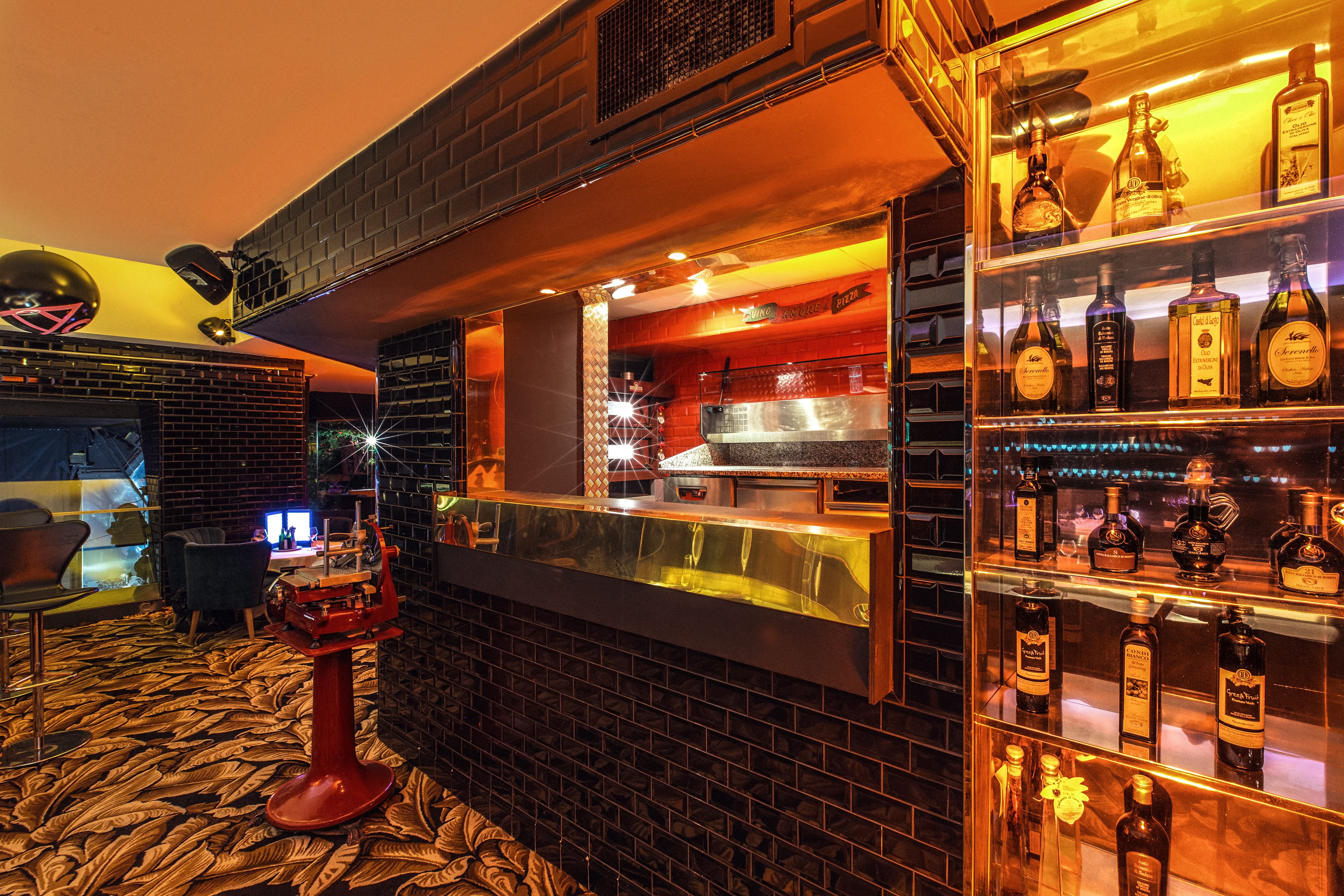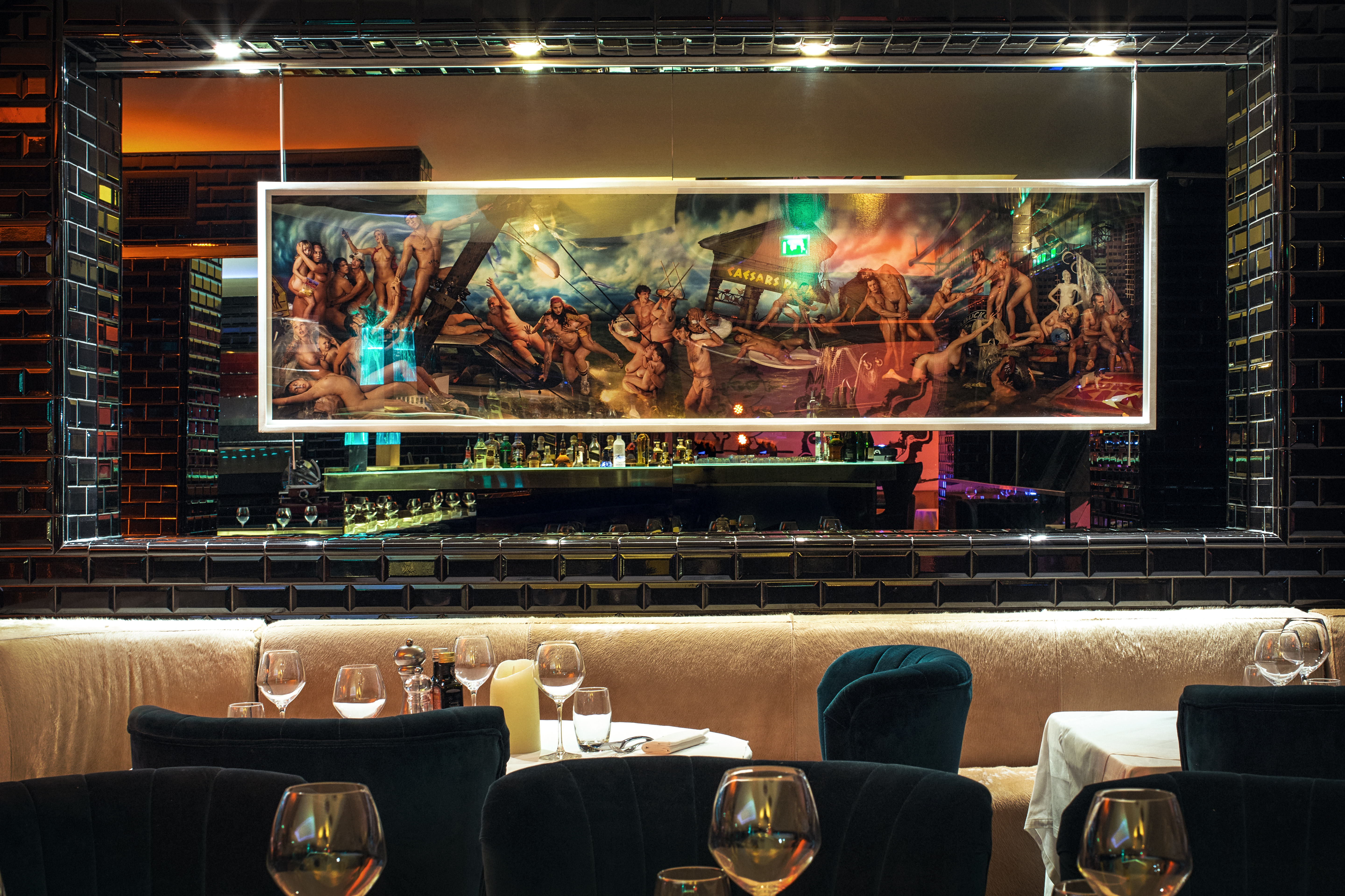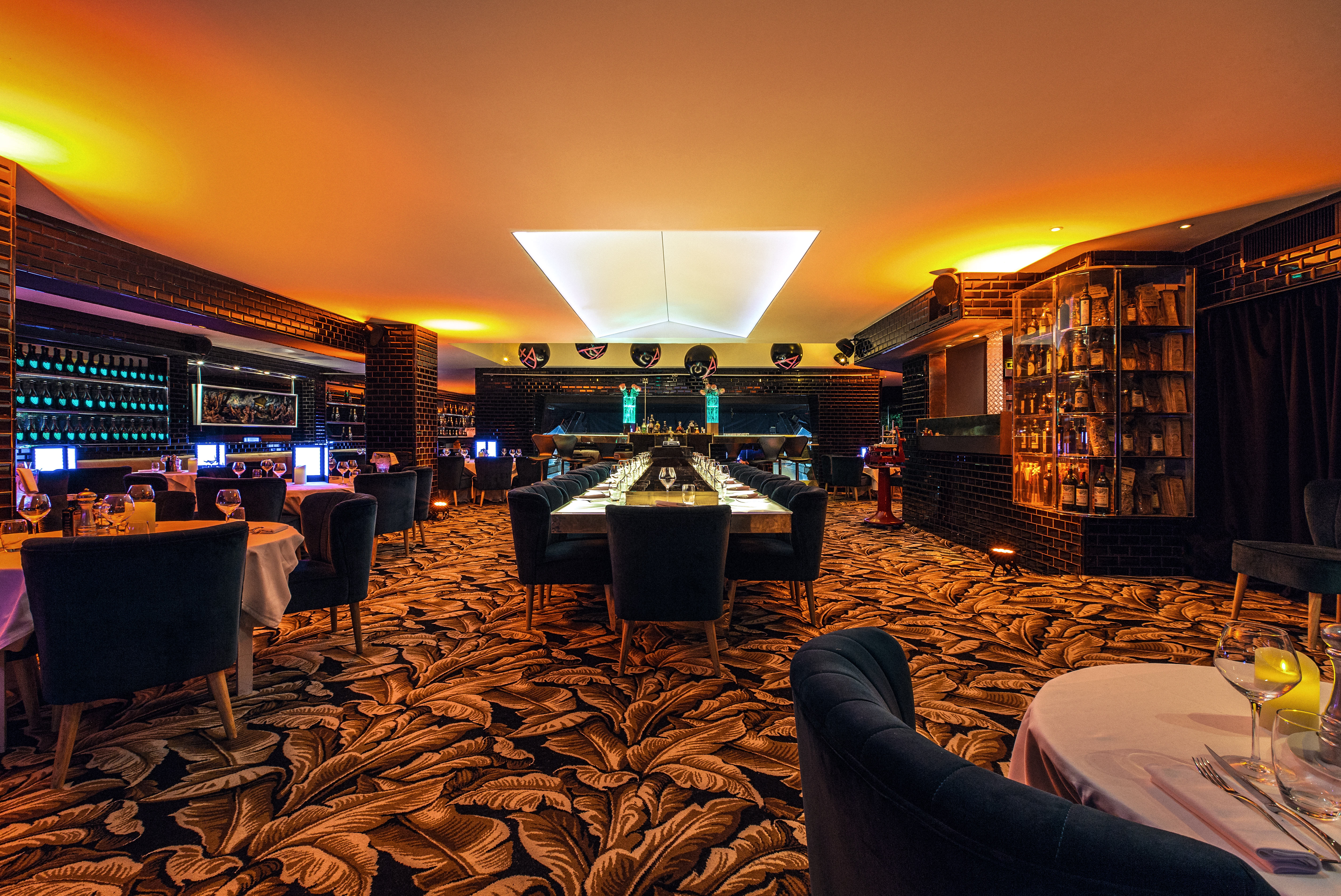 Ces murs de miroirs « ambre », ce bar et cette piste en laiton, se reflètent sur le cuir des sofas ainsi que sur le marbre noir…tout a été imaginé et réalisé par les fondateurs, juste par passion et détermination.