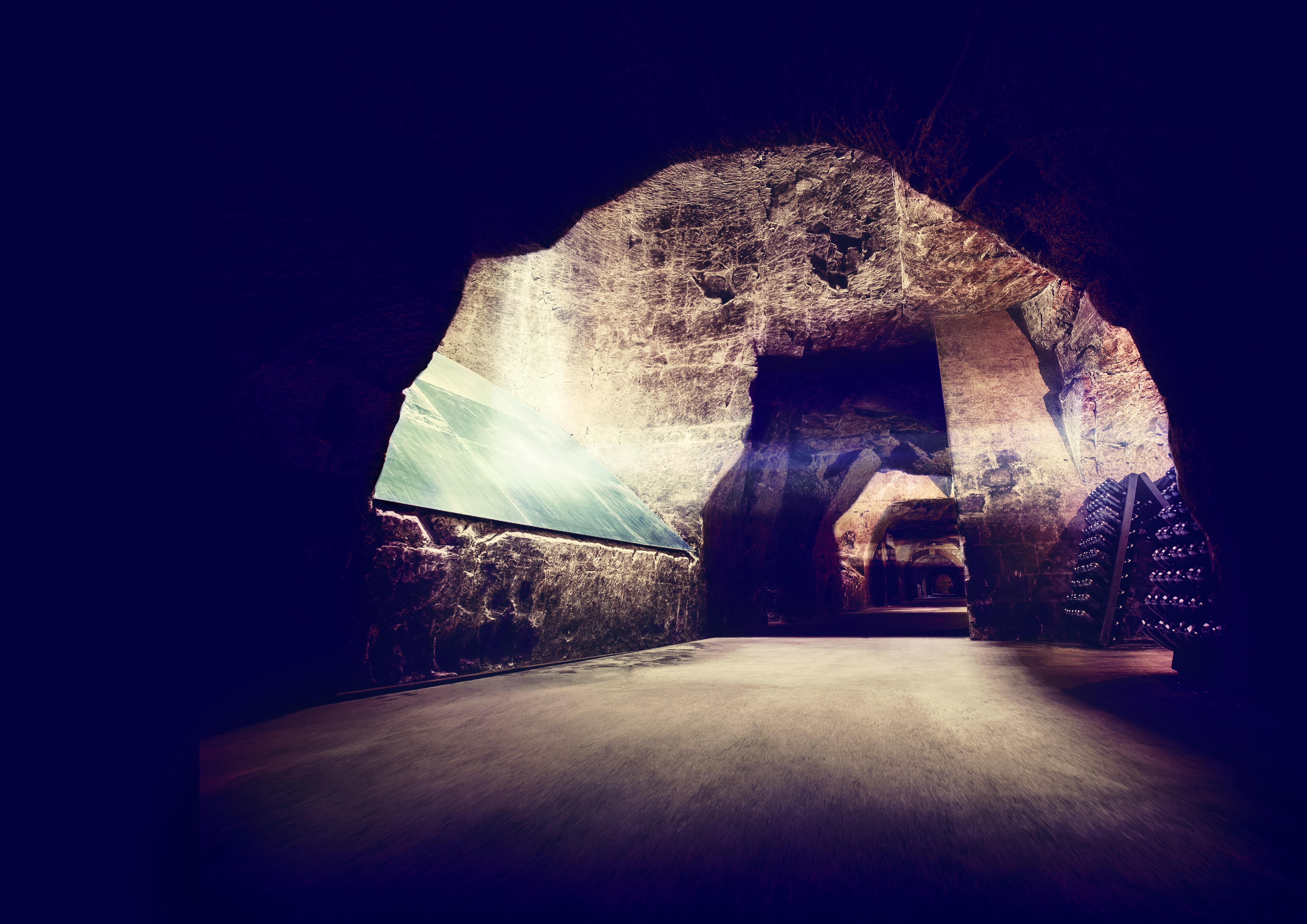 Créée en 1825, la Maison Joseph Perrier est historique et singulière. Située à Châlons-en-Champagne, elle possède des caves creusées de plain-pied dans la craie, dont certaines galeries datent de l’époque gallo-romaine. Ces caves ont la particularité d’avoir été percées d’essors – des puits de lumière – équipés à leur pied d’un réflecteur permettant un éclairage naturel.