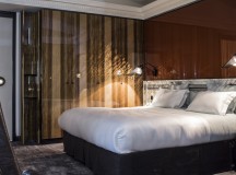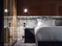 subtilement uniques, brassent des matériaux choisis, entre marbres blancs et bois précieux, ainsi qu’un mobilier raffiné sur mesure, référencé, en hommage à ses hôtes de marque, moquette gainsbourienne et réplique de canapé wharolien. Entre les pochettes de vinyle Joy Division, les sirènes des Bains qui égaient de leurs facéties les panneaux « do not disturb » et un beauty case concocté aux petits soins, l’ensemble préserve cette touche de transgression