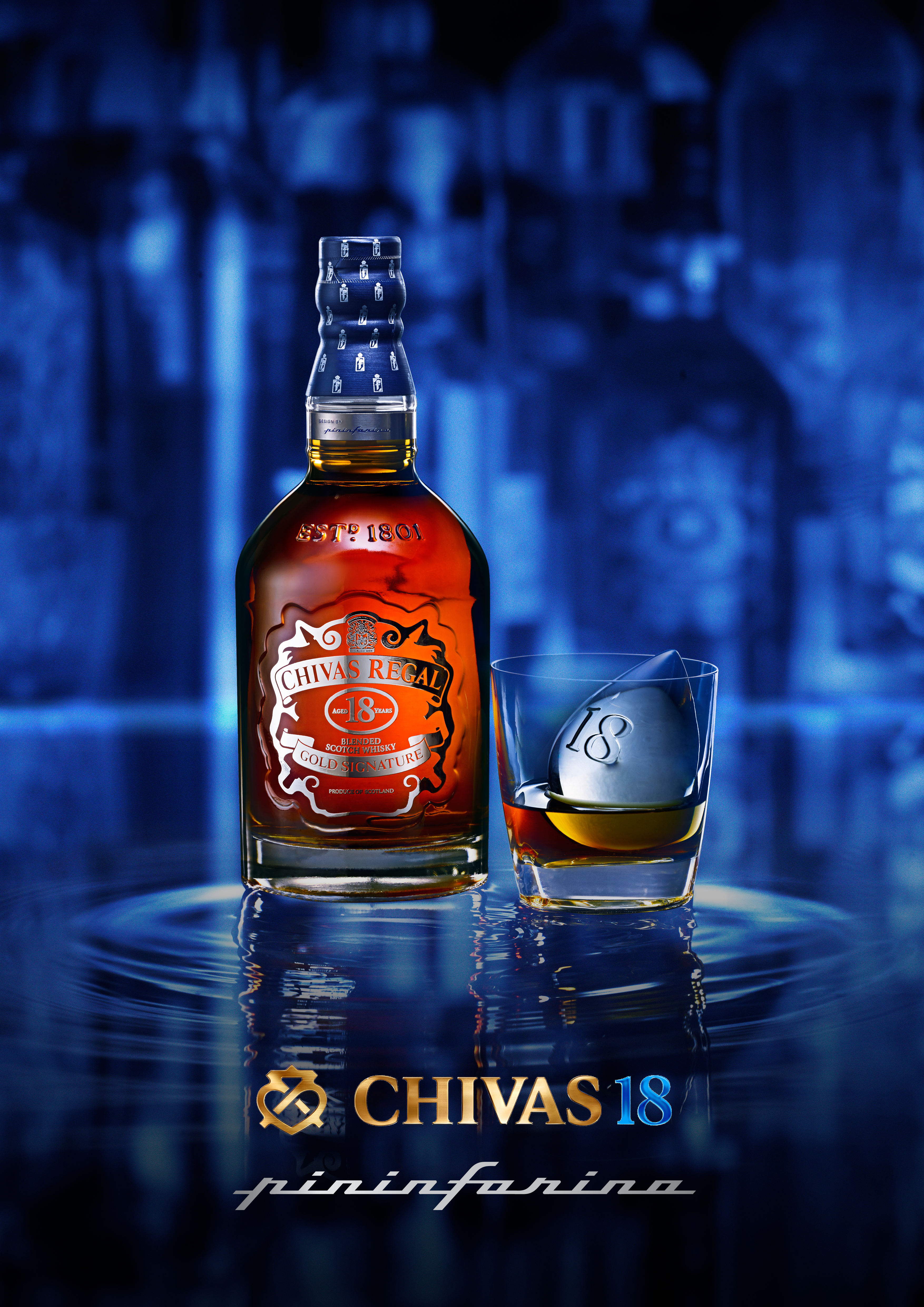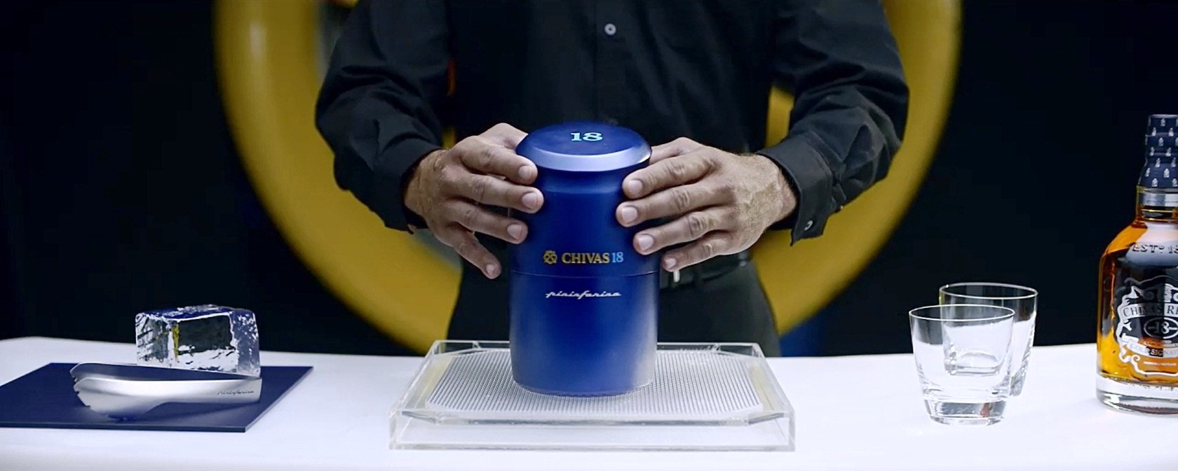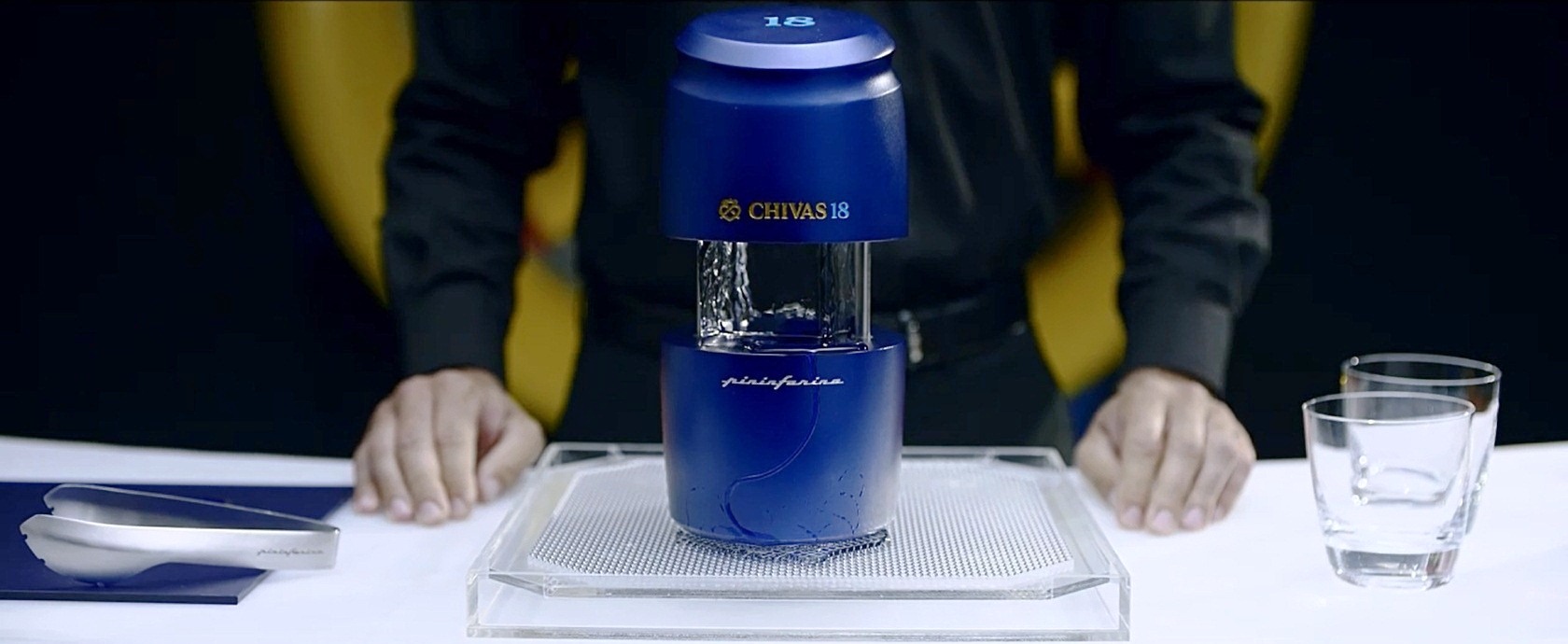 Chivas regal initie un nouveau rituel de dégustation où la glace, élevée au rang de matière artistique, occupe une place de choix dans le verre Pininfarina aux côtés du whisky Chivas Regal.