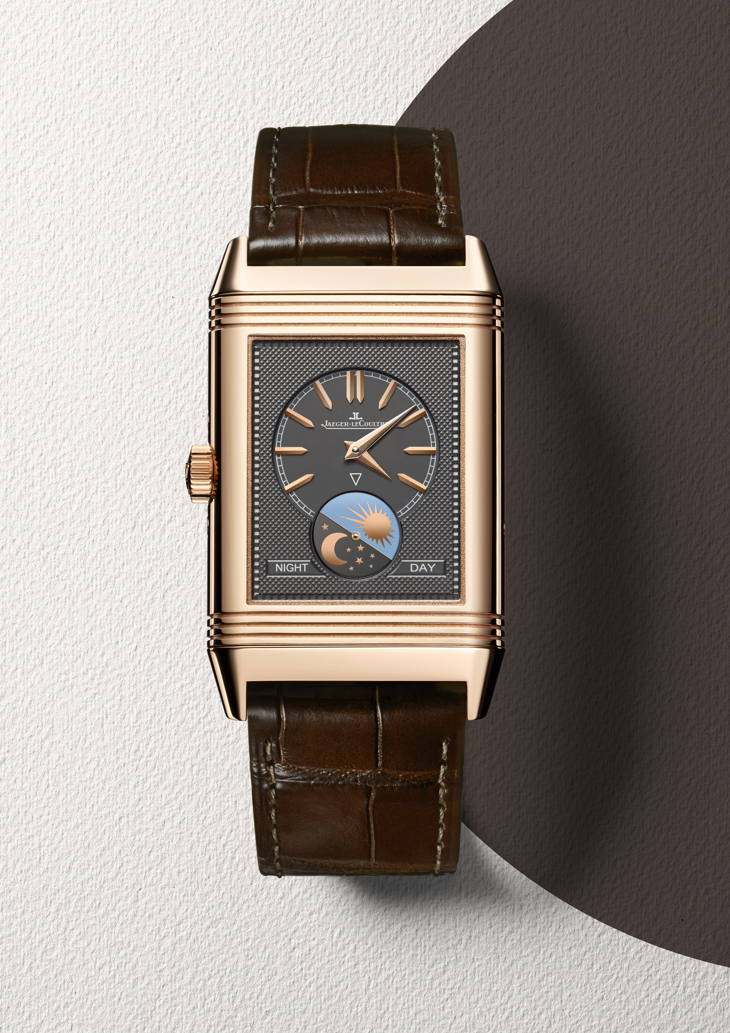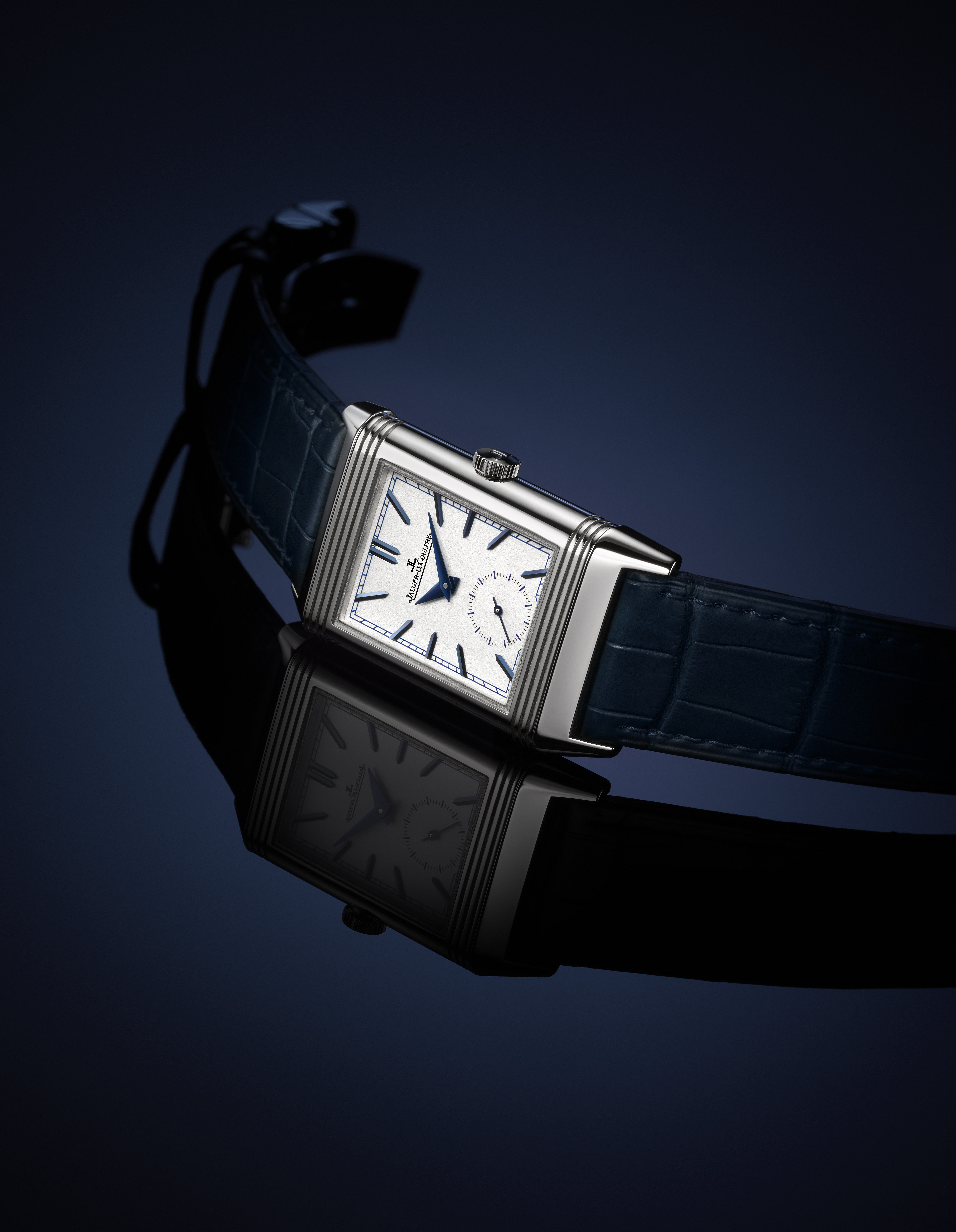 Généreuse en matière de complications et d’innovations, la Reverso Tribute crée la différence avec les proportions idéales de son boîtier, ses cadrans colorés à la texture légère grenée, ses aiguilles dauphines, ses index appliqués à la main et, ultime raffinement, son brancard à la finition soleillée.