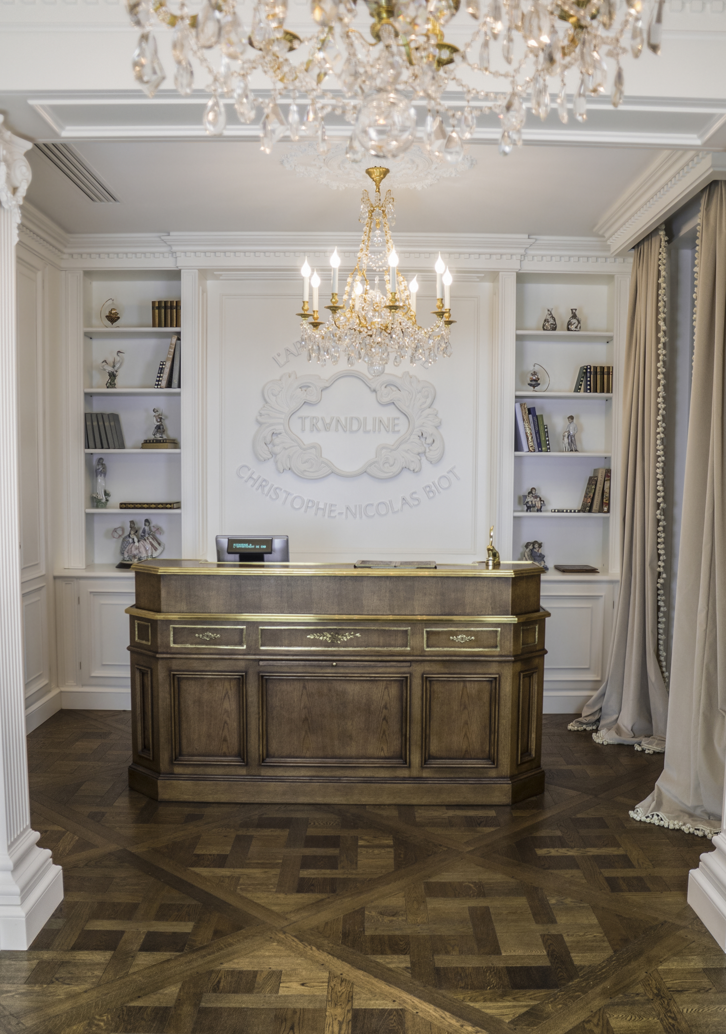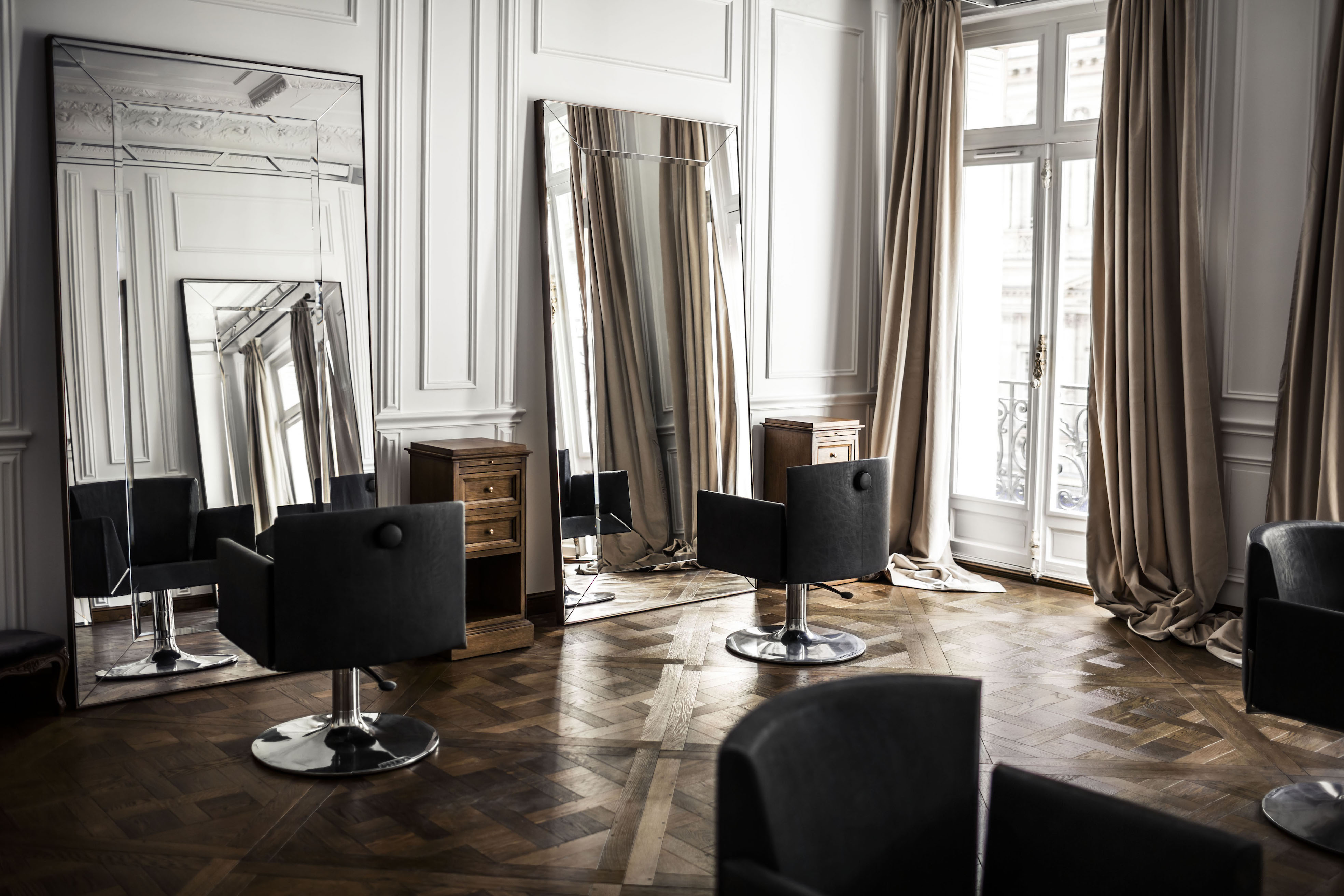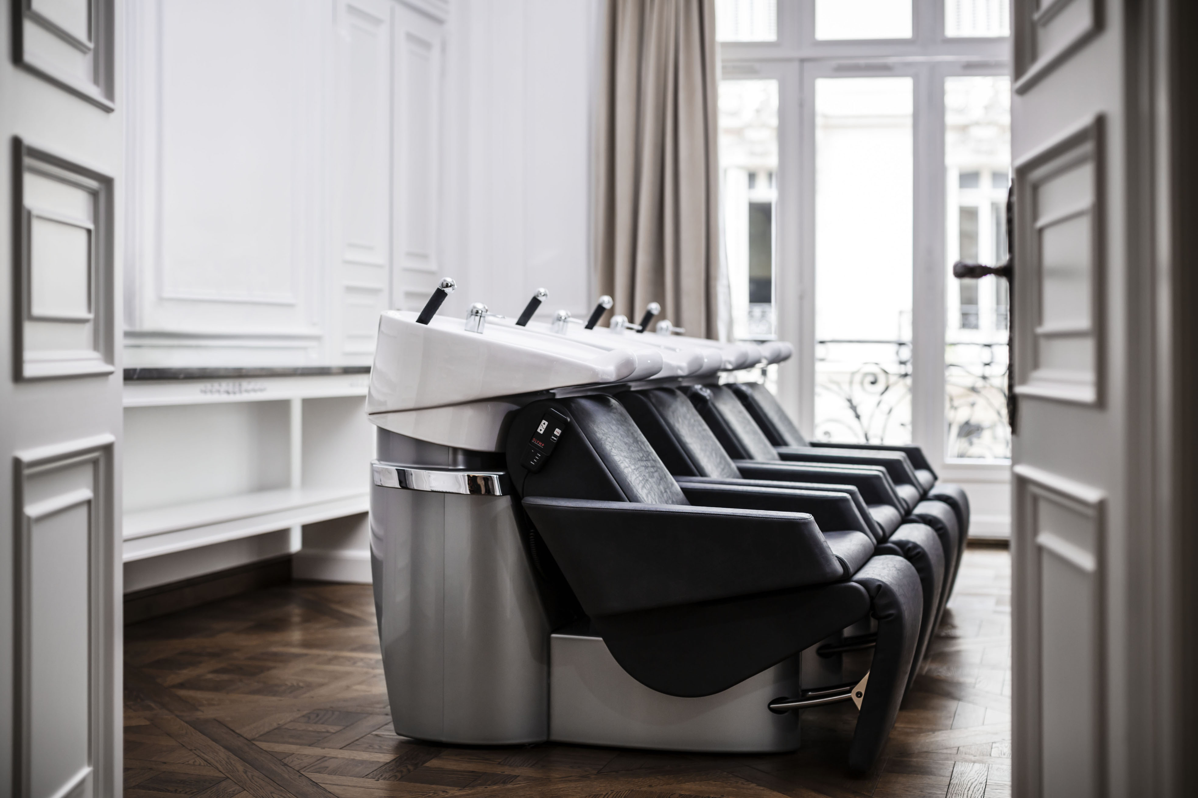 Ce nouveau lieu hautement chic et exclusif, au cœur du 8ème arrondissement, invite à redécouvrir « la beauté » dans son ensemble. Passée l’entrée et l’accueil situé au 2ème étage, « L’Appartement de Christophe-Nicolas Biot » qui donne sur la rue Pierre Charron, est baigné de lumière et de tonalités douces. Parquet «Versailles», cheminées, moulures et lustres en cristal se retrouvent dans les différents salons aux belles hauteurs sous plafond qui accueillent les majestueux miroirs biseautés. Les fauteuils, particulièrement pensés et adaptés pour un confort optimal, conservent un esthétisme sans faille, tout comme les meubles de rangement taillés sur mesure pour dissimuler brosses et produits. Des bois précieux, des rideaux épais, « L’Appartement de Christophe-Nicolas Biot » est pensé tel un « 5 étoiles » et co-piloté d’ailleurs par Guillaume Seng, ex Spa manager du Shangri La. Cet espace où règne hédonisme, calme et douceur propose toutes les prestations de coiffures à la carte ainsi qu’une gamme de soins extrêmement large et complète.