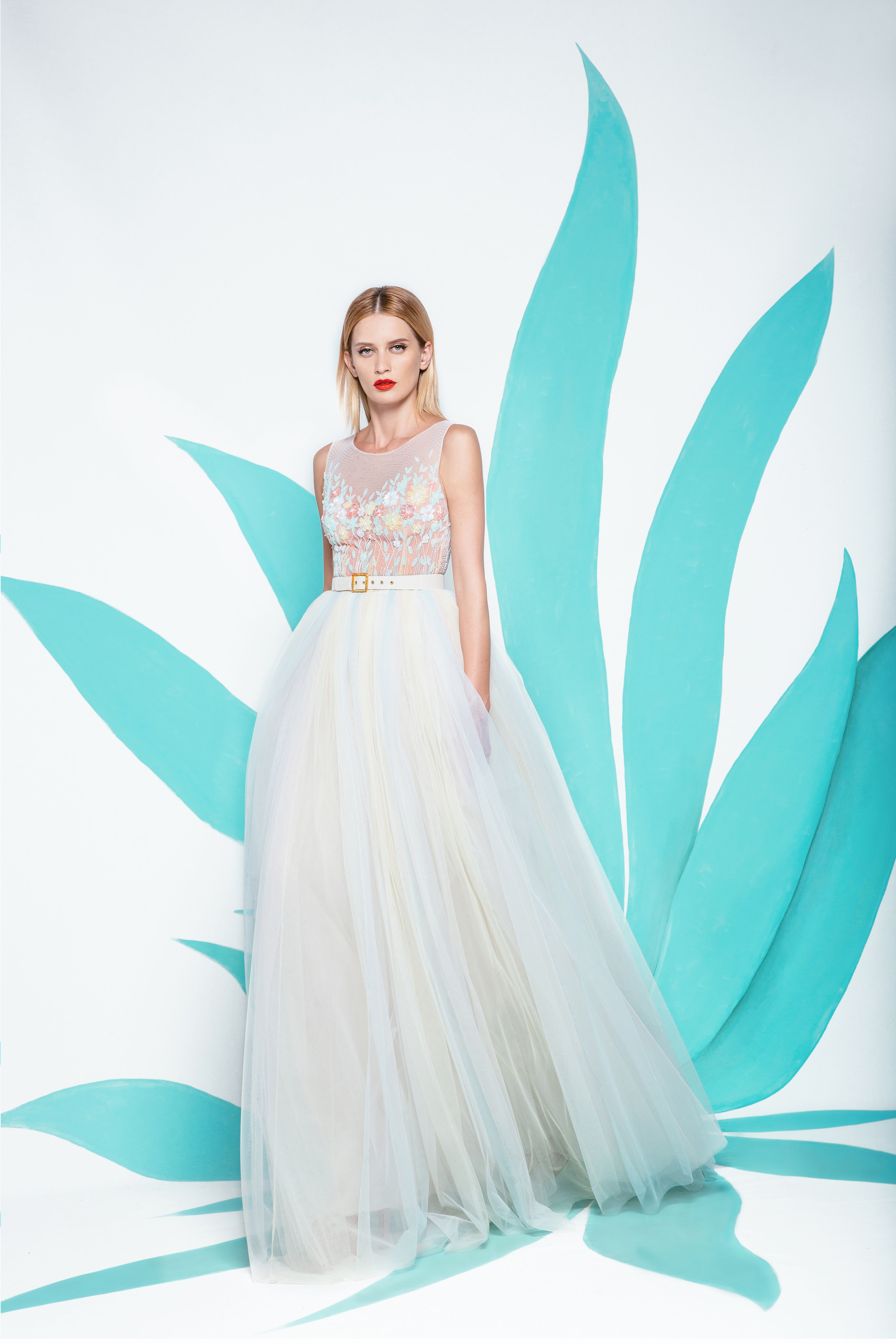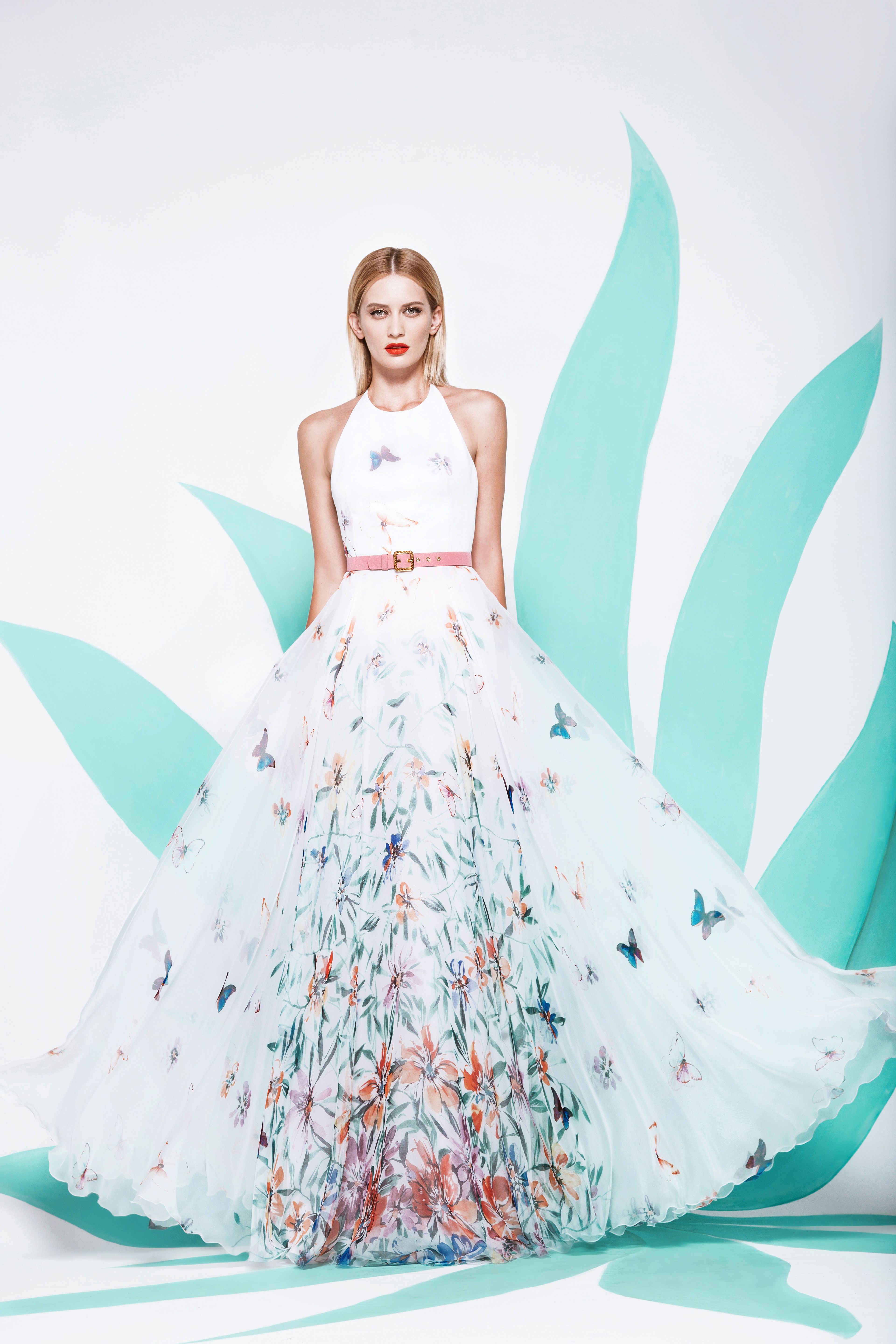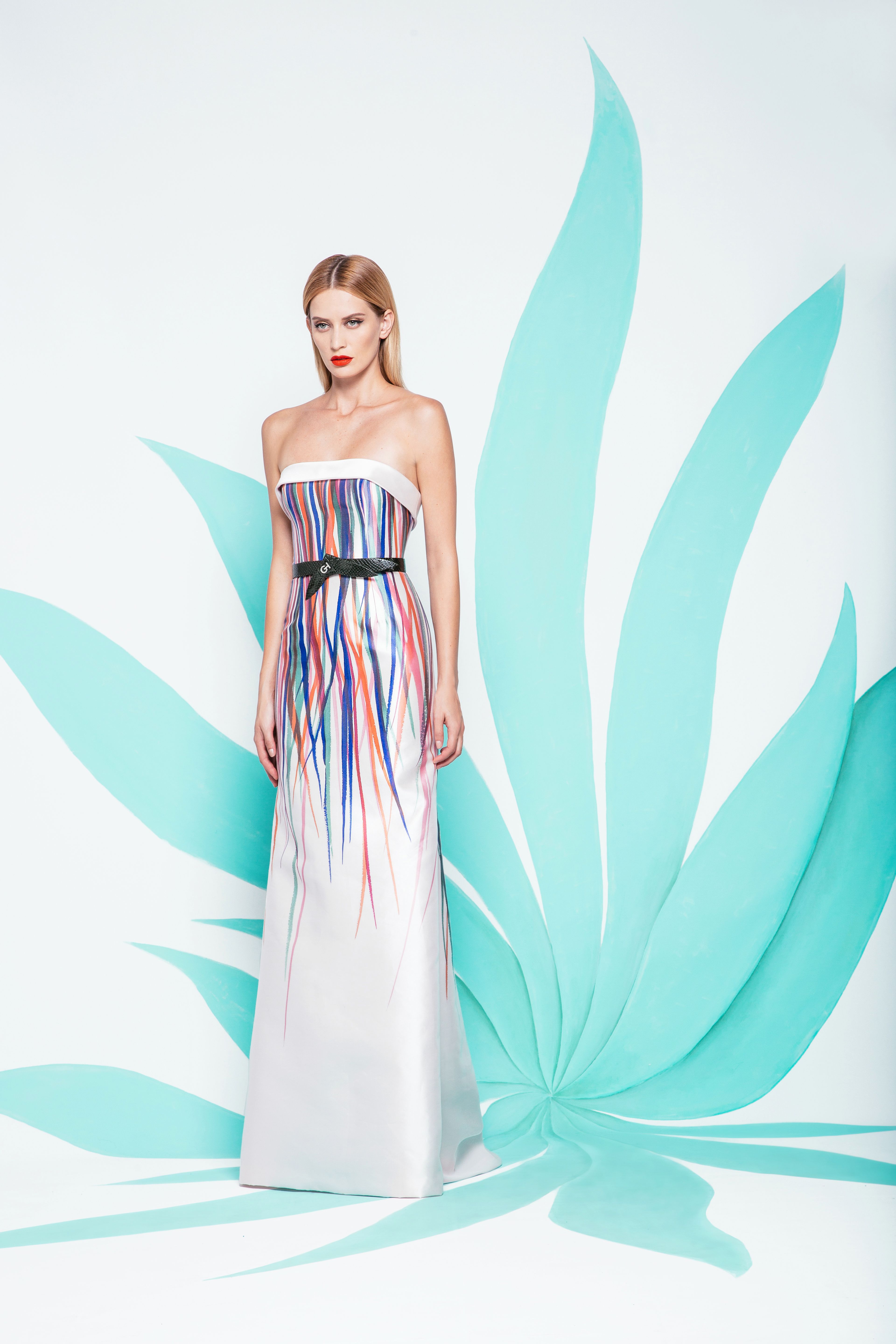 D’humeur libre et tropicale, la collection Georges Hobeika printemps-été 2016 résonne comme une promesse de départ imminent vers une destination lumineuse et exotique. Une ode au voyage et à la félicité fortifiée par une myriade de silhouettes qui conjuguent l’essence précieuse de la couture à l’élégante légèreté d’un vestiaire nonchalant et vaporeux.