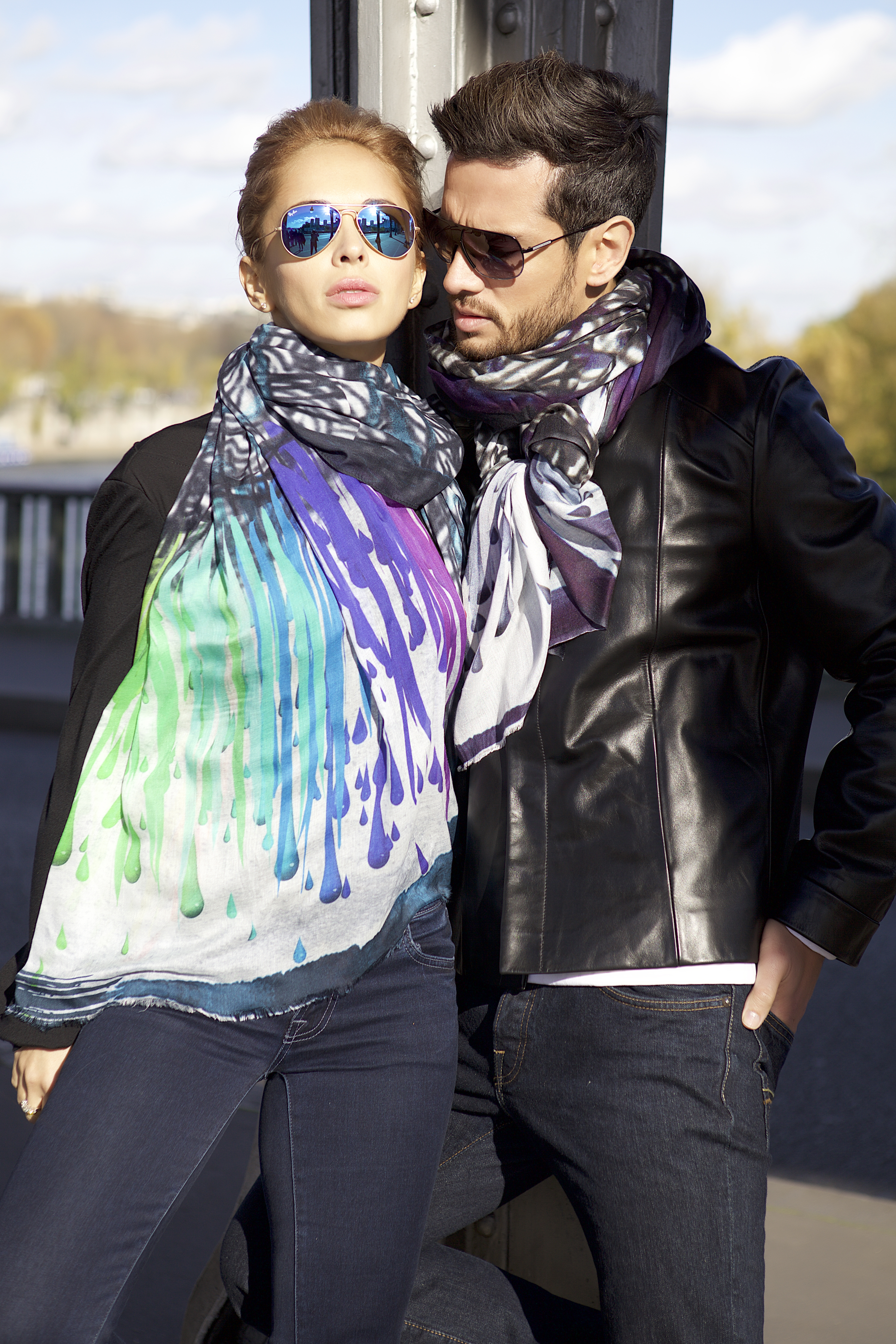 A destination mixte, ses foulards en modal, cachemire, laine, soie ou coton au design made in Paris, ont tout pour séduire un large public tant par leurs imprimés fantasmagoriques et ludiques que par les teintes savamment étudiées et la douceur des matériaux qui confèrent à ses étoffes le plus qui fait toute la différence dans la construction d’un look et par la touche finale qu’apporte une pièce Sasha Berry