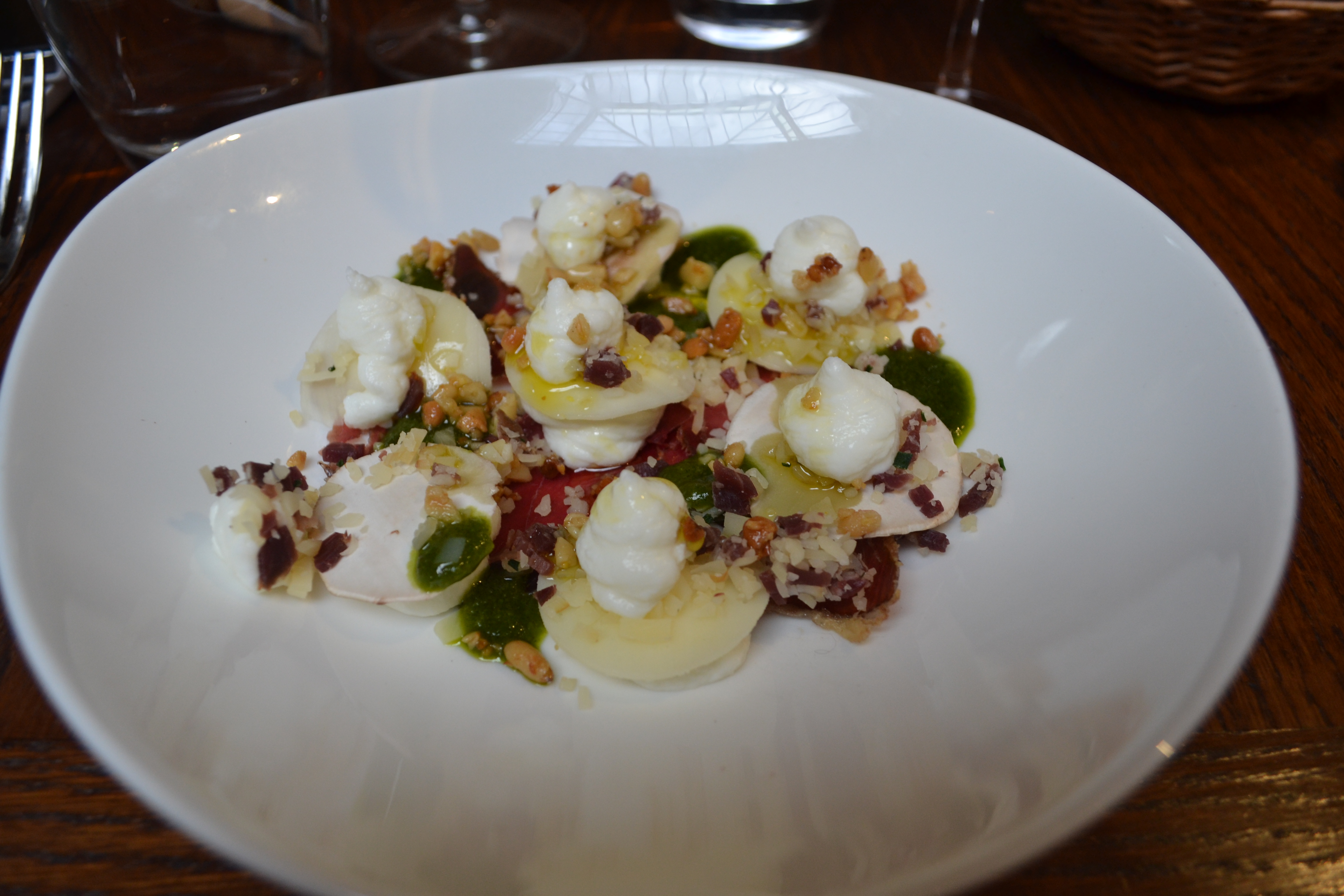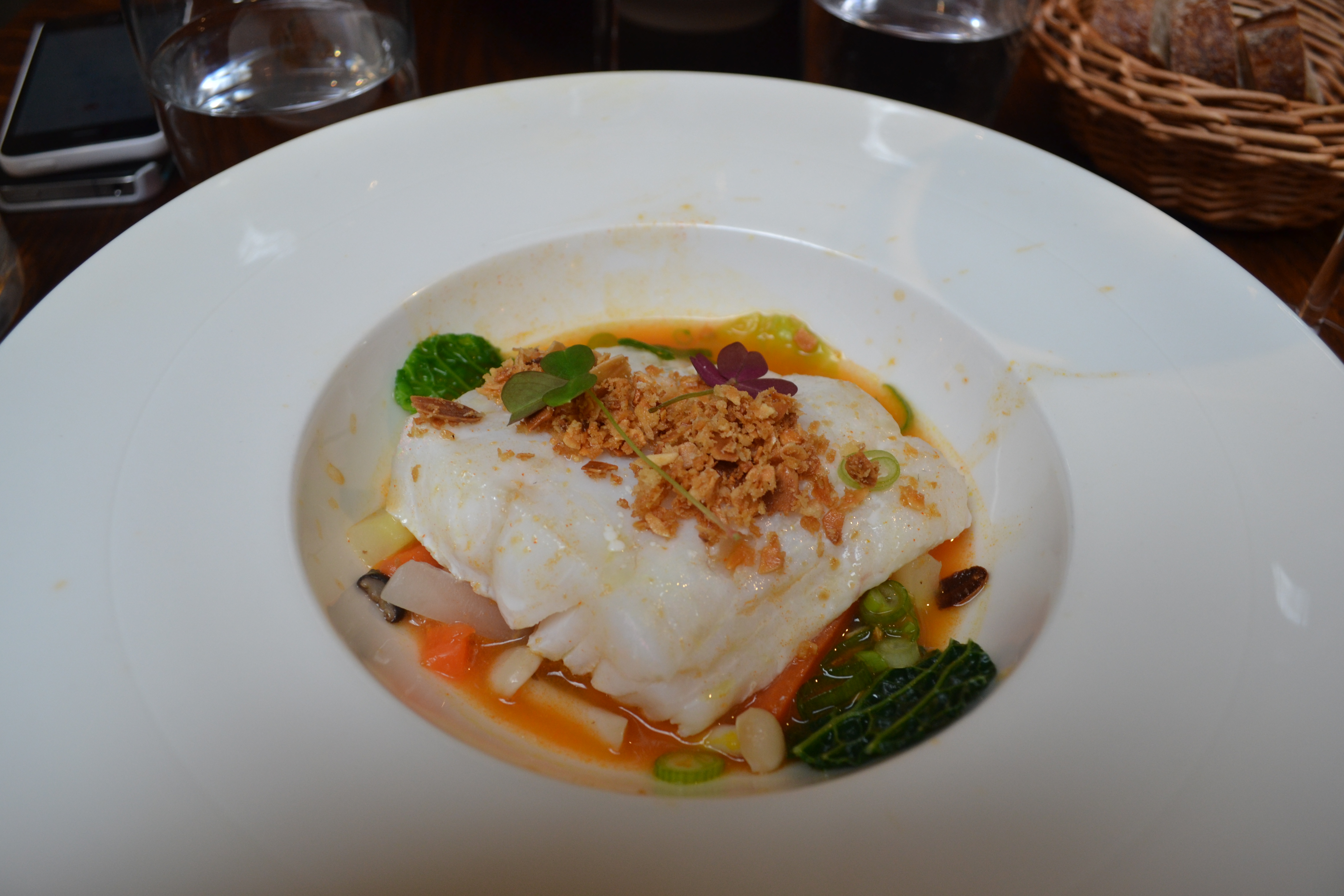 Côté cave, on ne compte pas moins d’une centaine de références, avec une vraie recherche de petits producteurs biodynamiques. Le sommelier Damien Fontaine ne cache pas une tendresse particulière pour les vins du Sud comme le Pic-Saint-Loup Mas Foulaquier « Les Calades » 2011 ou le Côtes-du-Roussillon « de battre mon cœur s’est arrêté » 2013.