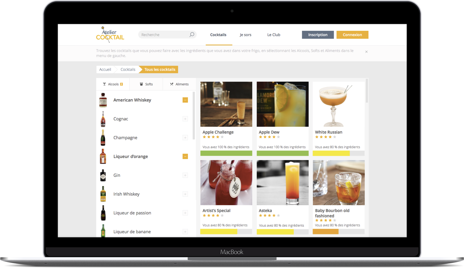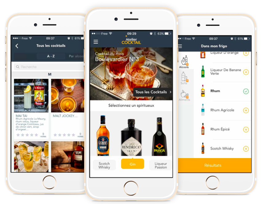 Toutes les fonctionnalités sont accessibles sur le site http://www.atelier-cocktail.com/ ainsi qu’en direct de l’application mobile 100% gratuite pour iphone et android.