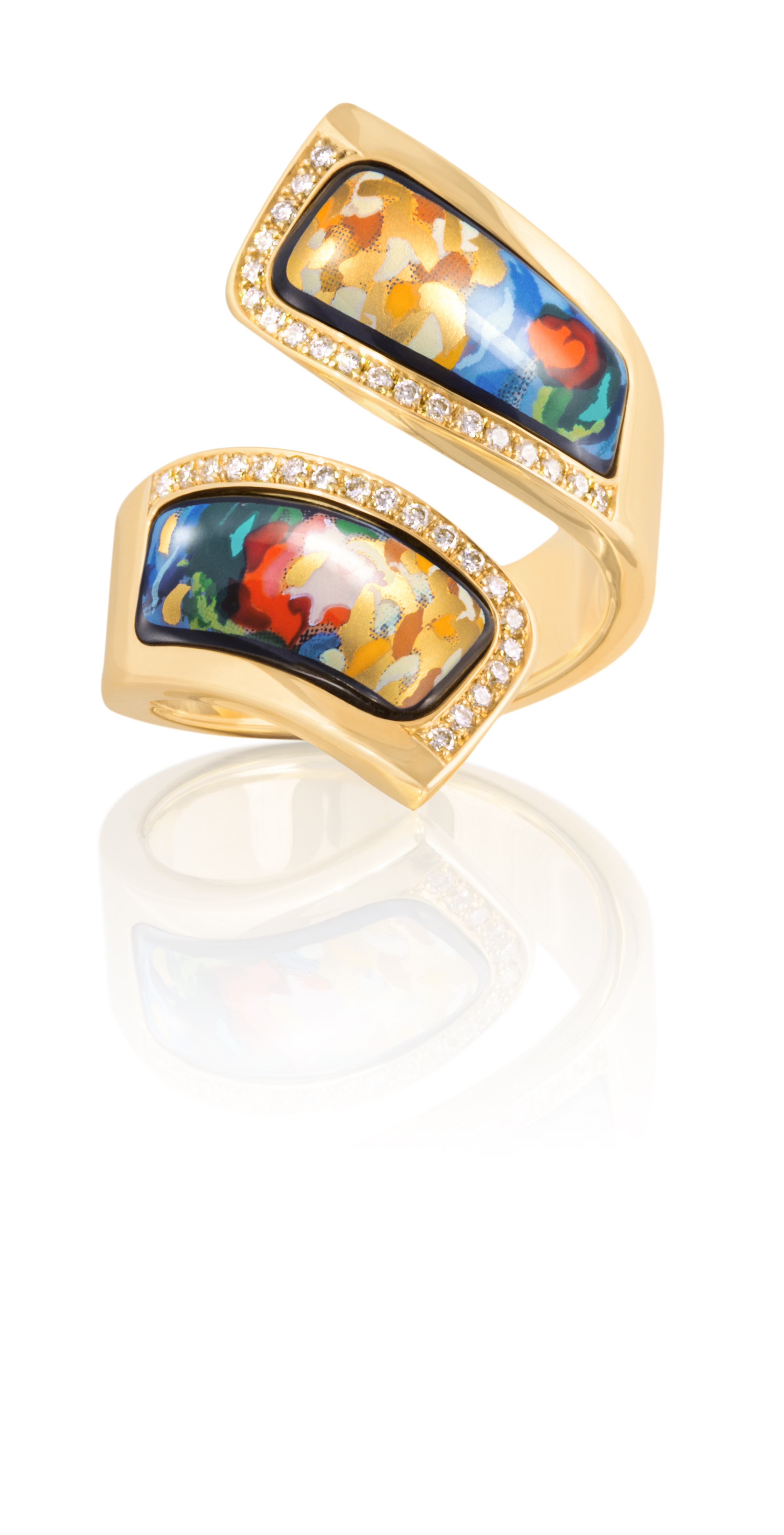 Et puis, un coup de cœur. Une bague, or 18 carats, émail et brillants. Elle vient de Vienne, capitale des musiciens ; la patrie de Mozart et de tant d’autres. Parfum d’ailleurs, de couleurs et de métal fondu, travaillé à la main pendant des heures.