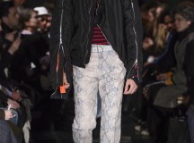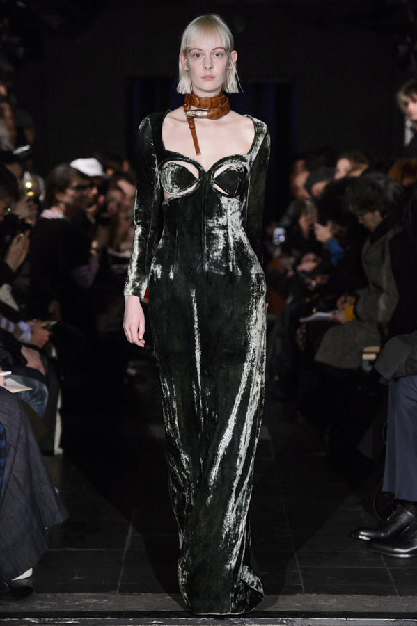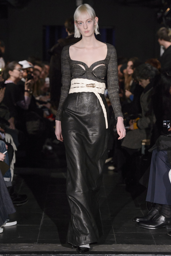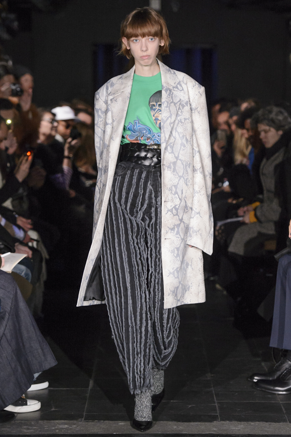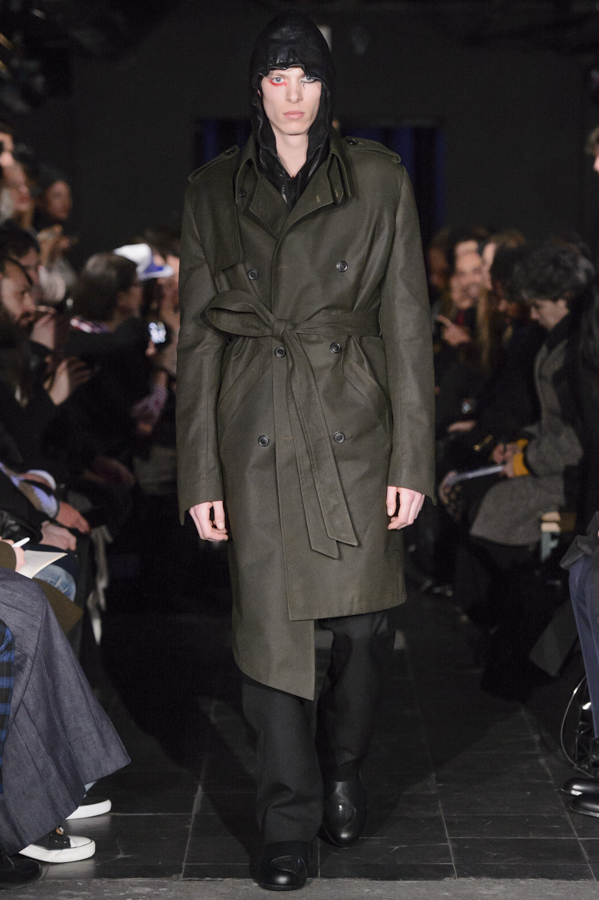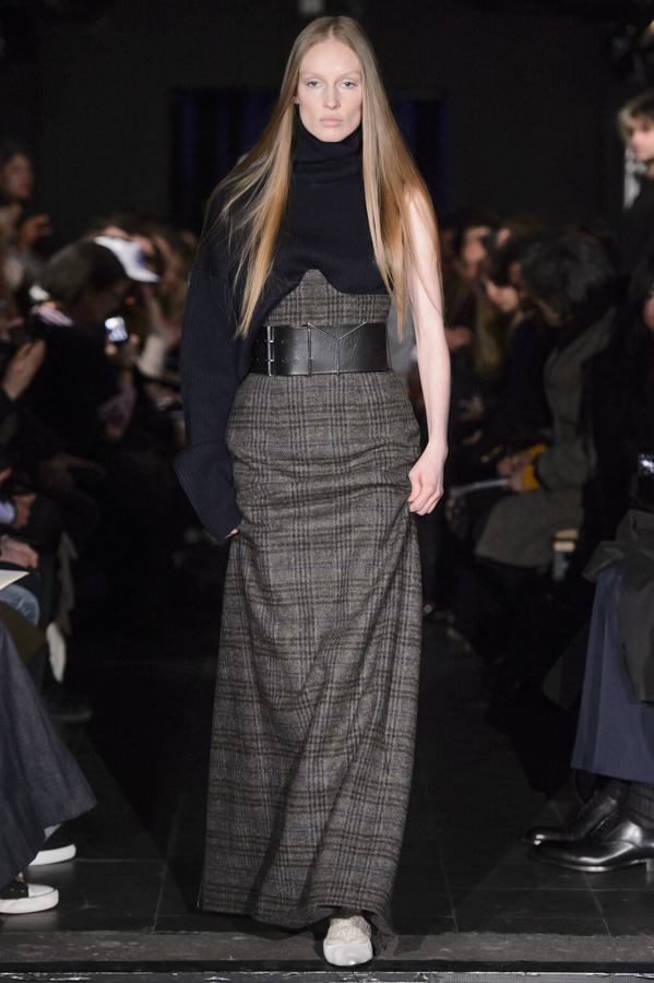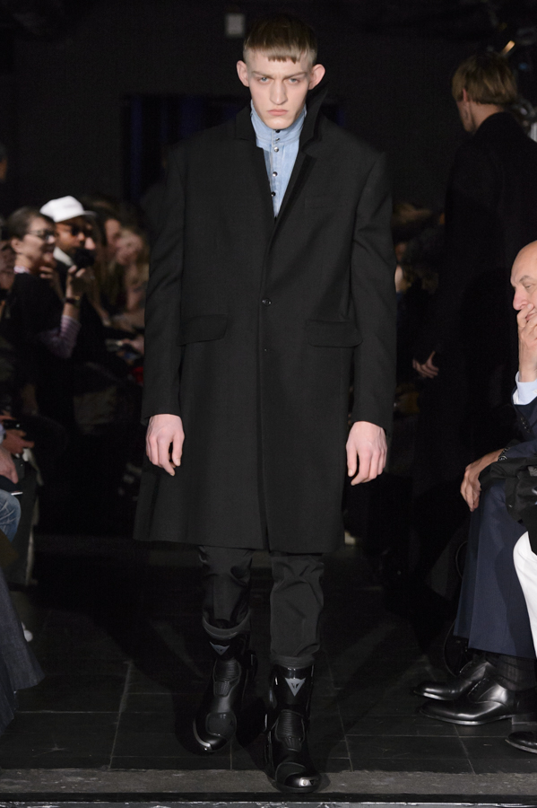Glenn Martens, aux commandes d’Y/Project depuis 2013 a su imposer pour cette collection sa vision, mélange de plusieurs influences : un peu néo-gothique, grunge, moyenâgeux, sportswear et punk. Le show sur fond de musique métal mettait en scène des mannequins aux looks affirmés, féroces. Les pièces phares de la collection sont les jeans, qui se font extra-longs, slim ou cowboy. Les vestes et manteaux sont quant à eux soit en cuir façon grand perfecto, soit droits dans une forme beaucoup plus classique, soit façon bomber avec de longs zips sur les manches.