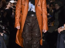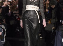 Pour la gamme de couleurs, on retrouve du gris, du noir, du kaki, du rouge, du bleu marine, du blanc, du camel et des motifs pied-de-poule et reptile. Au niveau des matières, Glenn Martens a principalement choisi d’utiliser du velours, de la maille, du cuir, du tulle et du coton.