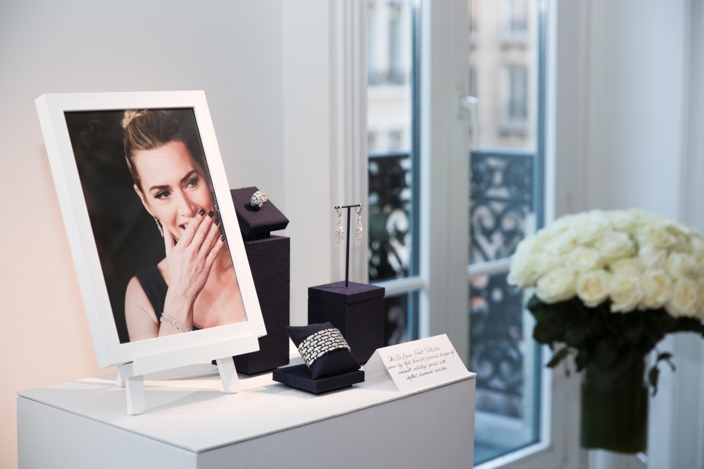 Le bracelet Glacier 3 lignes de la collection De Beers Phenomena porté par Kate Winslet.
