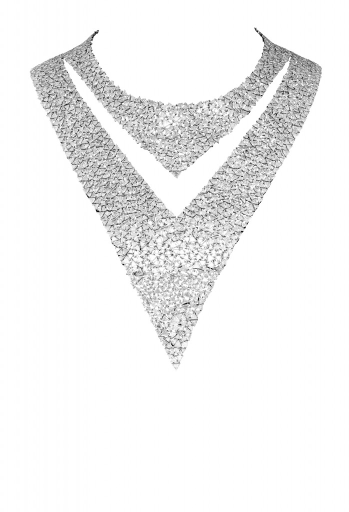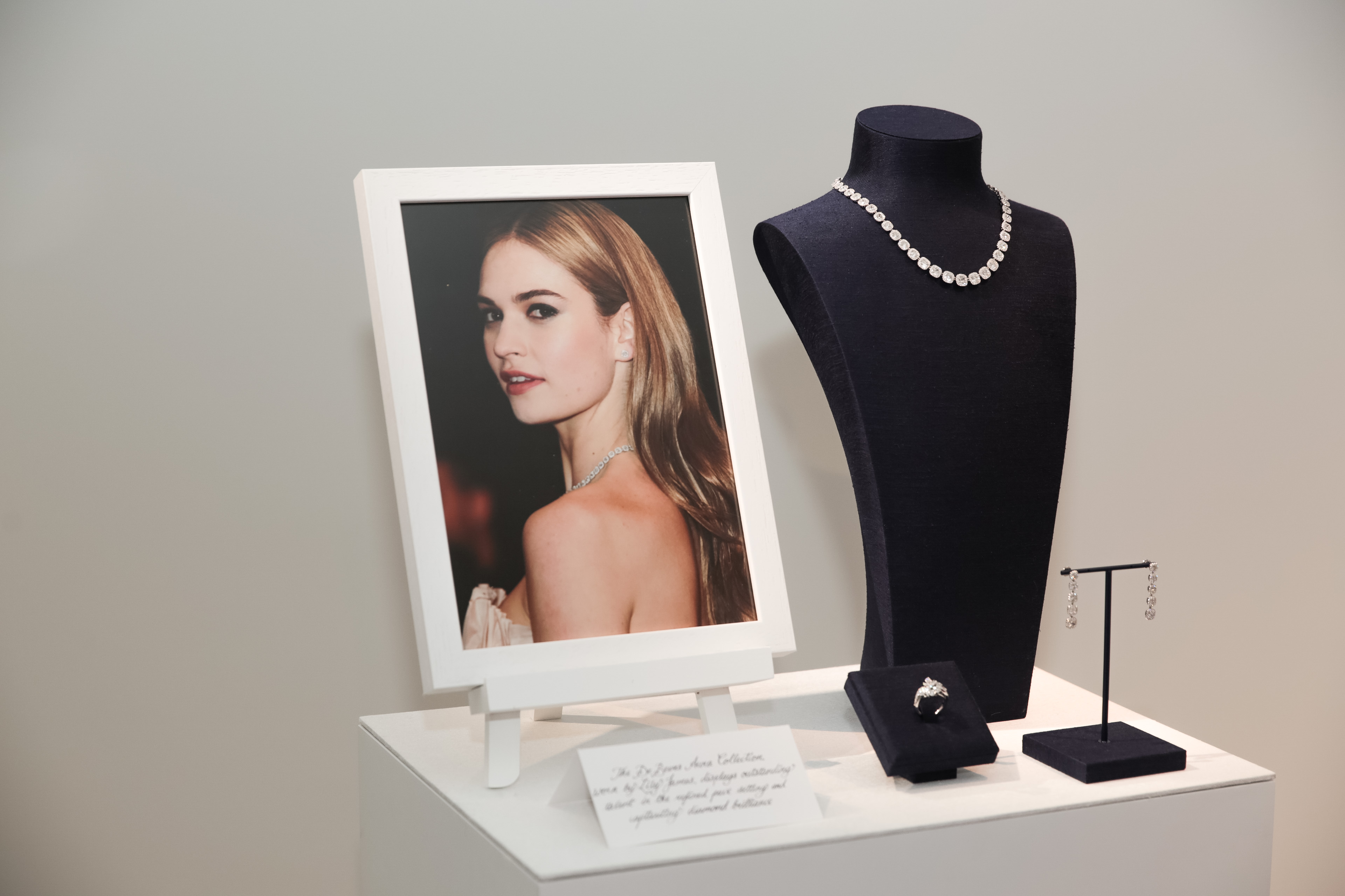 Le collier Haute Joaillerie de la collection De Beers Aura porté par Lily James.