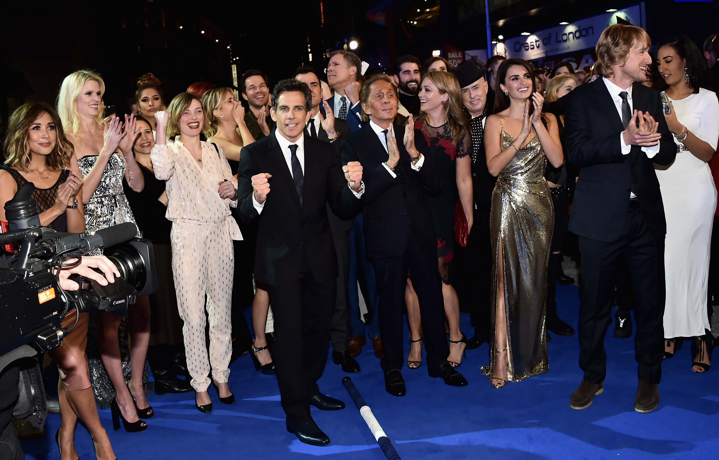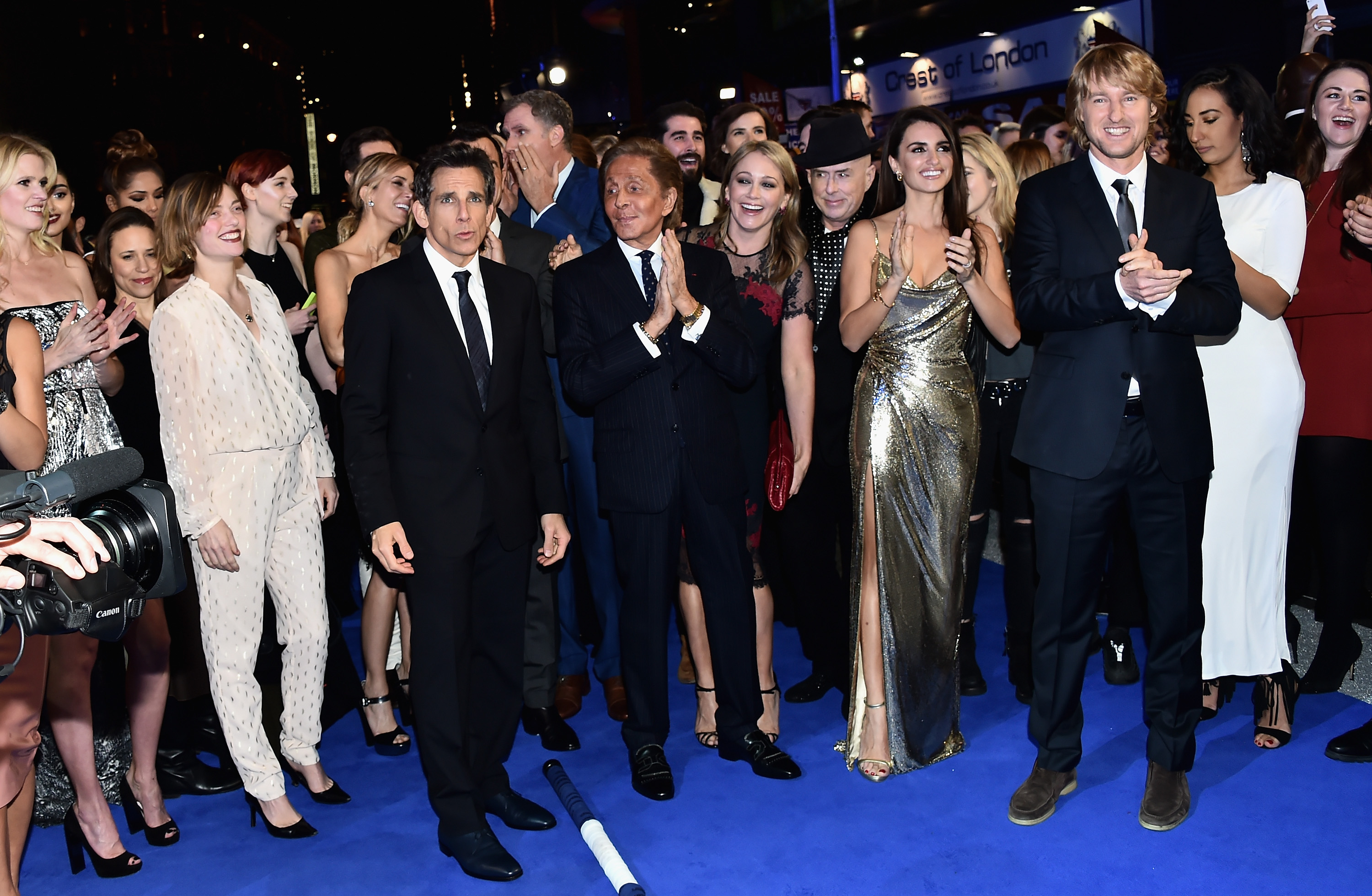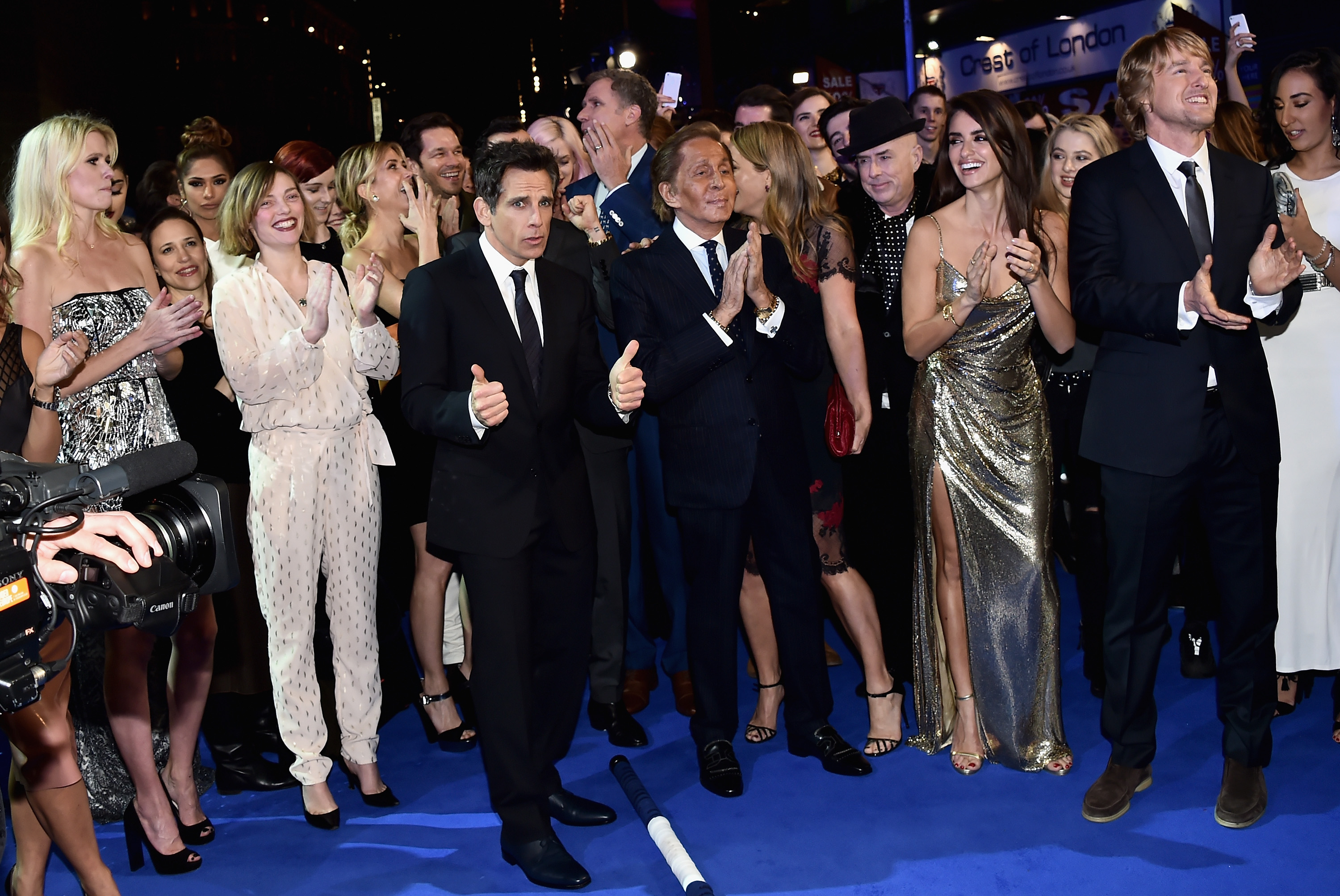 Sur le tapis : Ben Stiller, Owen Wilson, Penelope Cruz, Will Ferrell, Kristen Wiig, Justin Theroux, Christine Taylor, Natalie Dormer, Adam Driver, Oscar Isaac, Mario Testino, Lara Stone, Valentino, Myleene Klass, Millie Mackintosh, Suzy Menkes, Matt Johnson, Holly Johnson, Gizzi Erskine, Portia Freeman, Neelam Gill