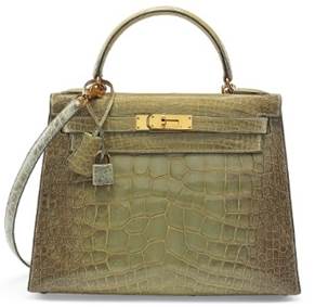Parmi les pièces extrêmement rares offertes à Paris, retenons un sac KellyNatura28Vert Céladon proposé pour une estimation de €15.000 à 20.000. Dans les années 1920, il était alors impossible de dépigmenter certaines peaux exotiques, seulement de les colorer, rendant la réalisation de couleurs claires difficile, voire impossible. La pièce finie laissait ainsi apparaître, en partie, la couleur de la peau d’origine. Vers 2000, Hermès revisite cette fois-ci volontairement ce procédé en gardant subtilement cet effet originel. Le résultat est une éblouissante explosion de transparence aniline, amplifiée par le vert céladon. Le nombre de sacs réalisés avec cette technique est inconnu mais beaucoup pensent qu’il y en a moins de dix, faisant de ce sac l’un des Kelly les plus rares au monde. Ce sac est considéré comme l’un des sacs à mains les plus désirés au monde et malgré toutes ces qualités, son estimation reste très raisonnable (€15.000-20.000) comparé au prix réalisé par un Birkin 35 de la même collection vendu la saison dernière à Paris pour €108.300.
