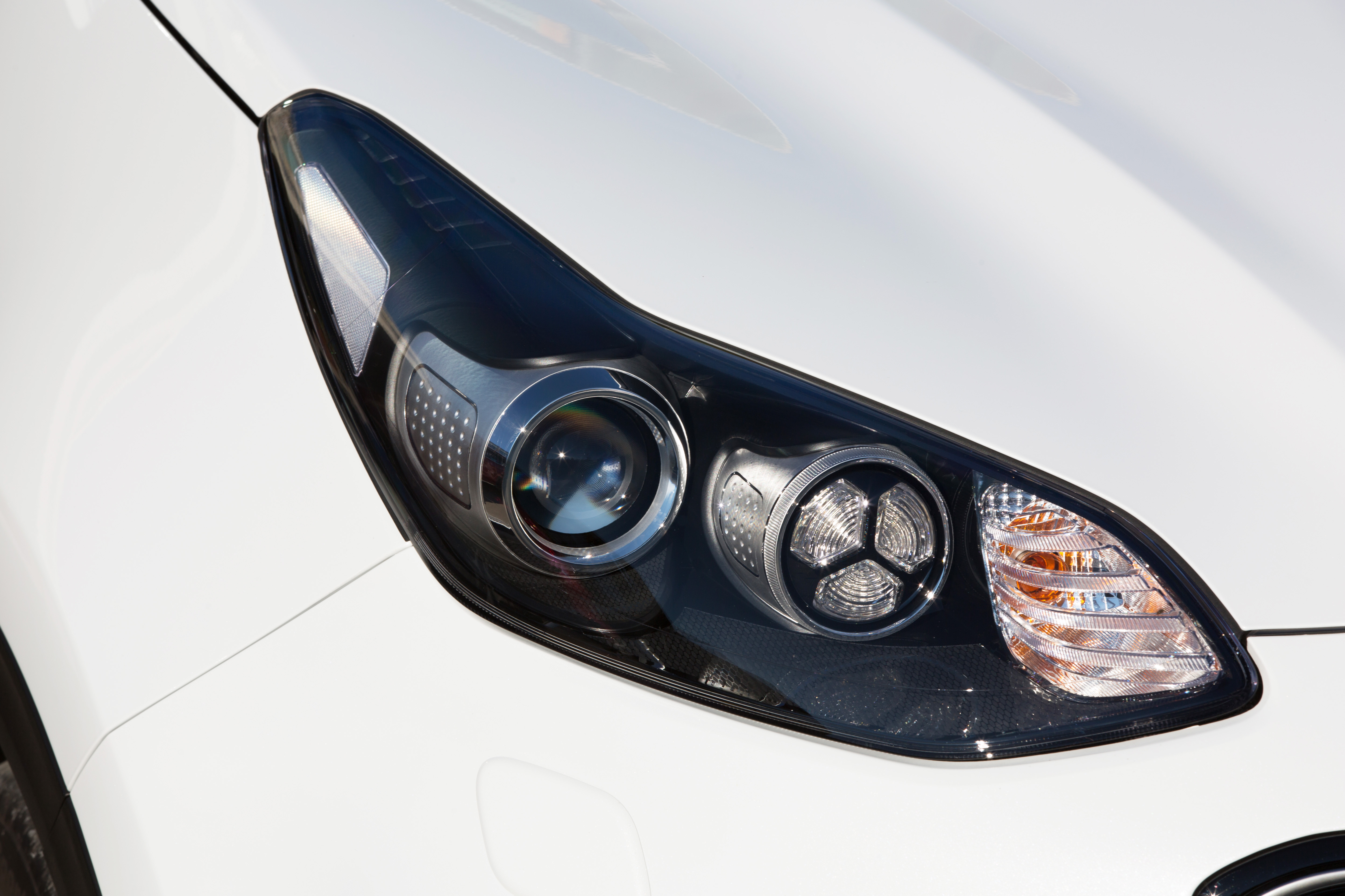 Les principales modifications apportées au design du véhicule concernent sa séduisante face avant. Elle se distingue du modèle précédent par le fait que la calandre « Tiger Nose/Nez de Tigre » emblématique de Kia et les projecteurs soient séparés. Plus large et plus basse, la calandre – surdimensionnée afin d’être adaptée à un refroidissement moteur accru – confère davantage de volume à la partie inférieure de la face avant. Il en résulte une allure plus affirmée et une assise plus robuste, bien que le nouveau modèle conserve la même largeur (1 855 mm) que son prédécesseur.
