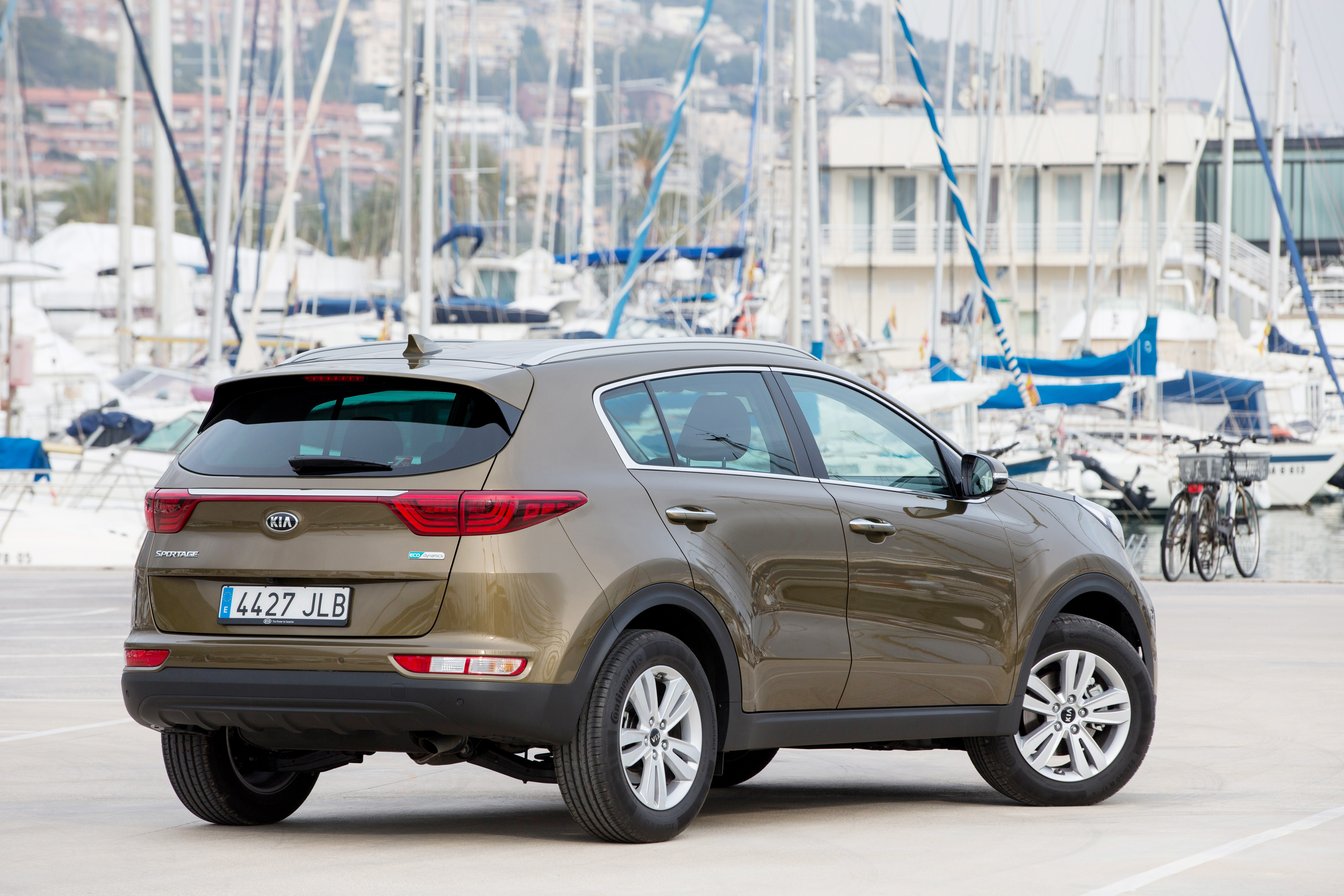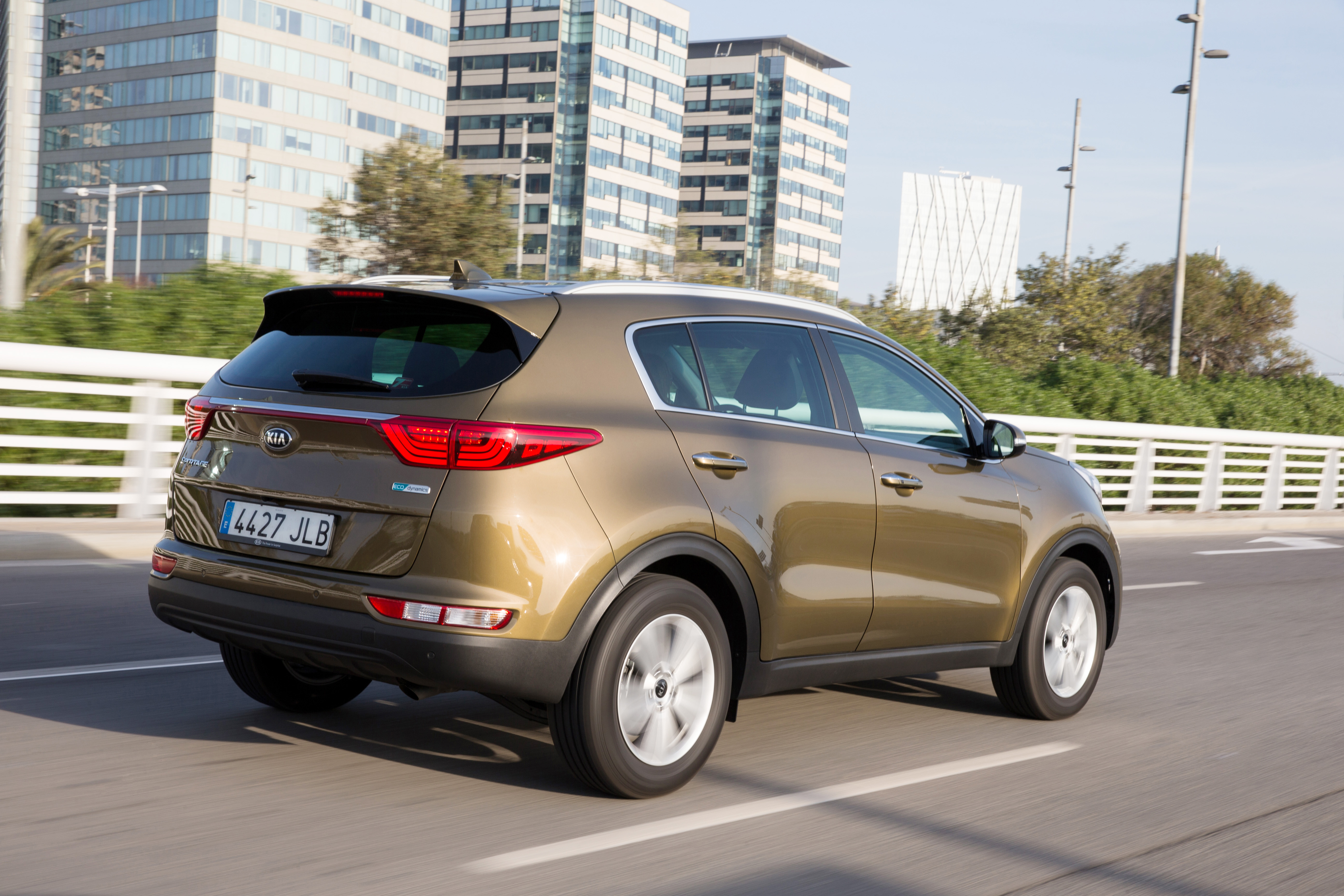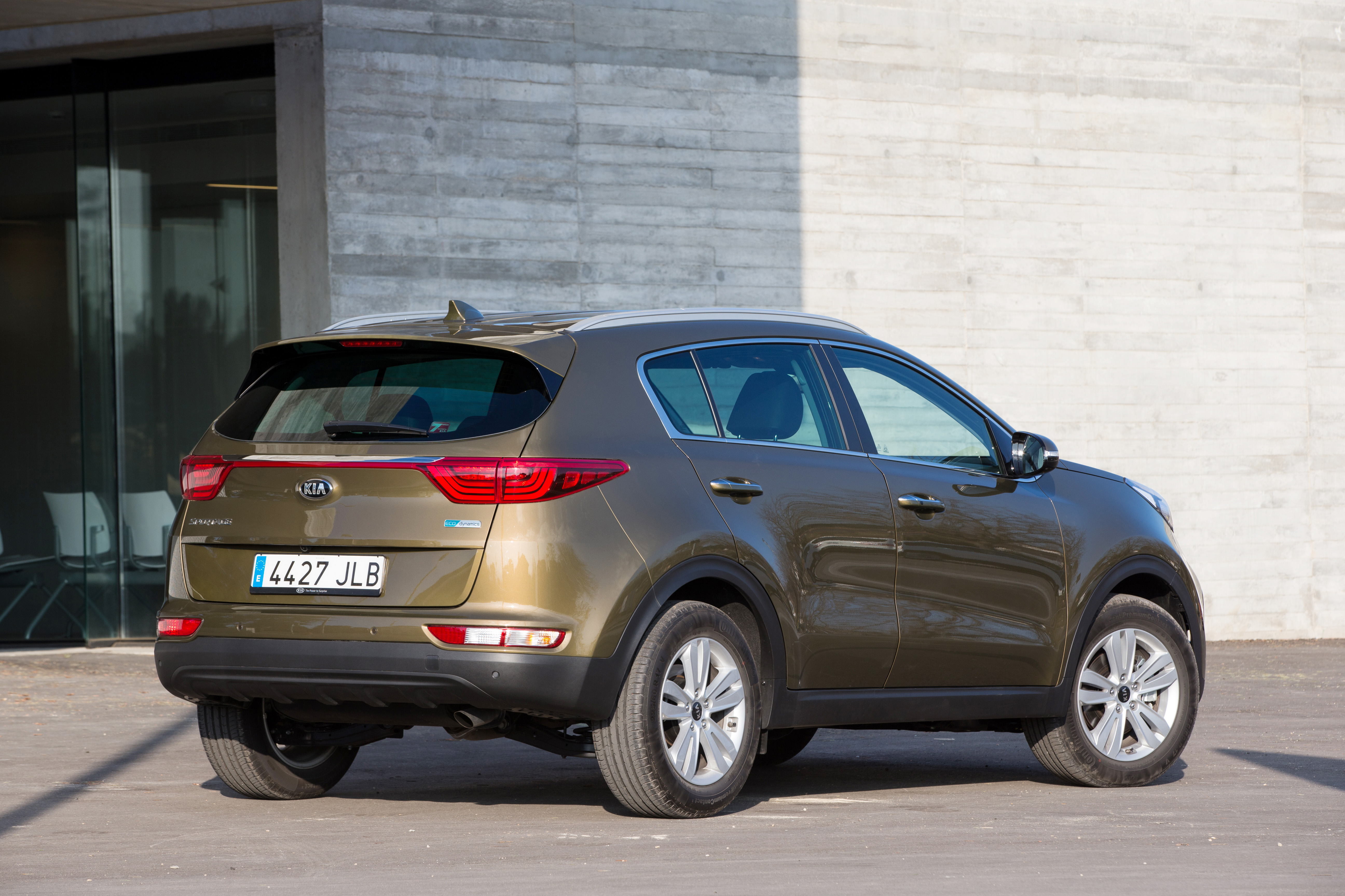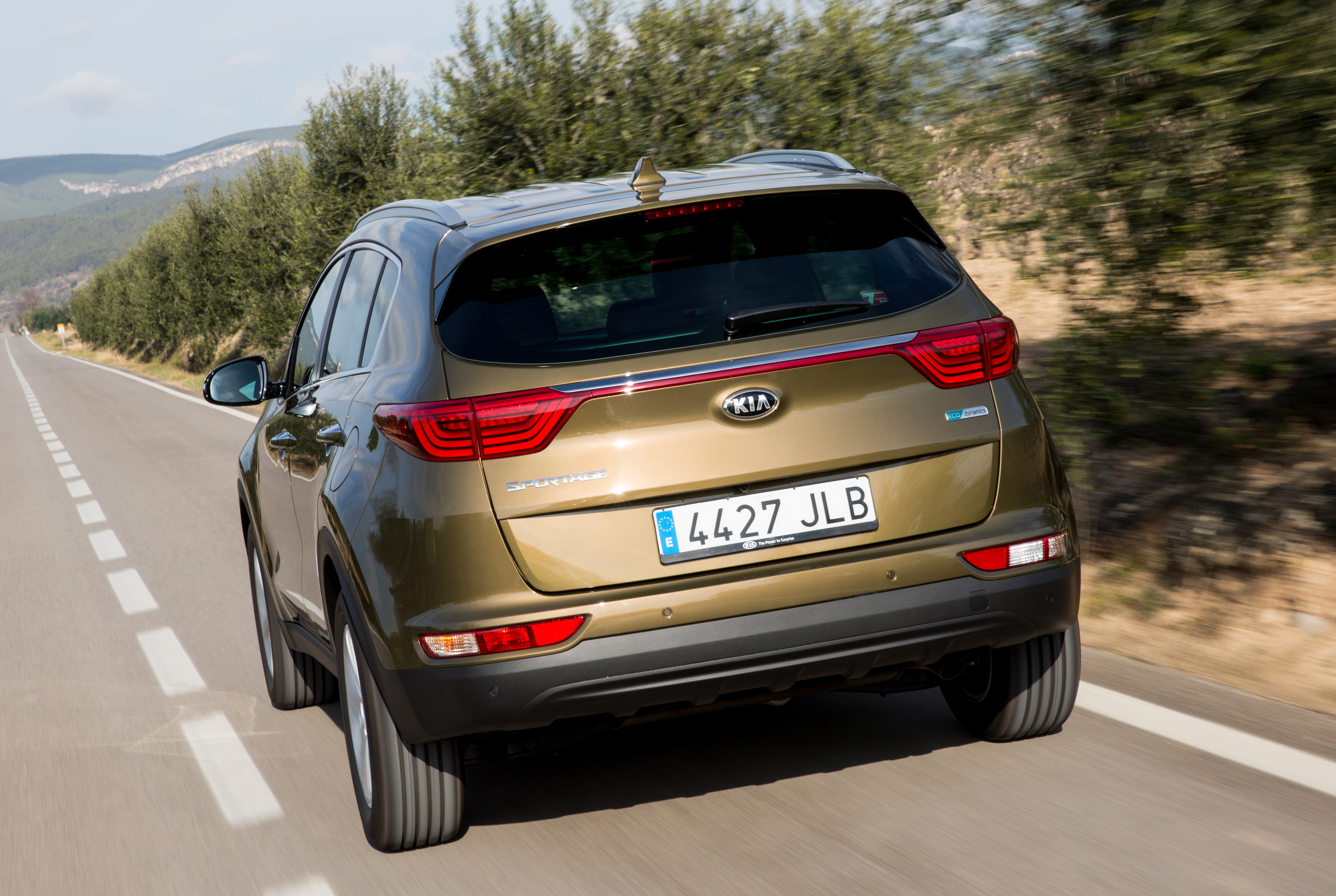 A l’arrière, le nouveau Kia Sportage arbore des formes plus horizontales auxquelles s’ajoutent des panneaux de carrosserie lisses au niveau du hayon, soulignant la largeur du crossover. Inspirés du concept car Kia Provo (2013), les blocs-feux arrière effilés, suivant une ligne parallèle horizontale, sont reliés par une moulure qui s’étire sur toute la largeur de la poupe. Les clignotants et les feux de recul sont séparés et implantés plus bas, afin de souligner l’impact visuel de la partie inférieure du véhicule.