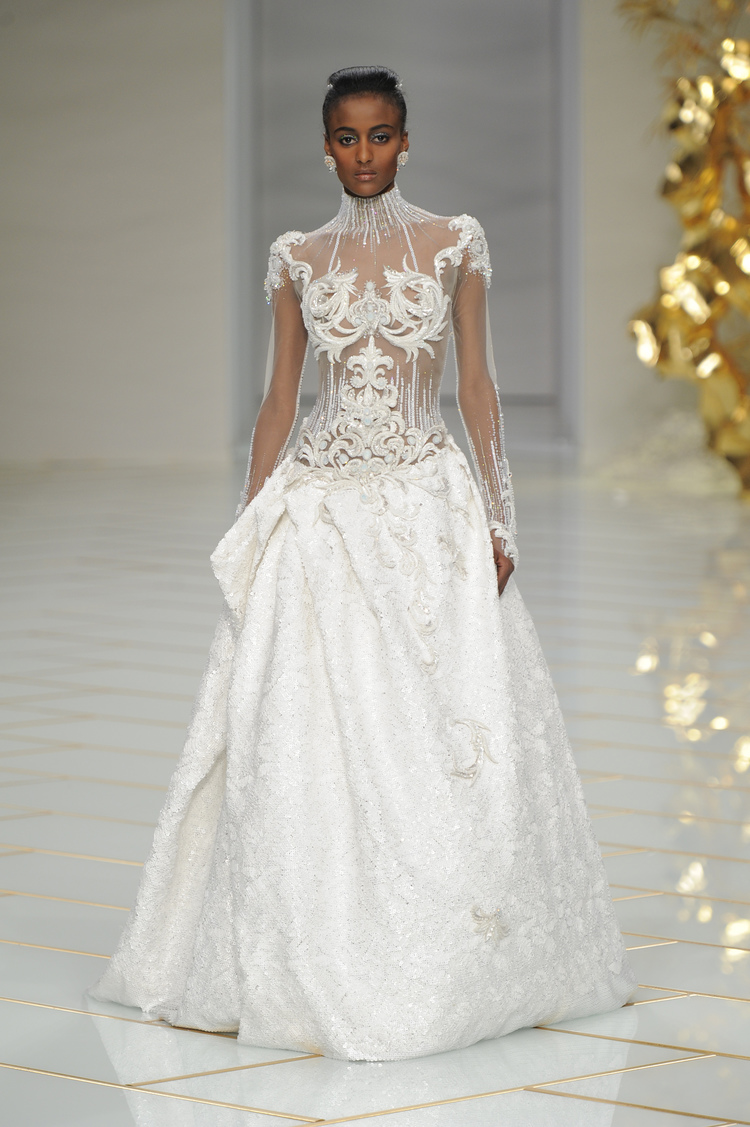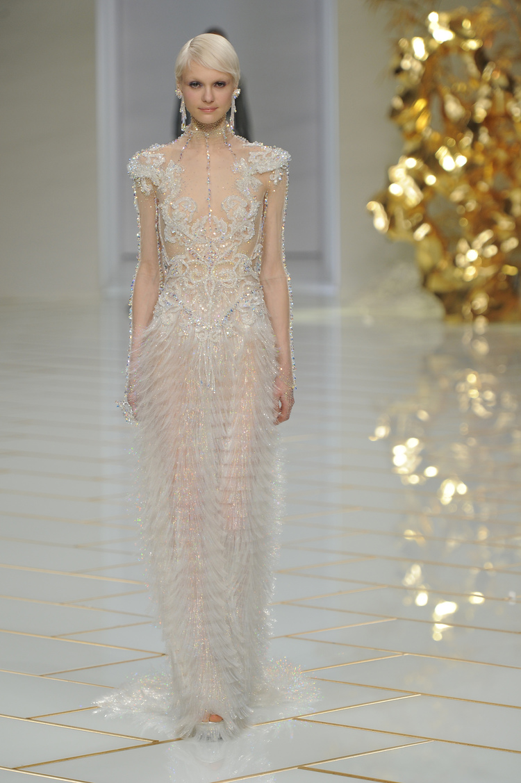 La robe de mariée finale se pare d’un collier exceptionnel de Haute Joaillerie réalisé par la Maison Chopard.