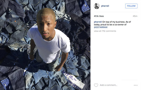 Pharrell Williams prolonge et étend son partenariat avec G-Star RAW en devenant copropriétaire de la célèbre marque de Jeans.