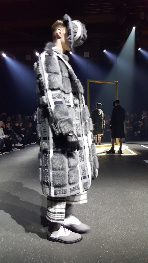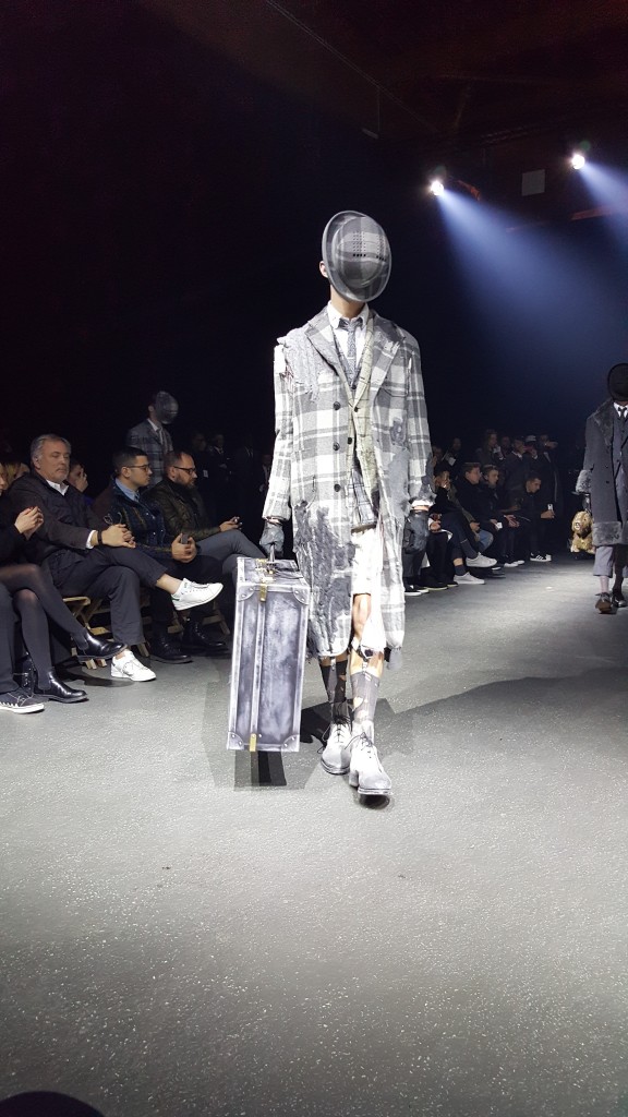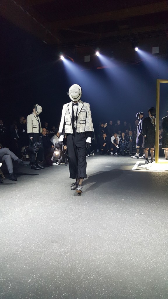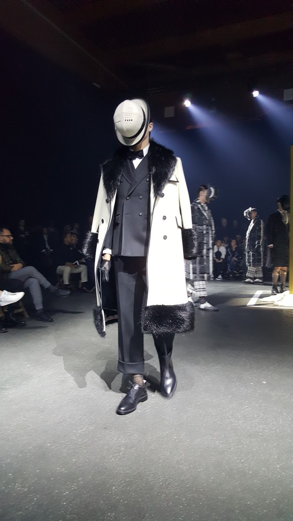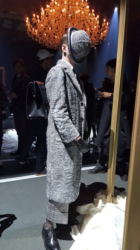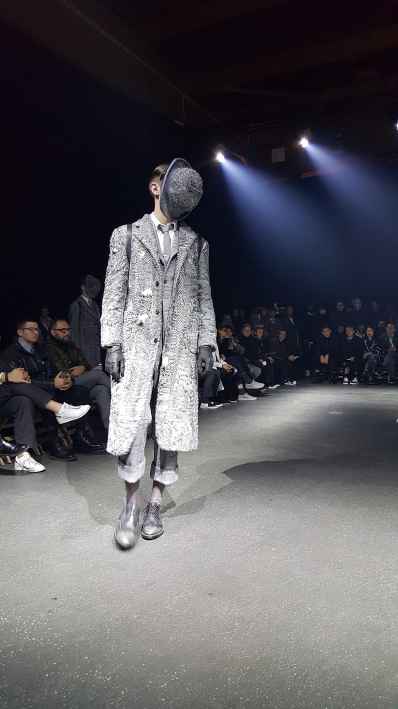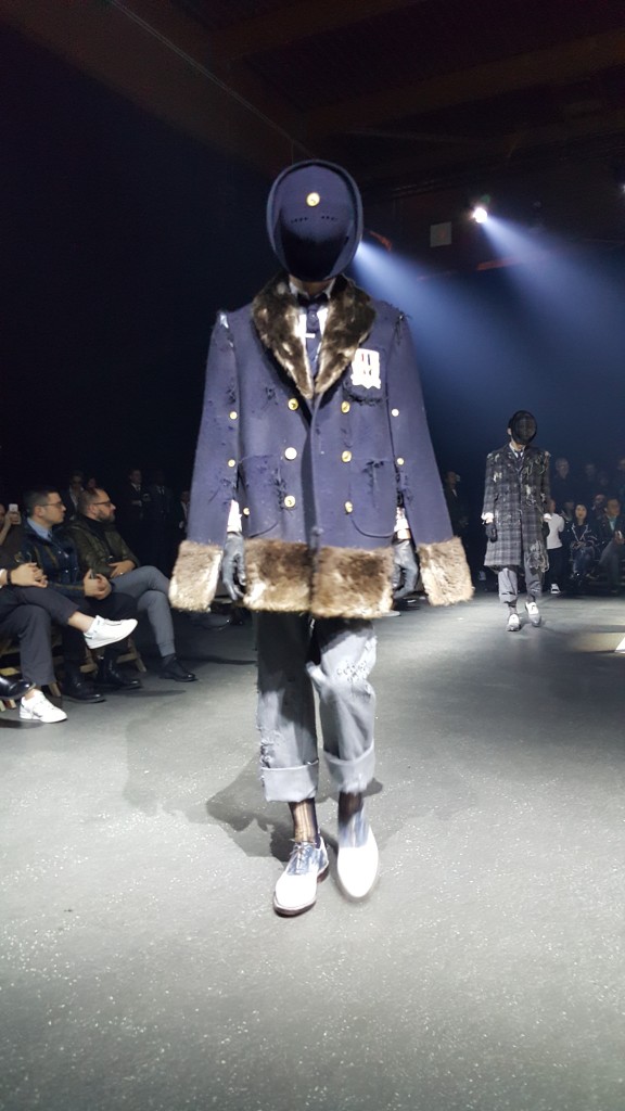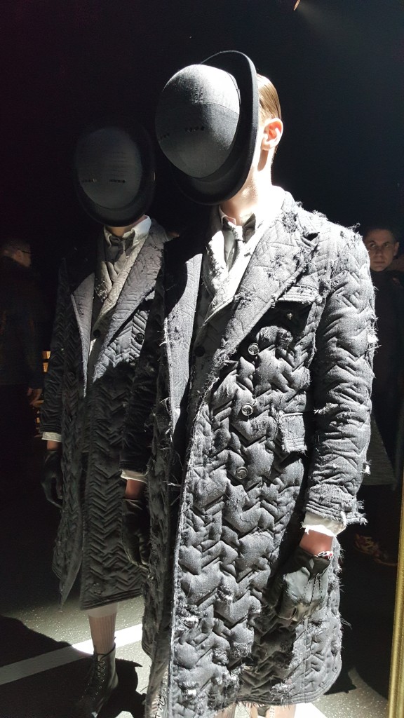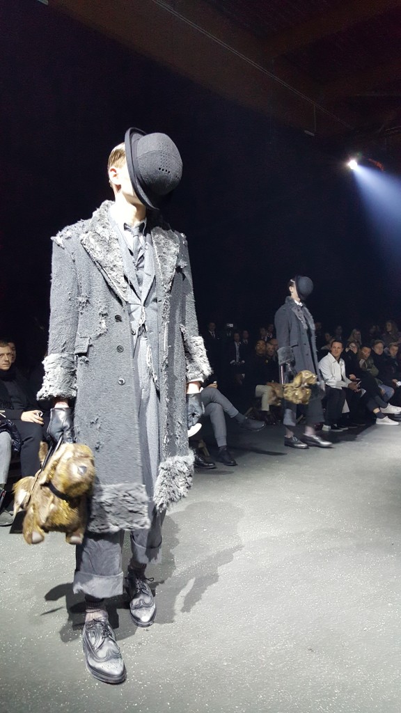 Pour cette saison automne hiver 2016, Thom Browne nous plonge une nouvelle fois dans un univers fantastique et onirique. Il explore l’usure du temps. Tel un vestige du passé des personnages élégants portant des vêtements patinés ou abimés par le temps animent ce défilé comme un spectacle enchanté. Une collection aux details époustouflants où on se met à envier la patine et l’effet du temps sur les vêtements.