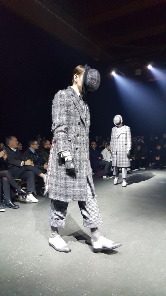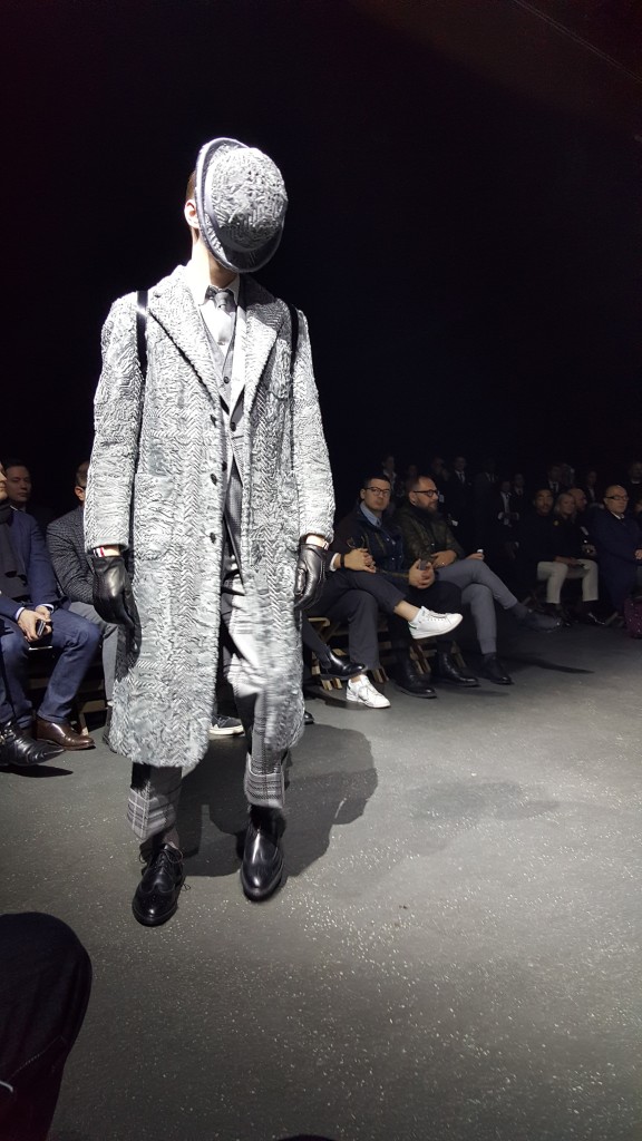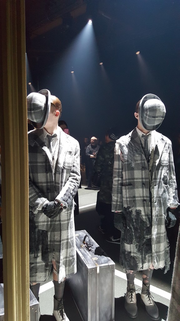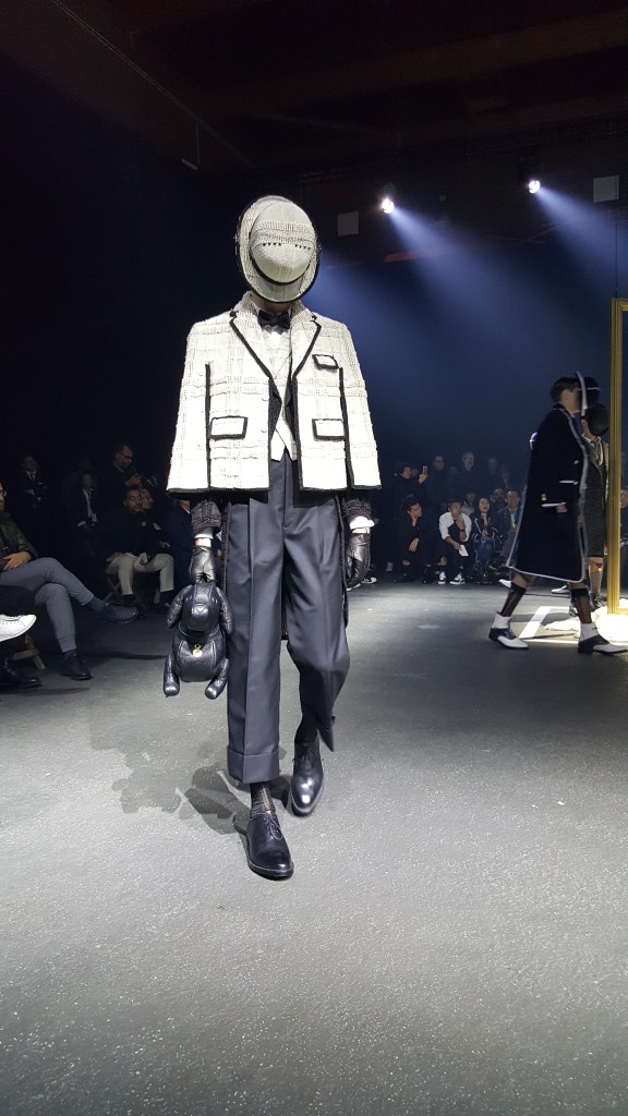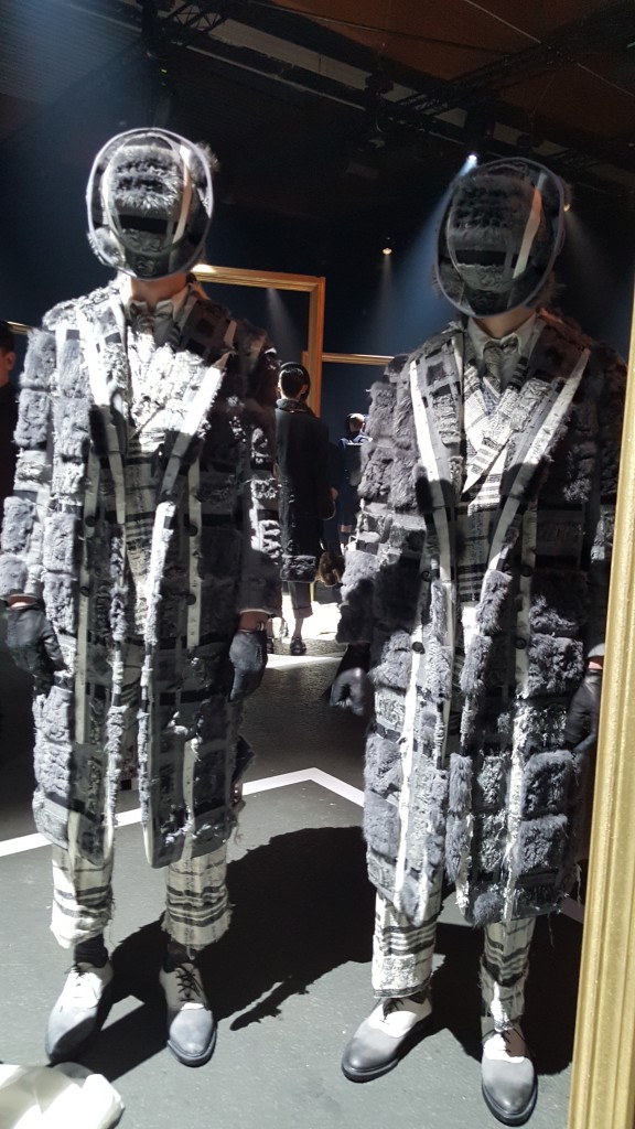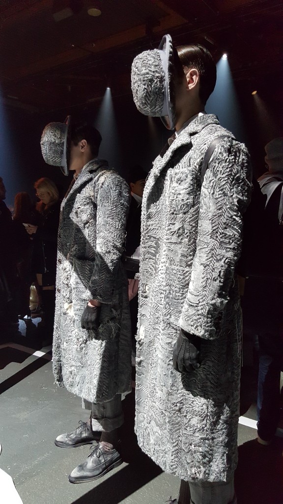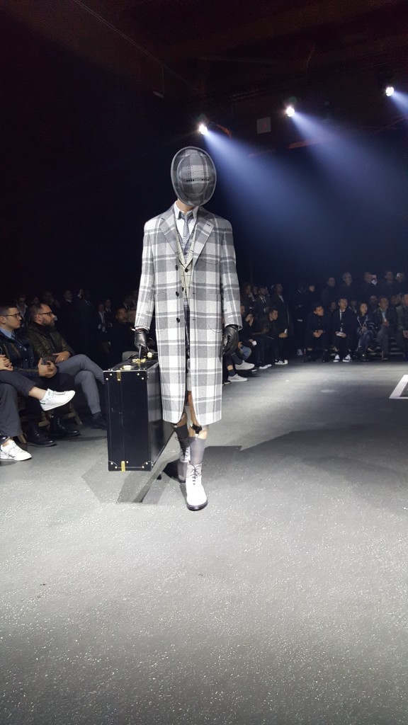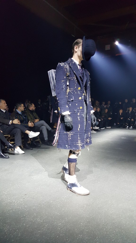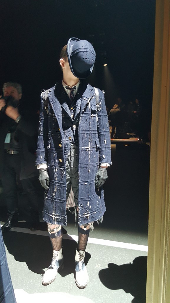 Pour cette saison automne hiver 2016, Thom Browne nous plonge une nouvelle fois dans un univers fantastique et onirique. Il explore l’usure du temps. Tel un vestige du passé des personnages élégants portant des vêtements patinés ou abimés par le temps animent ce défilé comme un spectacle enchanté. Une collection aux details époustouflants où on se met à envier la patine et l’effet du temps sur les vêtements.