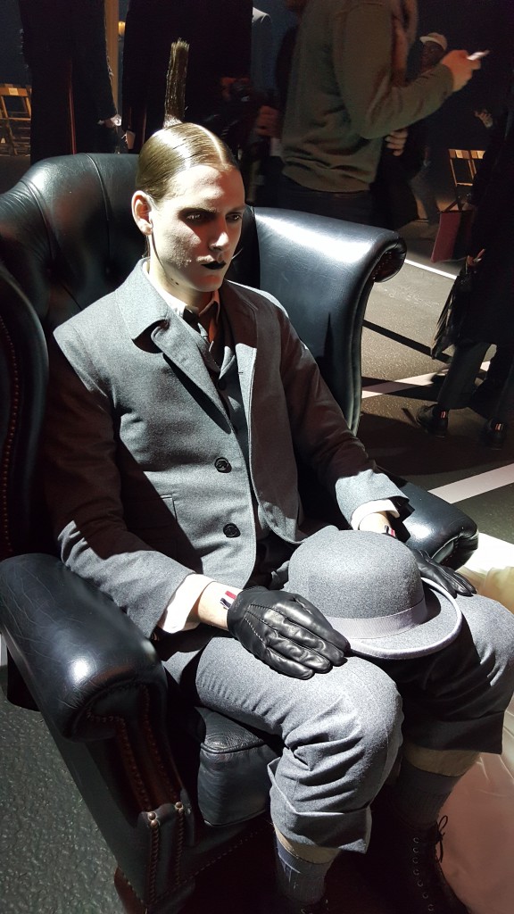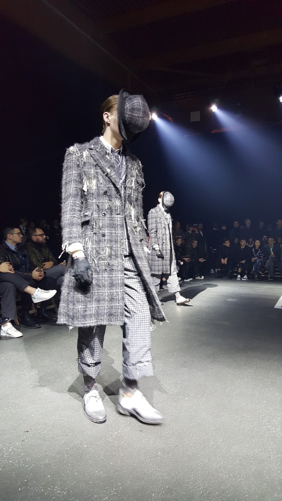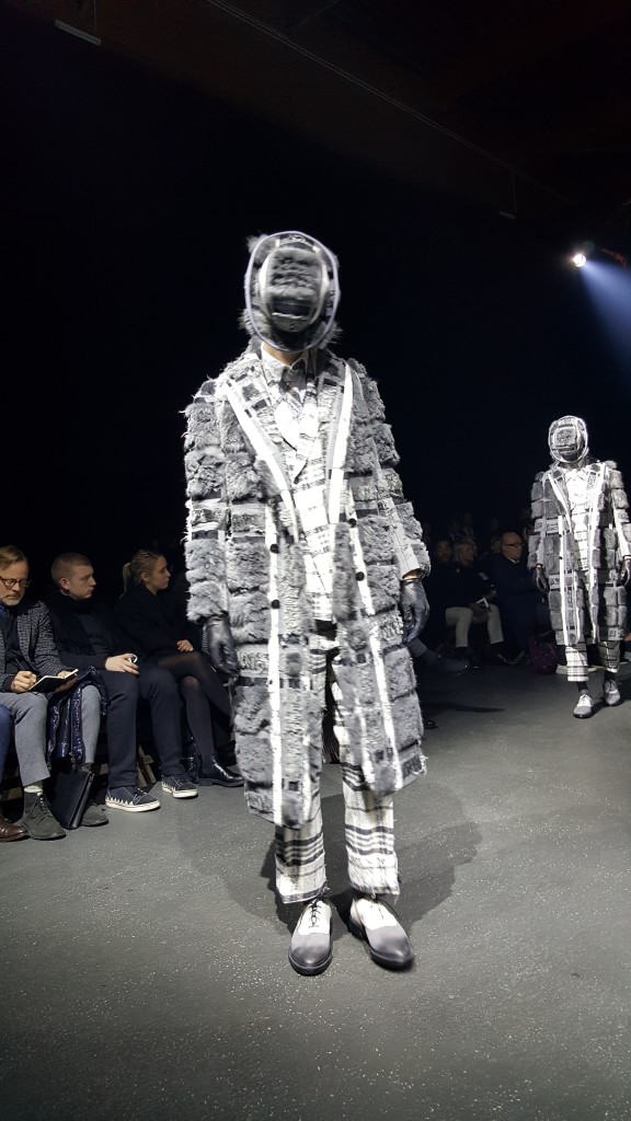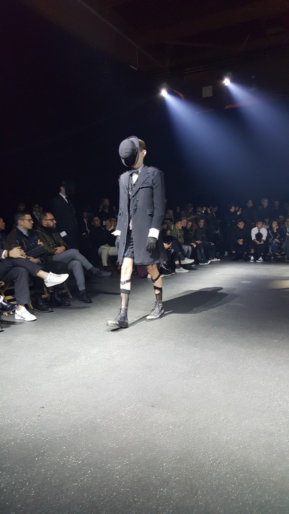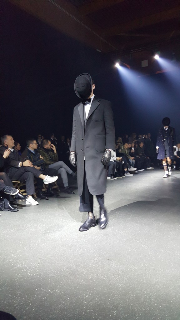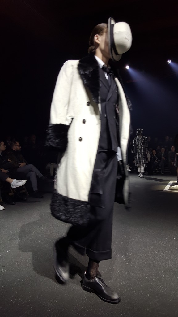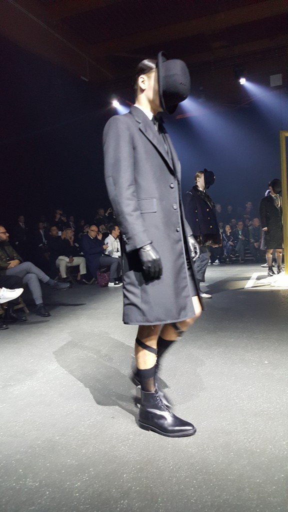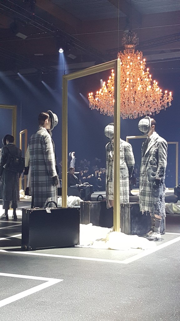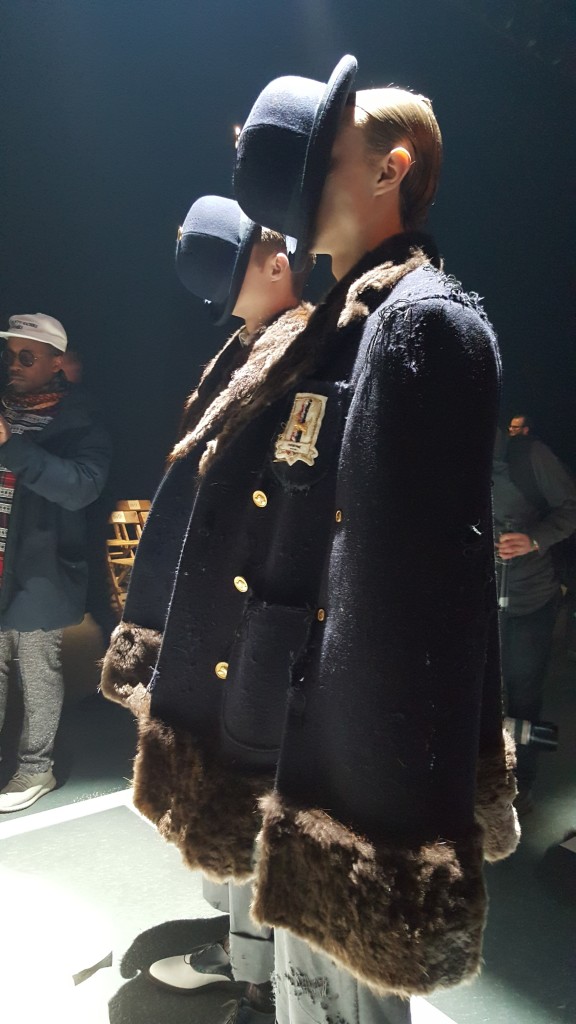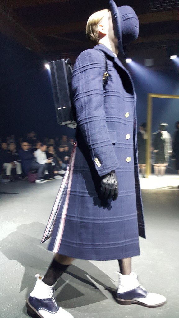 Pour cette saison automne hiver 2016, Thom Browne nous plonge une nouvelle fois dans un univers fantastique et onirique. Il explore l’usure du temps. Tel un vestige du passé des personnages élégants portant des vêtements patinés ou abimés par le temps animent ce défilé comme un spectacle enchanté. Une collection aux details époustouflants où on se met à envier la patine et l’effet du temps sur les vêtements.