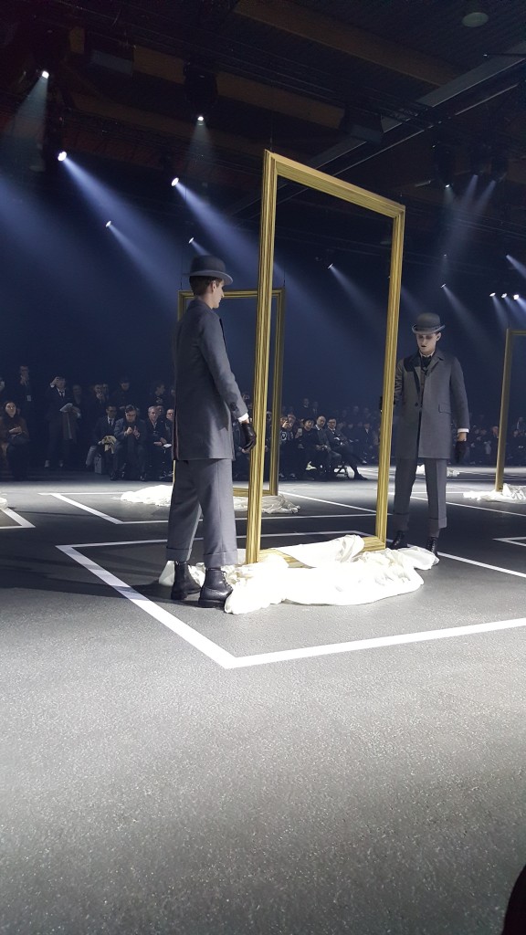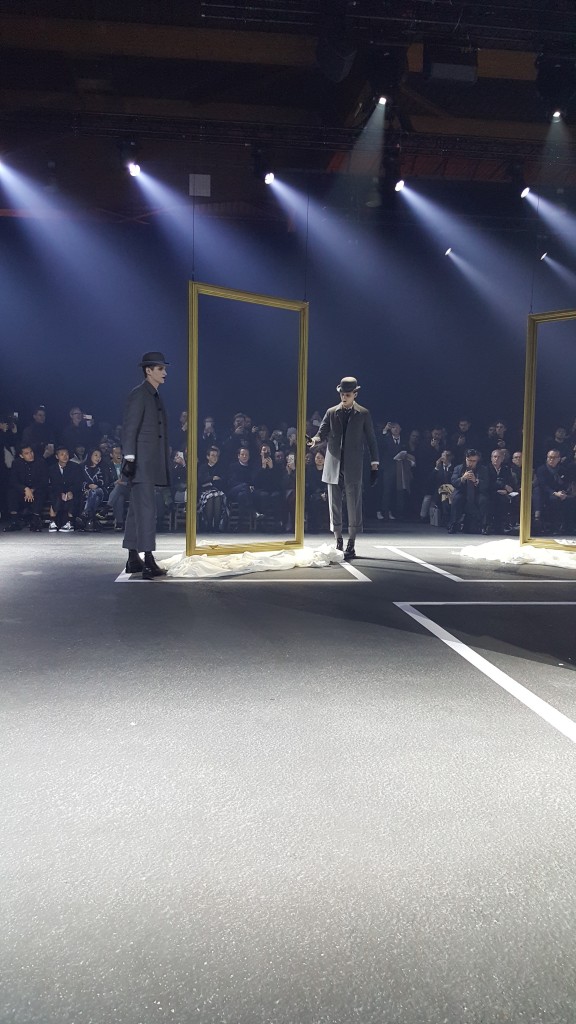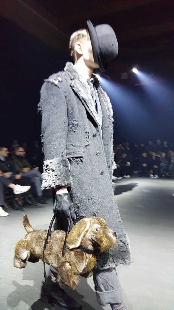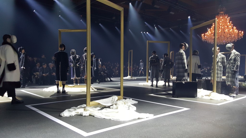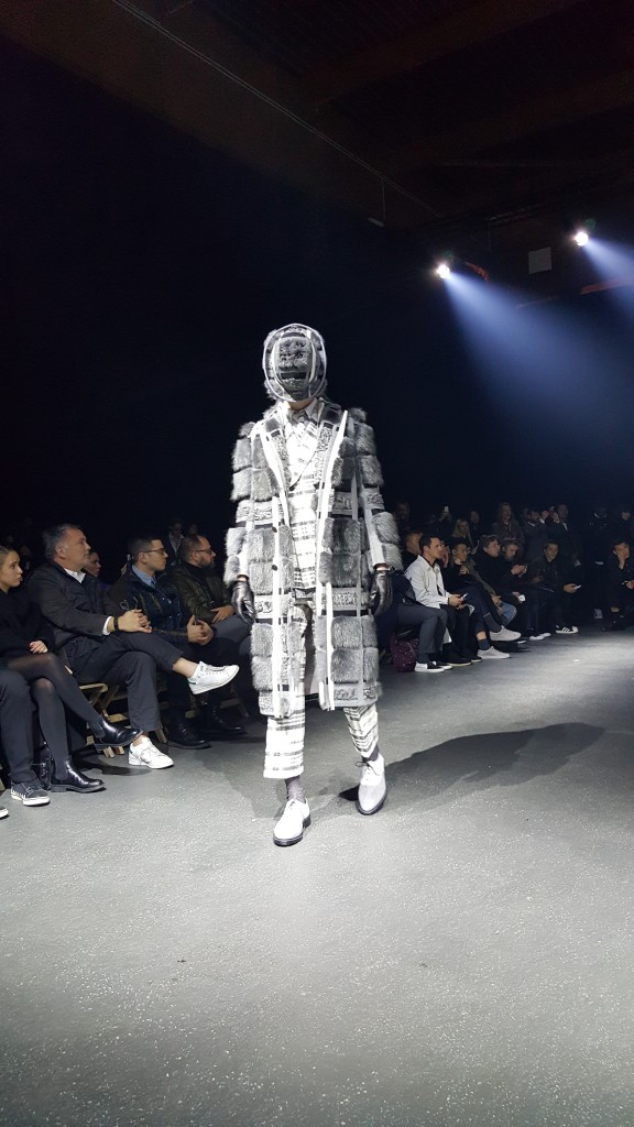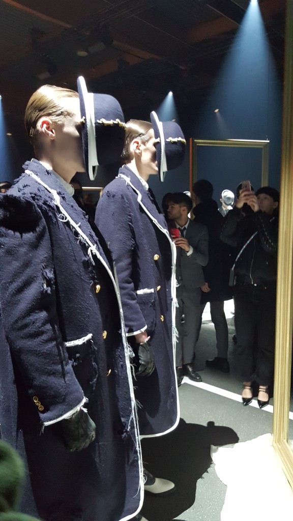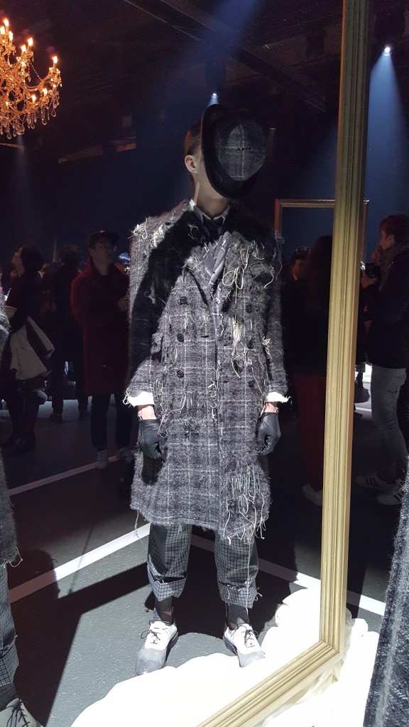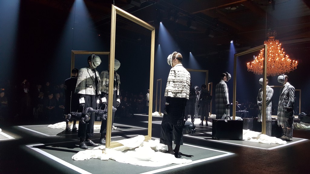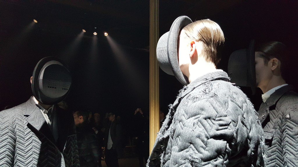 Pour cette saison automne hiver 2016, Thom Browne nous plonge une nouvelle fois dans un univers fantastique et onirique. Il explore l’usure du temps. Tel un vestige du passé des personnages élégants portant des vêtements patinés ou abimés par le temps animent ce défilé comme un spectacle enchanté. Une collection aux details époustouflants où on se met à envier la patine et l’effet du temps sur les vêtements.