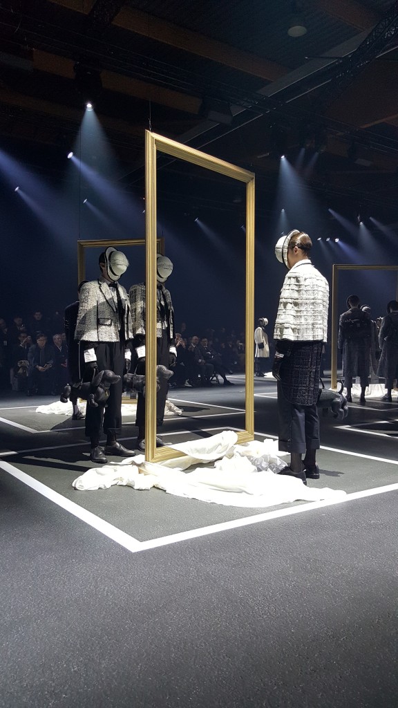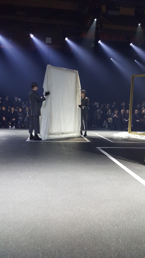Un défilé parfaitement orchestré, à la scénographie lunaire et merveilleuse qui nous fait oublier le temps qui passe. Sac chien, chapeau masque, les accessoires sont détournés avec brio. Comme les vêtements dont on ne peut qu’admirer le travail et les details.
