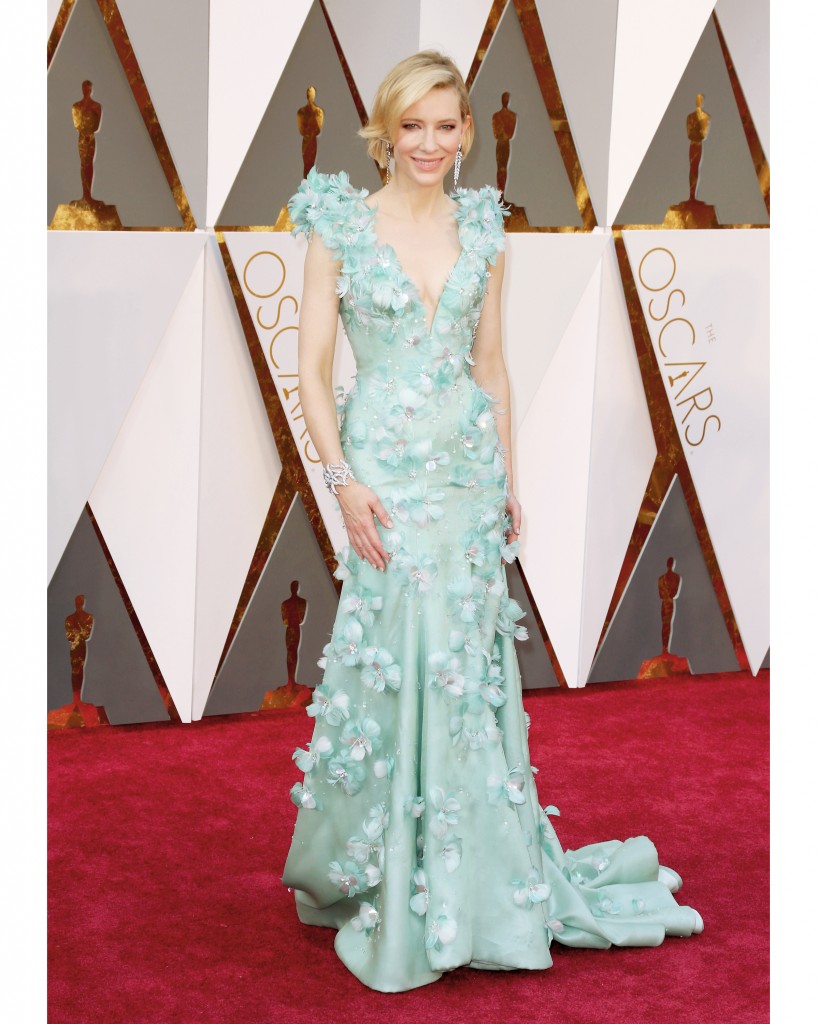 Cate BLANCHETT porte une parure Tiffany & Co de la collection Blue Book 2016 et une robe Armani Privé.