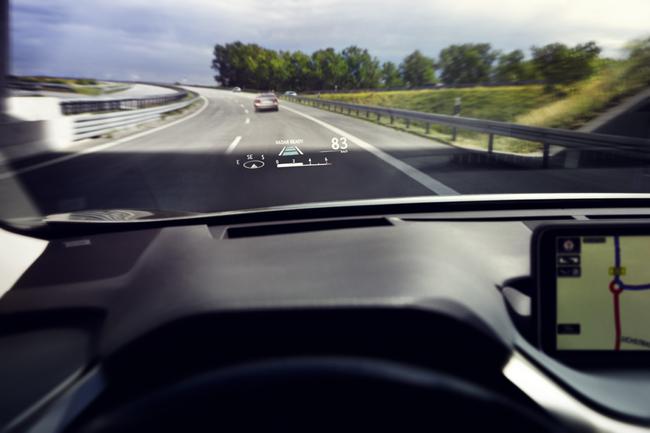 La nouvelle instrumentation intègre un système d’affichage tête haute (HUD: Head Up Display) qui projette les informations en grand format sur la base du pare-brise.