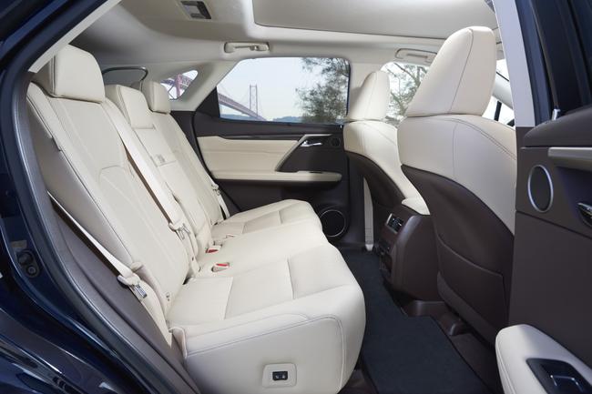 Dans l’habitacle optimisé pour cinq personnes, l’abaissement du plancher arrière permet au RX d’offrir aux passagers arrière une position d’assise comparable à celle de la Lexus LS, fleuron des berlines de la marque. Comme sur la génération précédente, la garde au toit reste très généreuse. Qui plus est, grâce à l’empattement rallongé, l’espace aux jambes s’agrandit à l’arrière sans pénaliser le volume du coffre, avec une banquette qui reste coulissante.