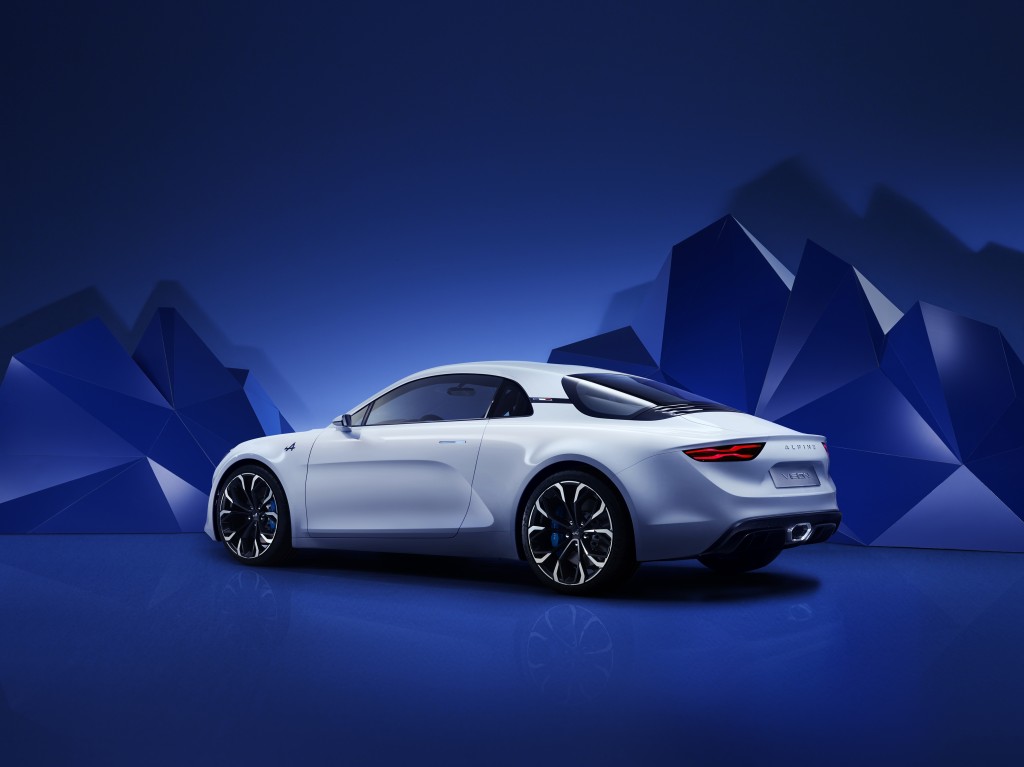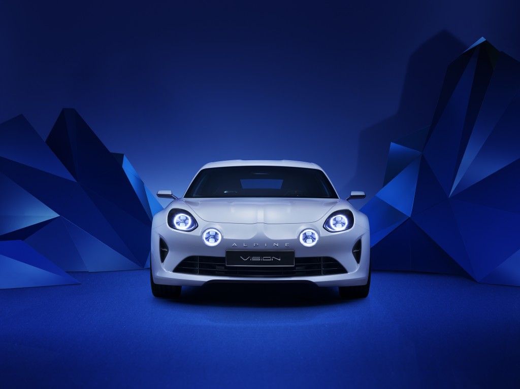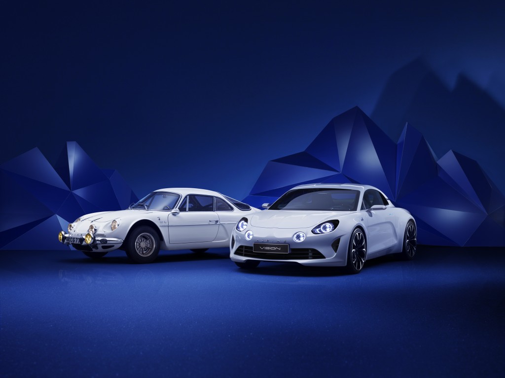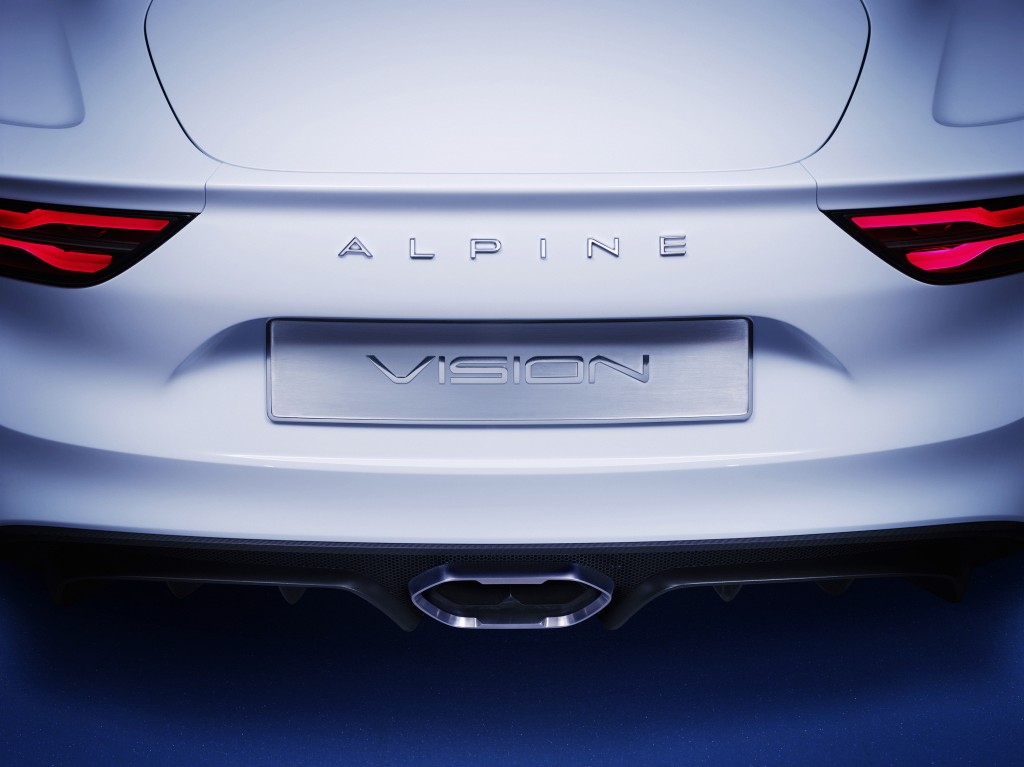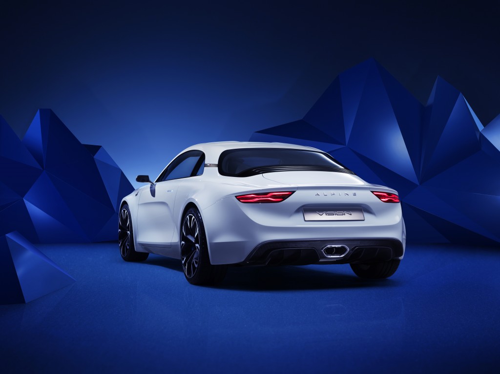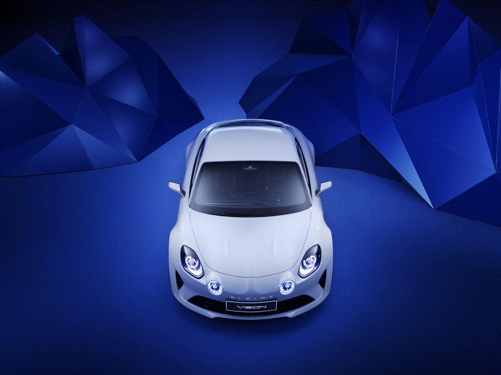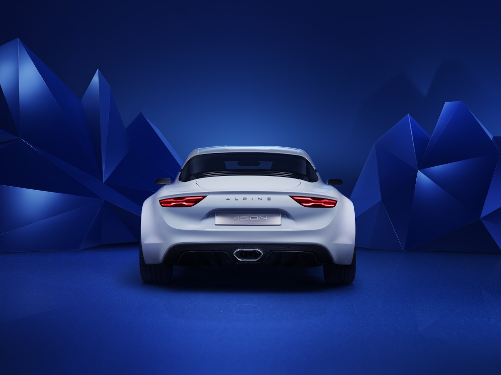 De retour dans son écrin : Alpine choisit les routes du Rallye de Monte-Carlo et des Alpes pour signer son retour. Ces montagnes, qui lui ont donné son nom, ont naturellement orienté le style du show-car Alpine Vision. Pureté, authenticité, sens de la glisse, le plaisir de posséder et conduire une Alpine se joue dans la recherche de l’essentiel. Coupé sportif deux places à moteur central arrière, l’Alpine Vision incorpore toute la génétique d’Alpine dans une interprétation contemporaine.
