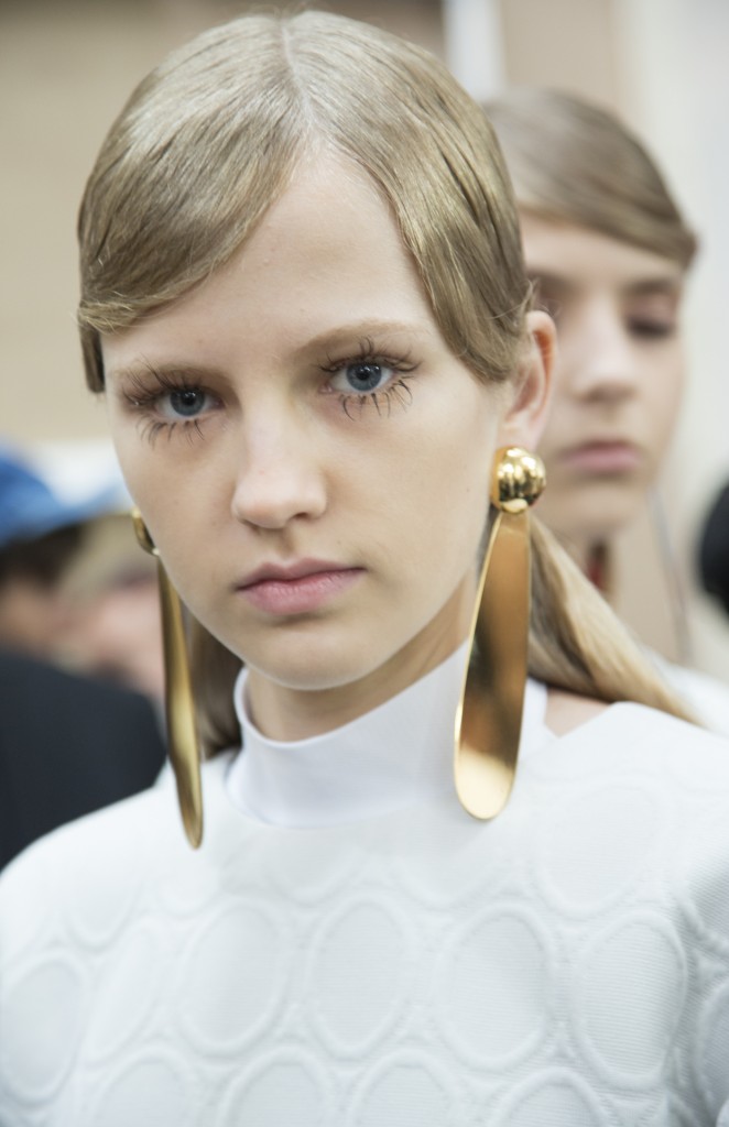 Une collection qui s’illustre aussi par des boucles d’oreilles massives en spirales complètement destructurées, qui encadrent le visage avec un mélange d’élégance et d’impertinence.