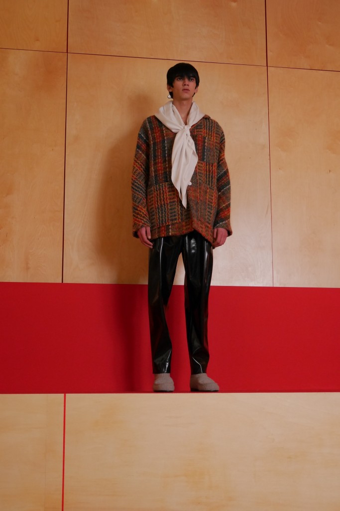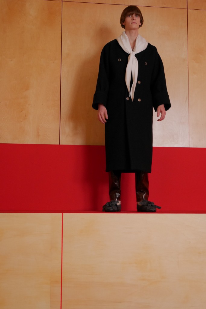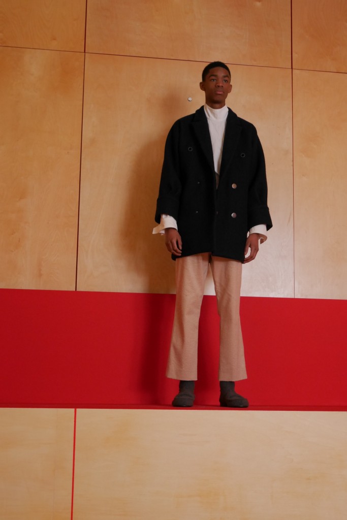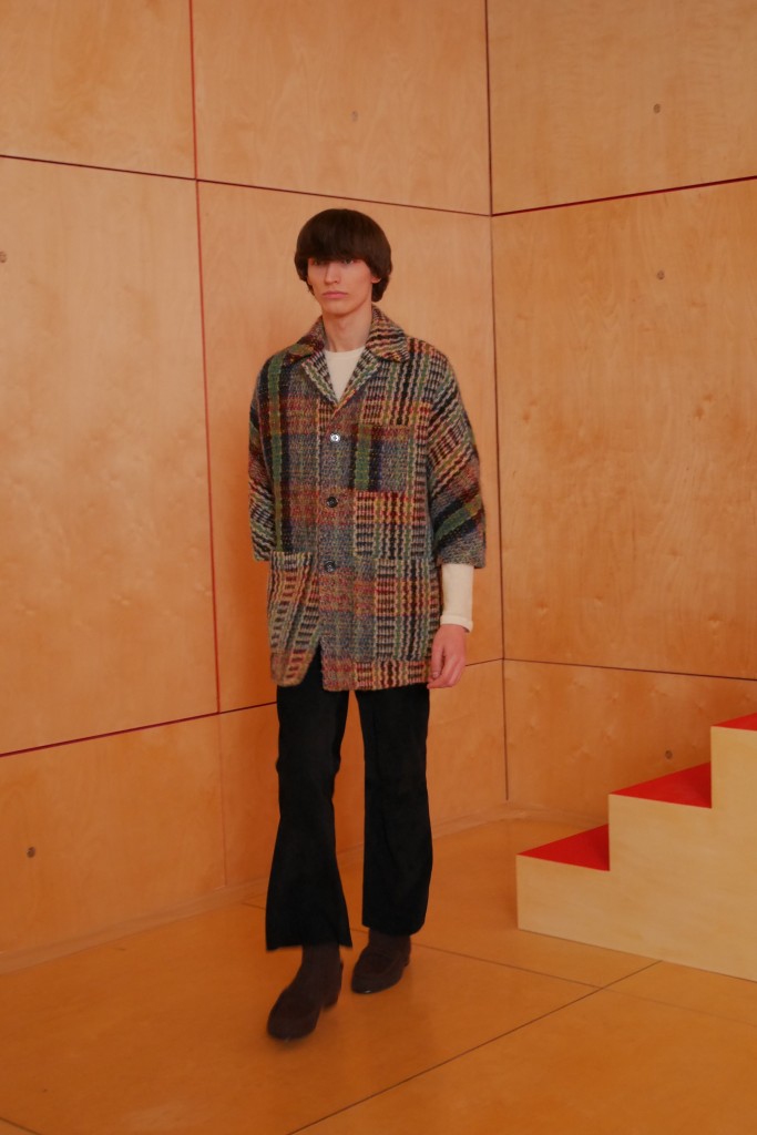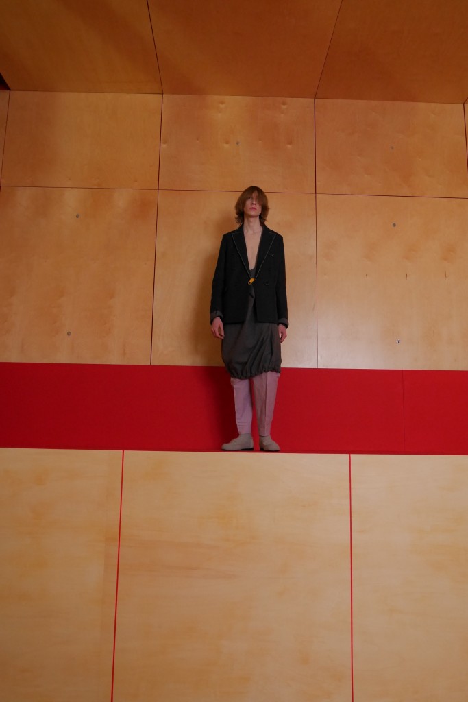 S’inspirant du folklore suédois Jonny Johansson crée un collection forte qu’il mélange avec les uniformes les habits d’un artiste dans son atelier et l’inspiration tailoring des années 40. Il en découle une collection aux silhouettes amples, et aux matières confortables.