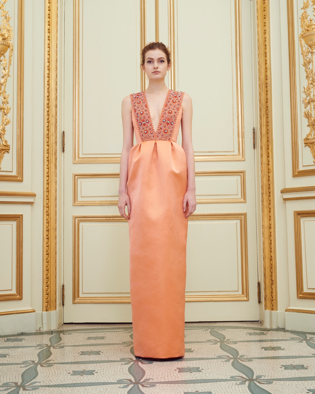 Les éléments structurés empruntés aux mascarades accentuent la silhouette féminine si chère à Rami Al Ali. Les Jupes tulipes sont conçues tel un architecte et font références aux années 1960, alors que les techniques ancestrales sont utilisées pour moderniser la broderie classique. Les robes longues sont montées en cascade de brocart et satins aux finitions gazar et lamé or.