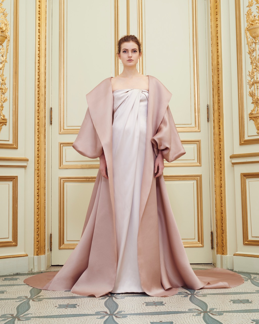 En tirant son inspiration de l’art décoratif mauresque, Rami Al Ali a associé les références historiques avec les silhouettes inspirées des mascarades, pour créer une collection juxtaposant ces deux périodes distinctes. En résulte des créations volumineuses en couches de satin et brocart qui, assemblés ensemble, donnent naissance à des tulles surdimensionnés ajoutant drame et mystère à la collection.