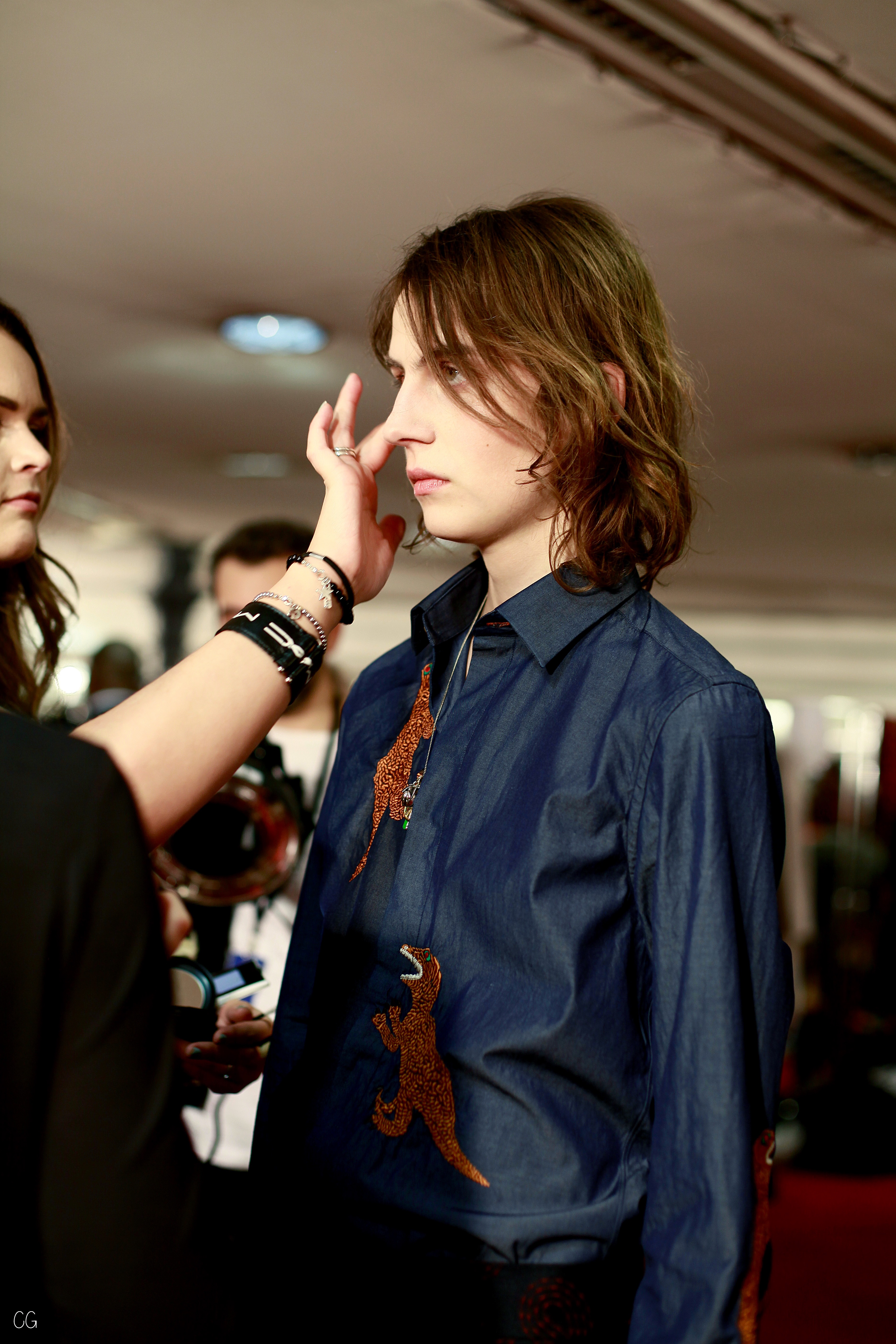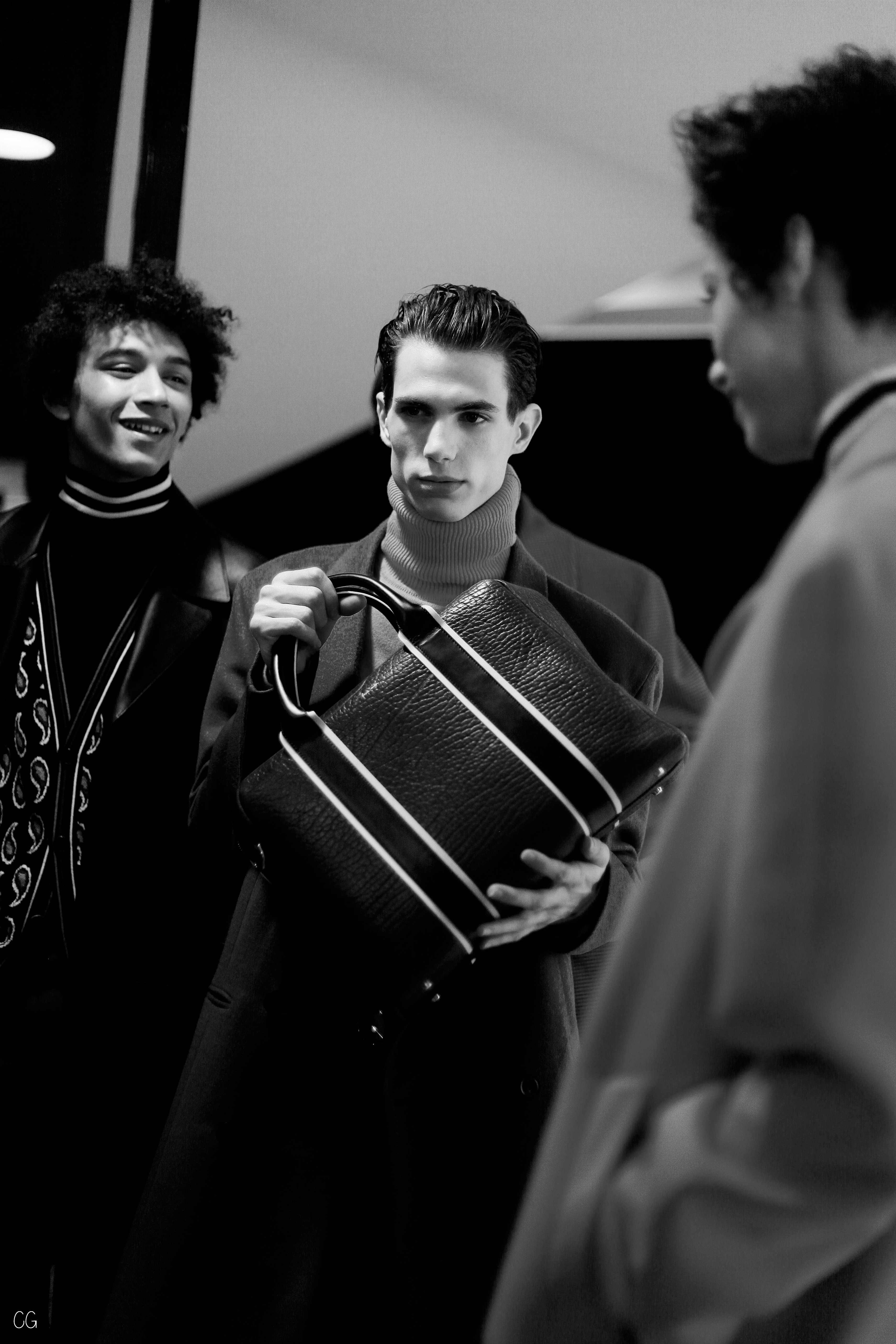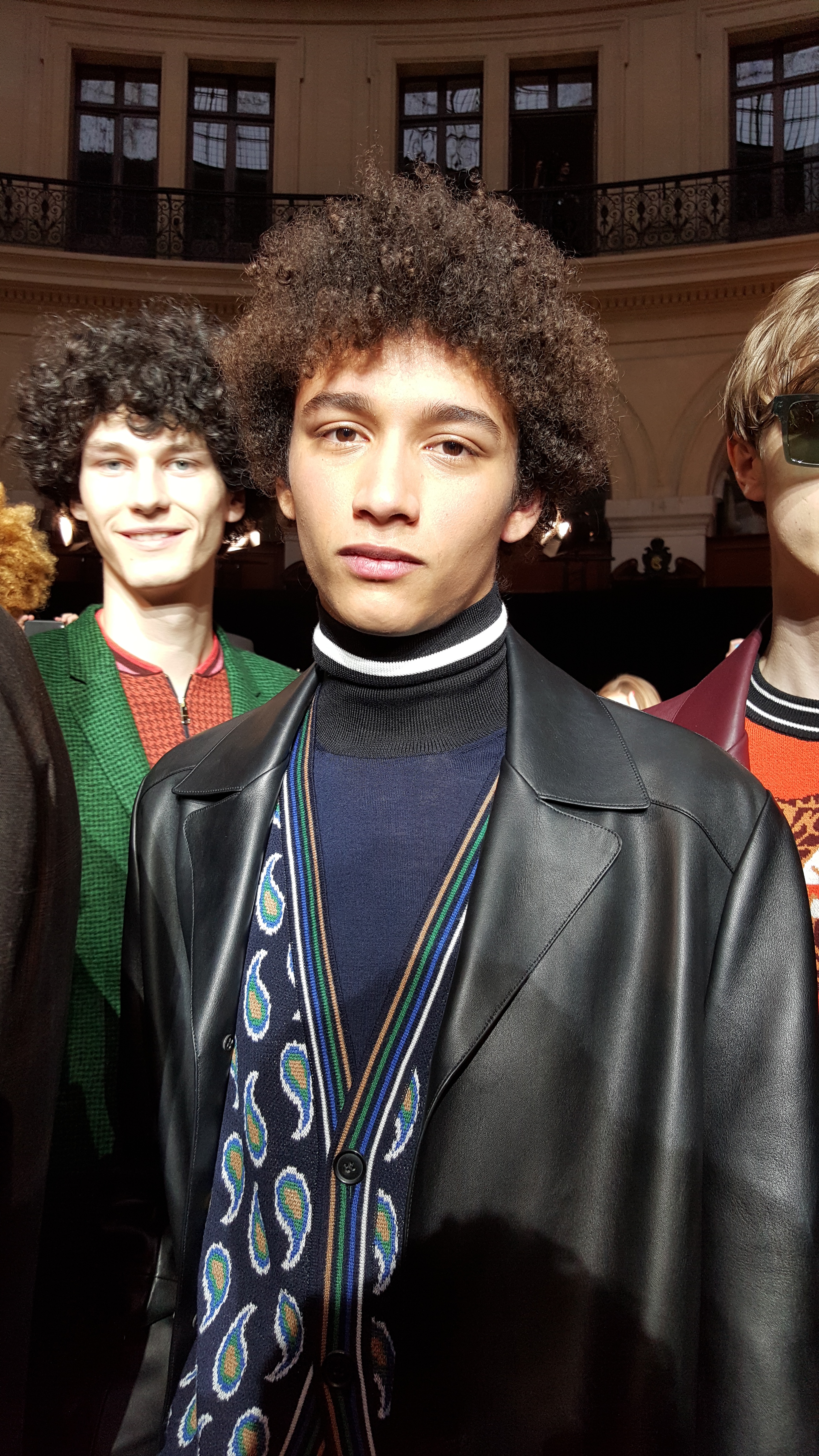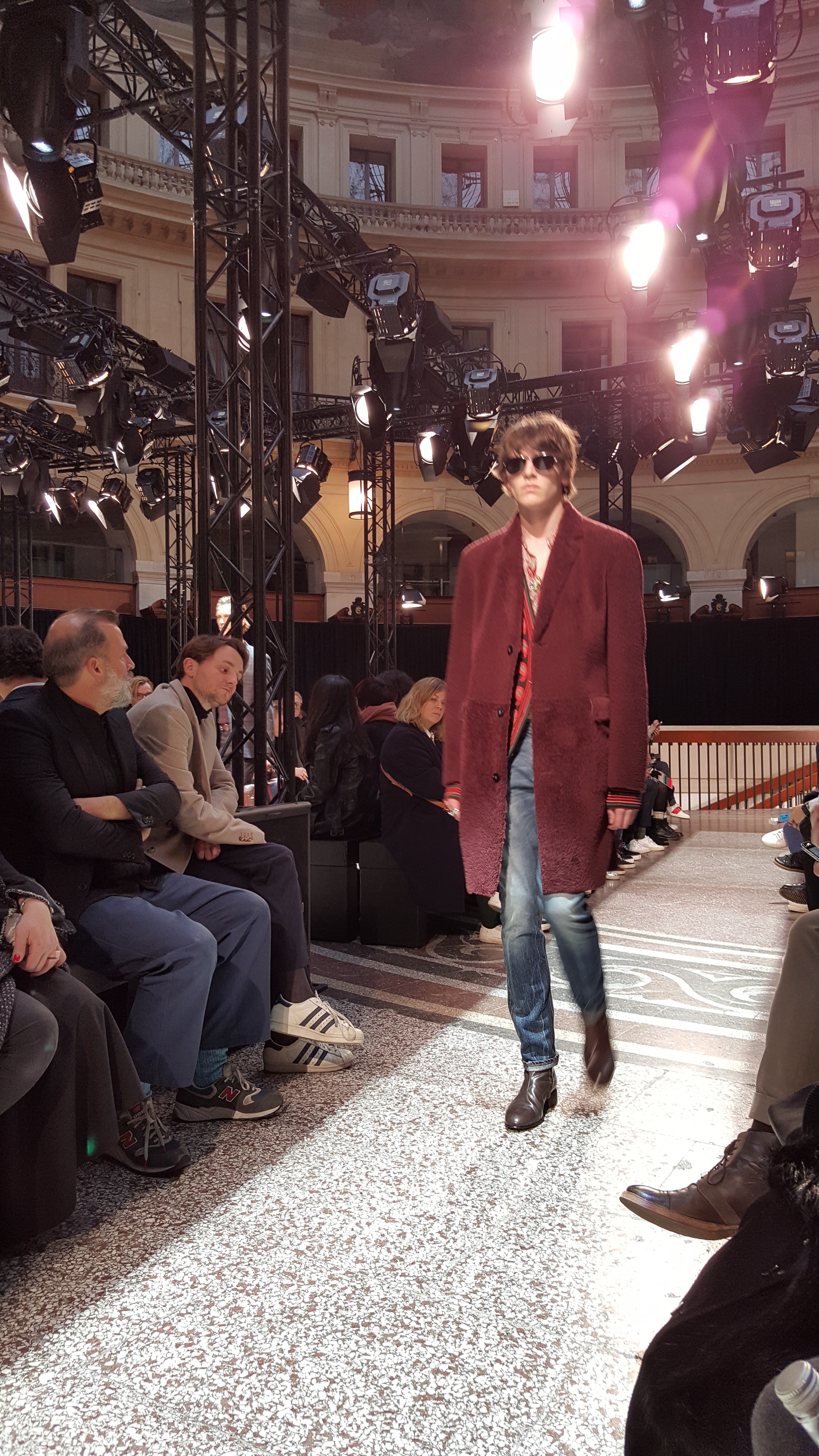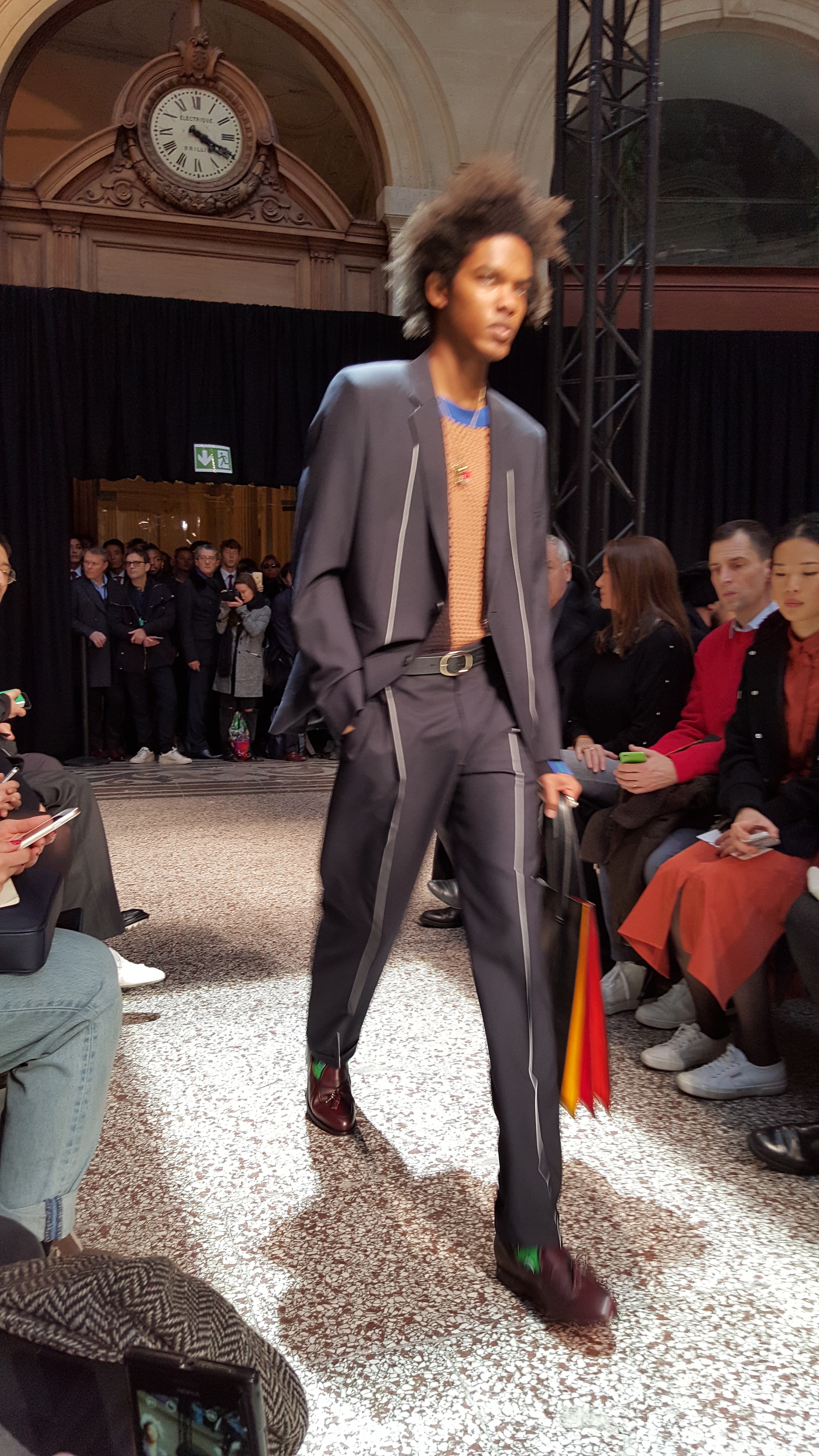 On retrouve donc des lignes. On en retrouve sur des mailles cashmeres, sur des manteaux tailor. On retrouve des broderies dinosaures, des imprimés digitaux péchés dans les archives de la maison, des bombers aux imprimés photos.