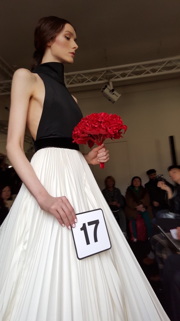 La silhouette est à la fois gracile, fluide, presque fragile telle une étoile du Palais Garnier, en crêpe fin blanc, noir ou peau, et orné de nuages d’organza froissé ou de plumes blanches qui accentuent chacun des pas …