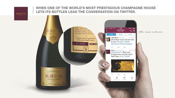 Une étude approfondie des usages du Krug iD dans l’univers digital a démontré que bien souvent, les consommateurs dégustant une bouteille de Krug partagent leur expérience sur les réseaux sociaux, et plus particulièrement sur Twitter.