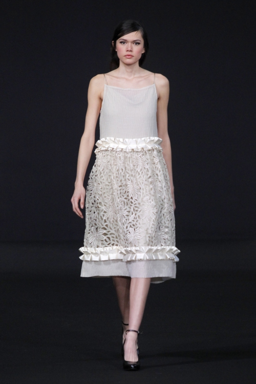 La maison Diogo Miranda a de nouveau fait parler d’elle pendant la fashion week parisienne, en présentant une collection à la féminité délicatement assumée. Le vestiaire comportait des manches gonflées comme des ballons et des formes géométriques modernes, un clin d’oeil à l’architecte autrichien Joseff Hoffman.